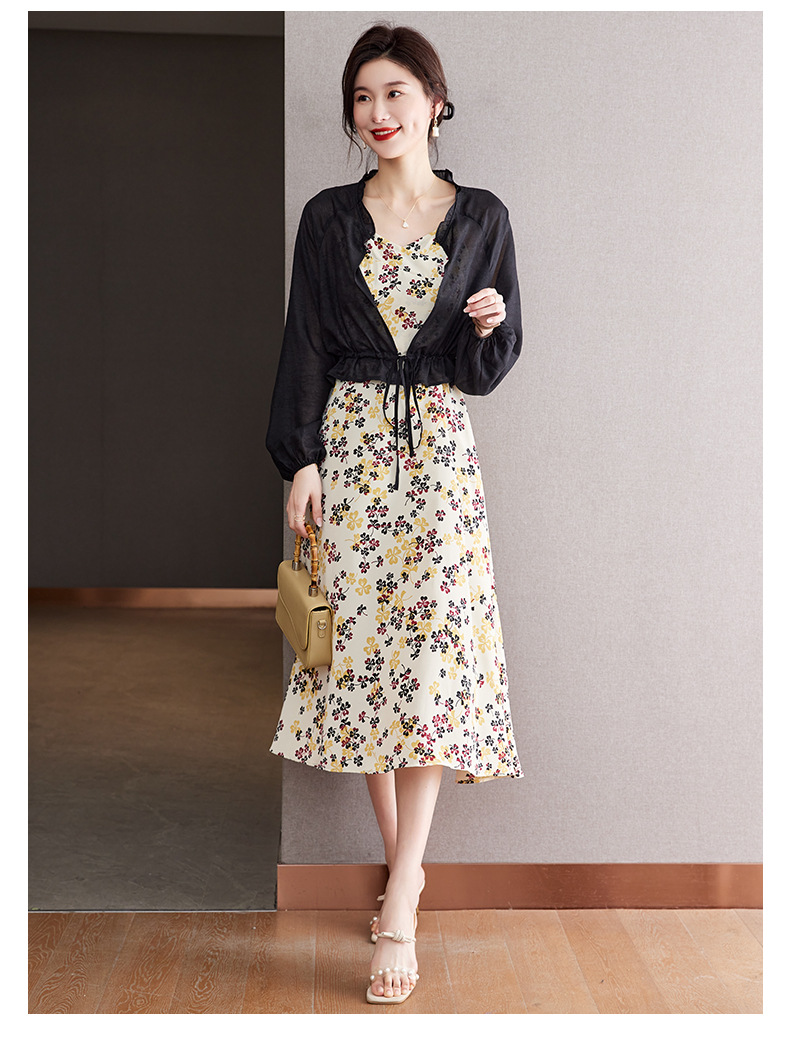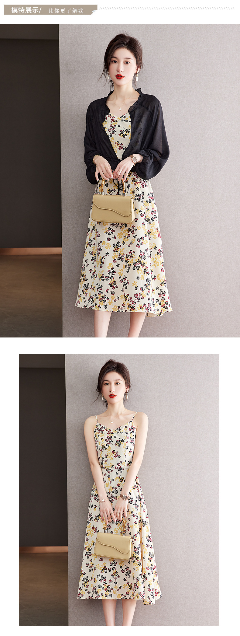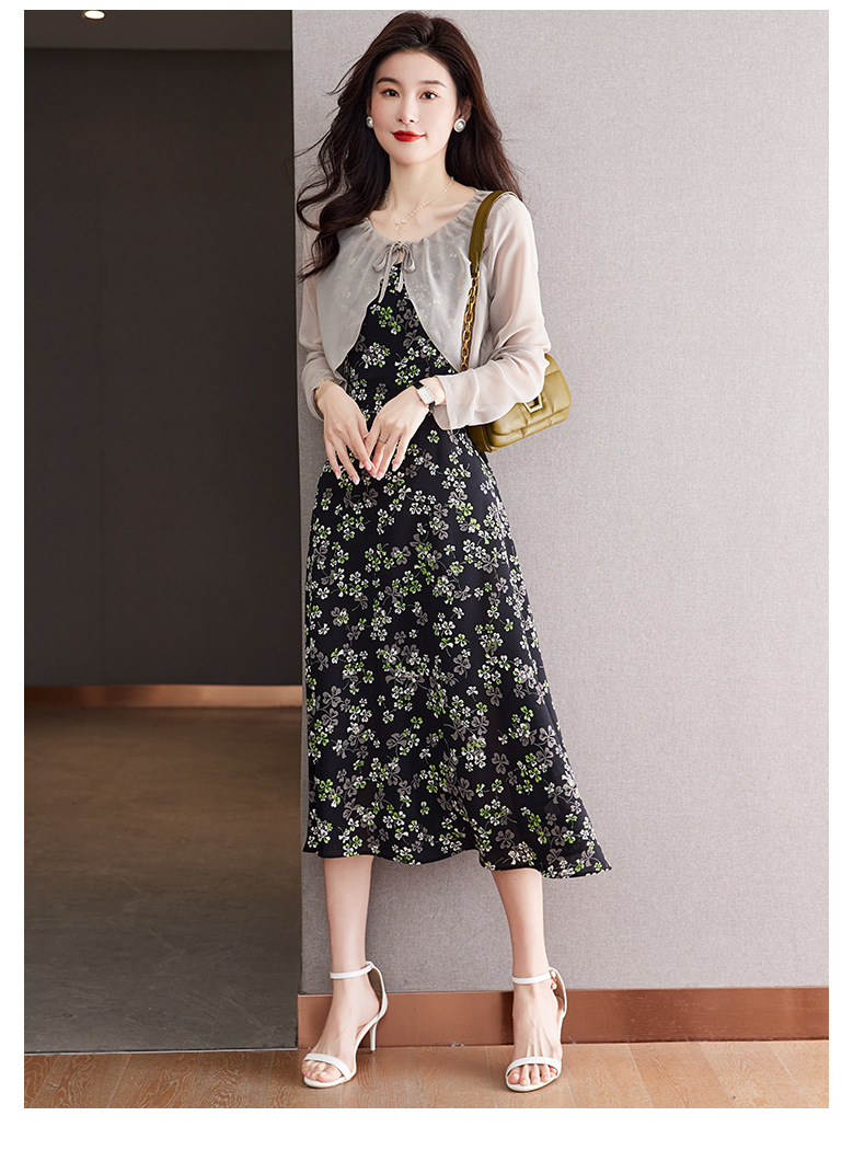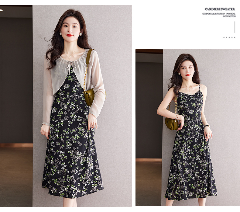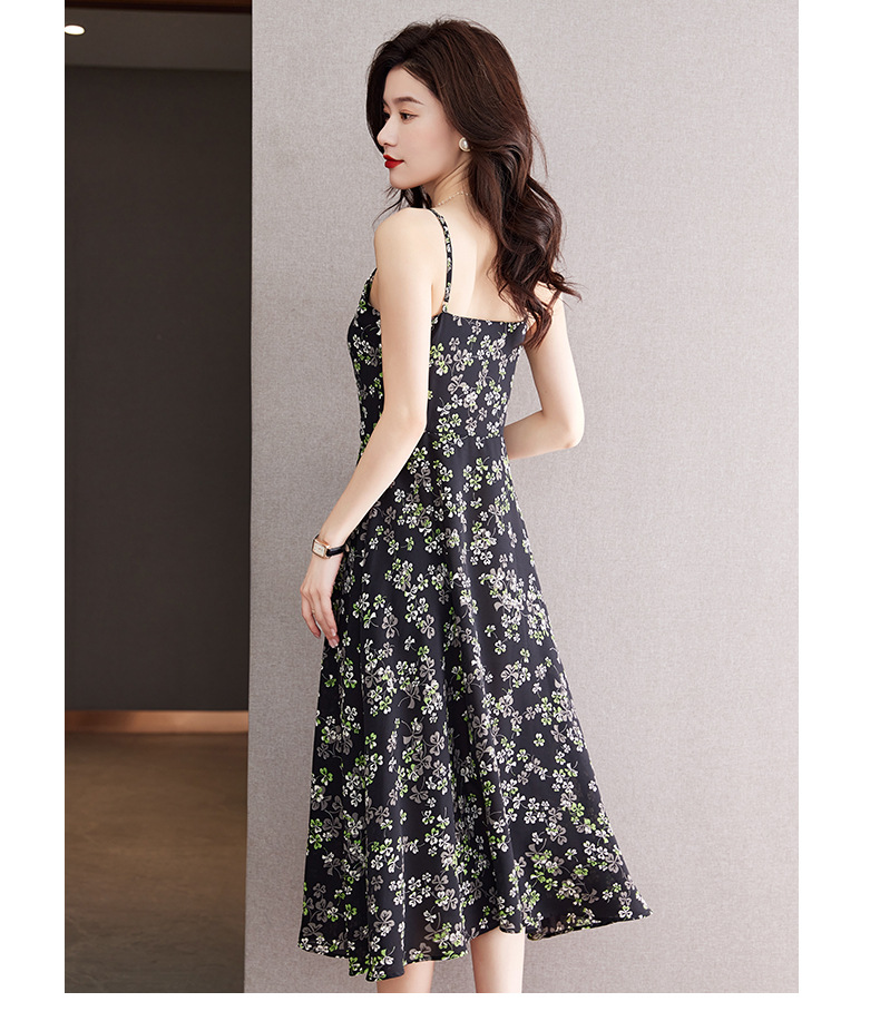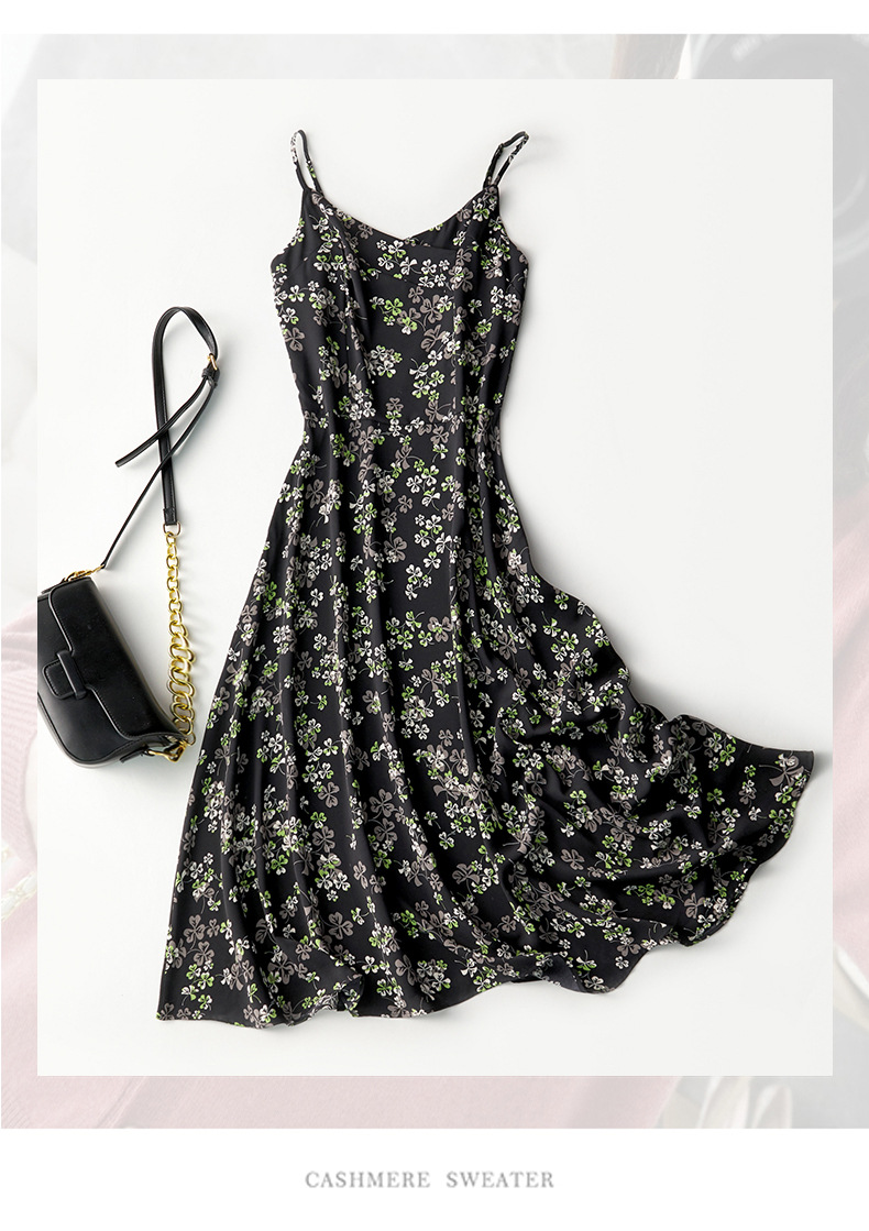 CCJ3400春夏碎花吊带连衣裙小个子气质宽松遮肉雪纺打底内搭长裙2024新款