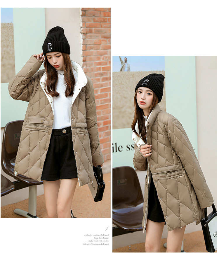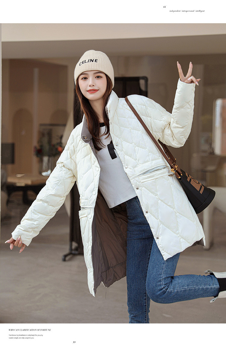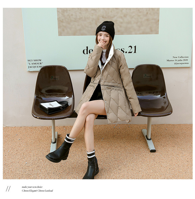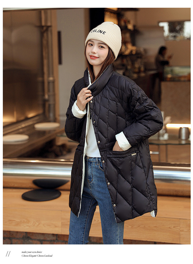 FF-199新款大码女装200斤胖mm轻薄中长款立领修身羽绒服外套199