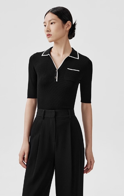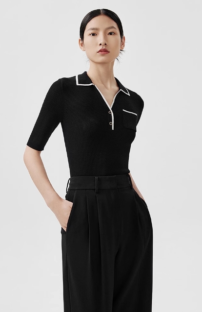 M3L2朗姿撞色羊毛polo衫简约气质针织衫LCEK00KPR493B11