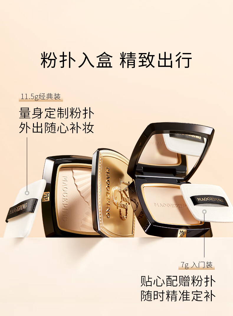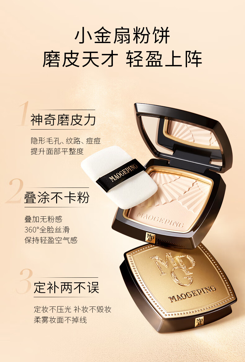 毛戈平光感柔纱凝颜粉饼小金扇修容定妆801色号 7g/11.5g容量