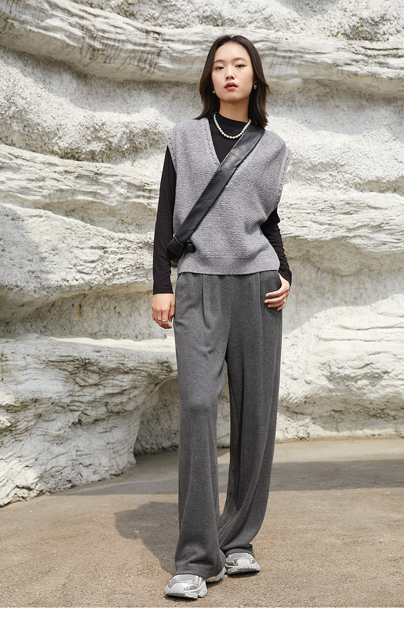 气质灰色无袖针织背心 秋冬叠穿神器时尚感拉满