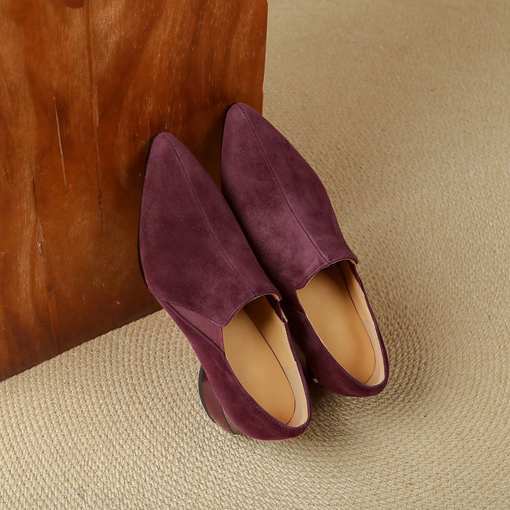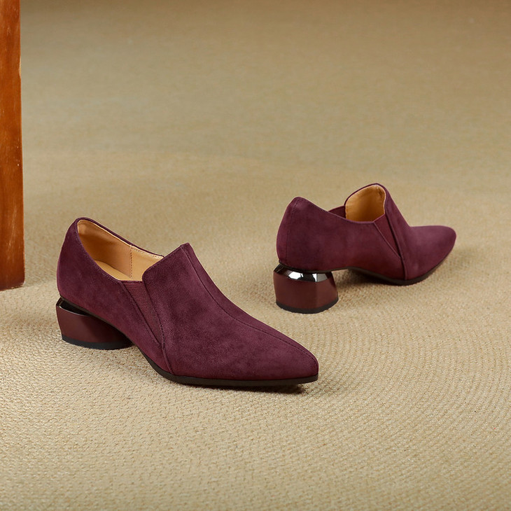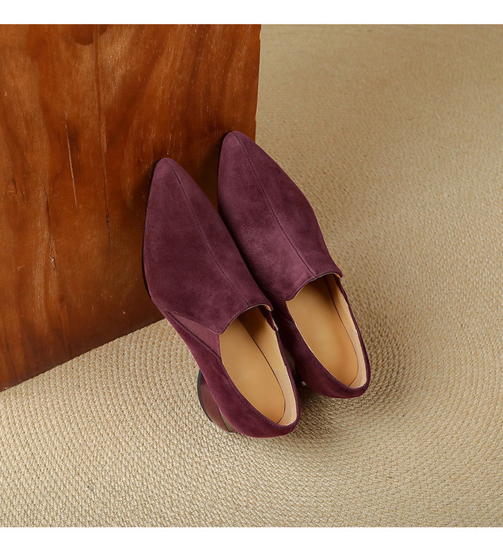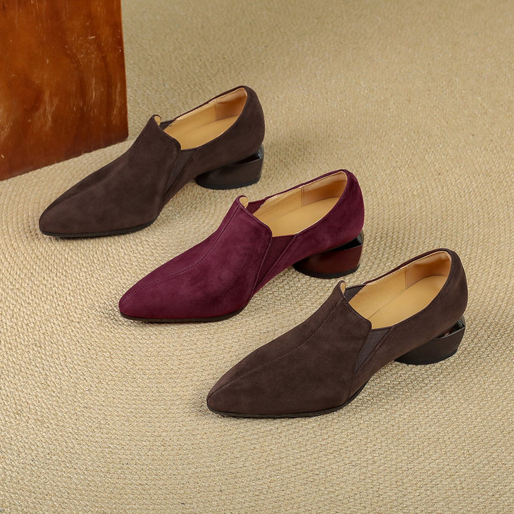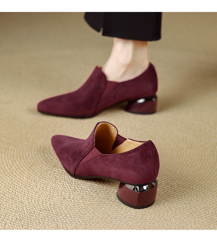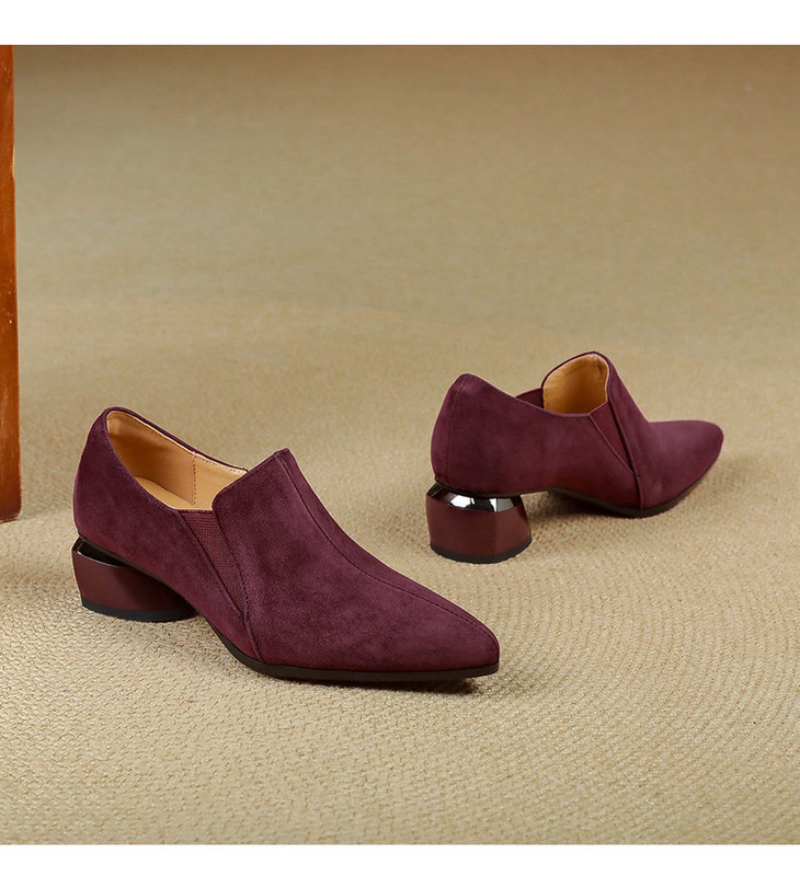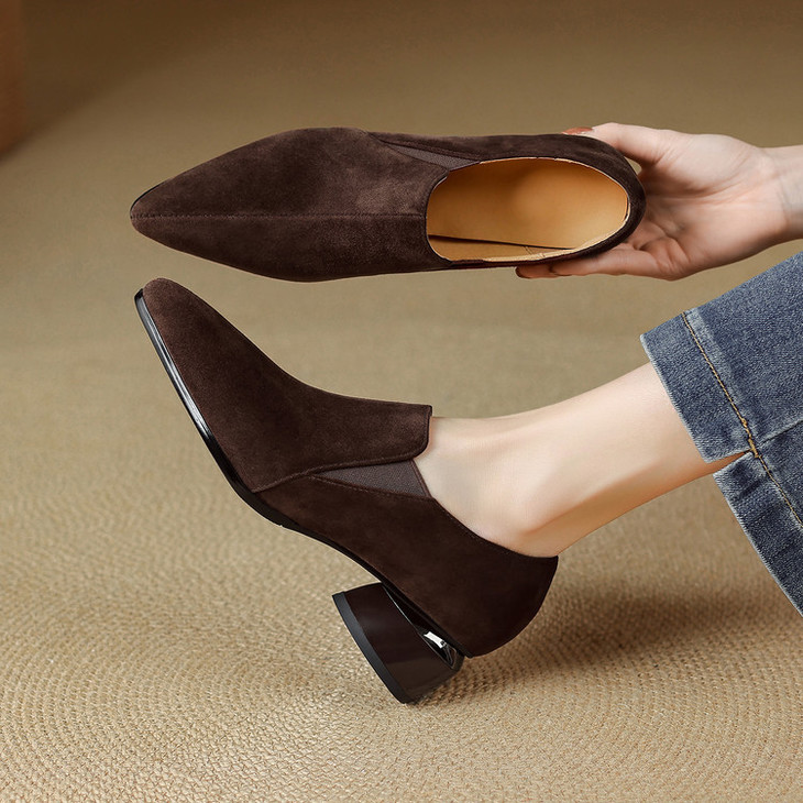 【预售5天】深口单鞋女磨砂皮中跟粗跟尖头软皮高跟鞋秋季加绒真皮裸靴工作鞋KMQ&3236