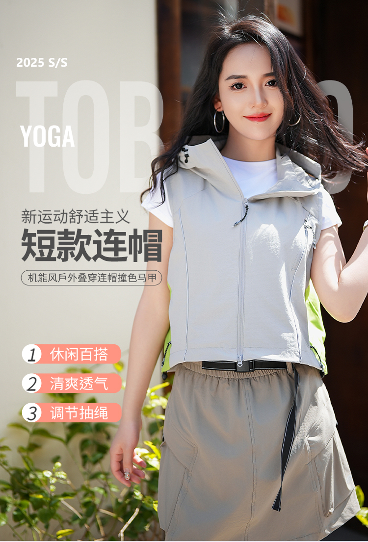 一恋•普拉提 2025春季新款机能风户外叠穿马甲户外连帽外套EML1181