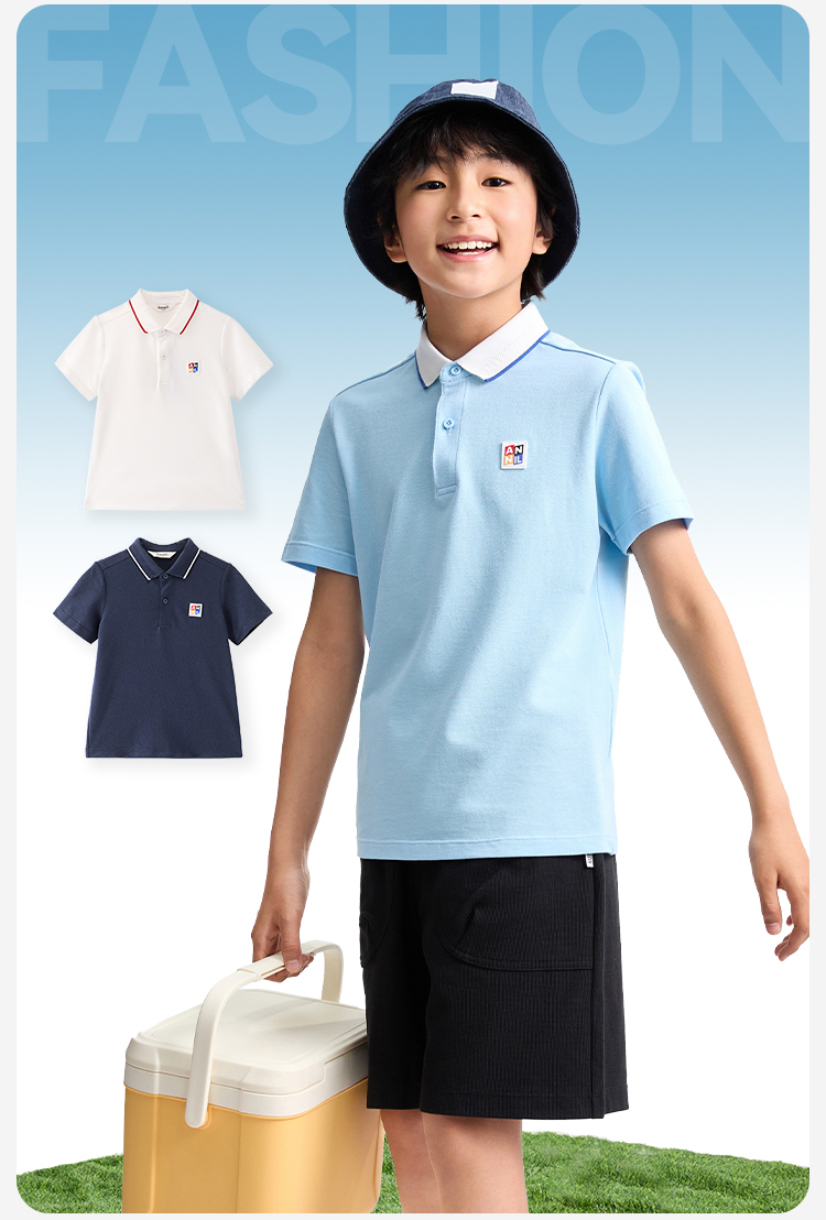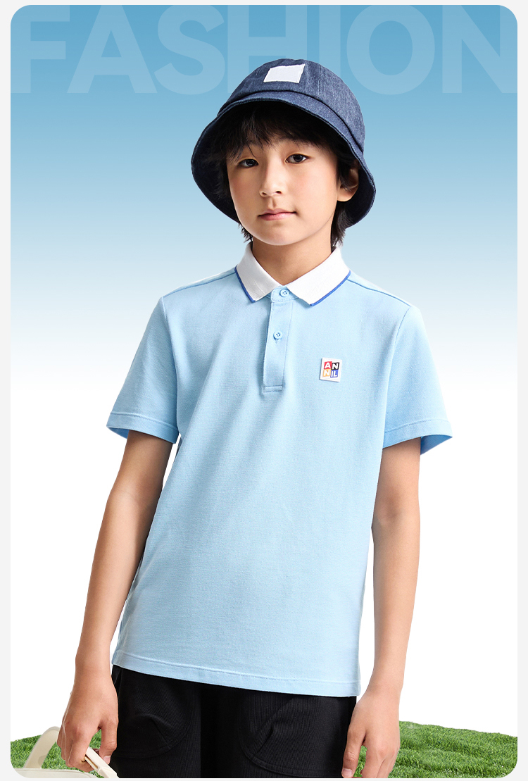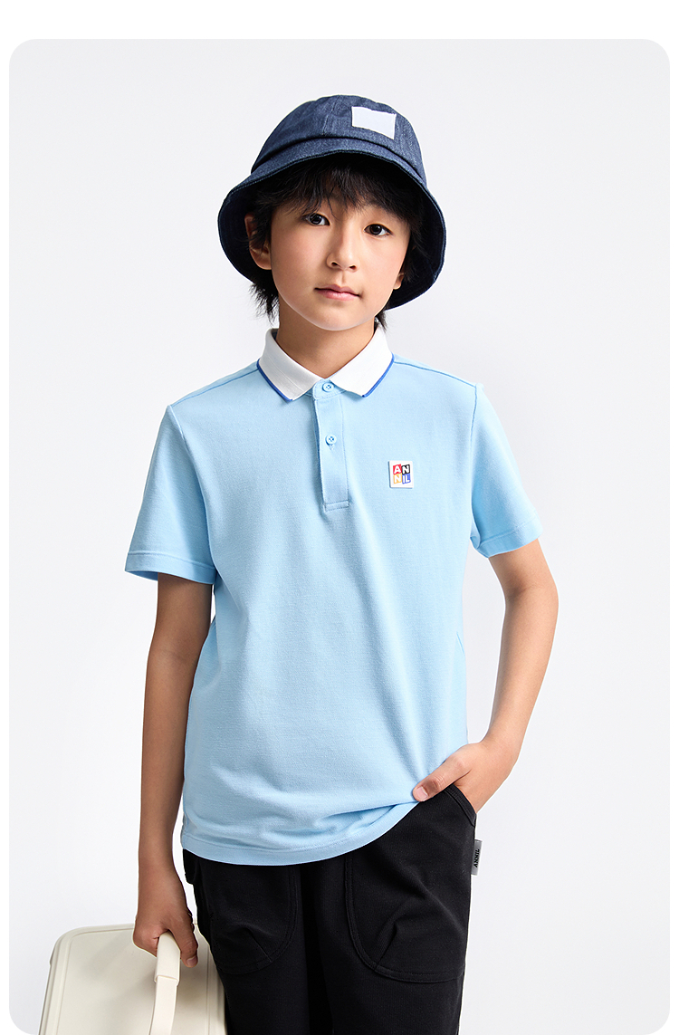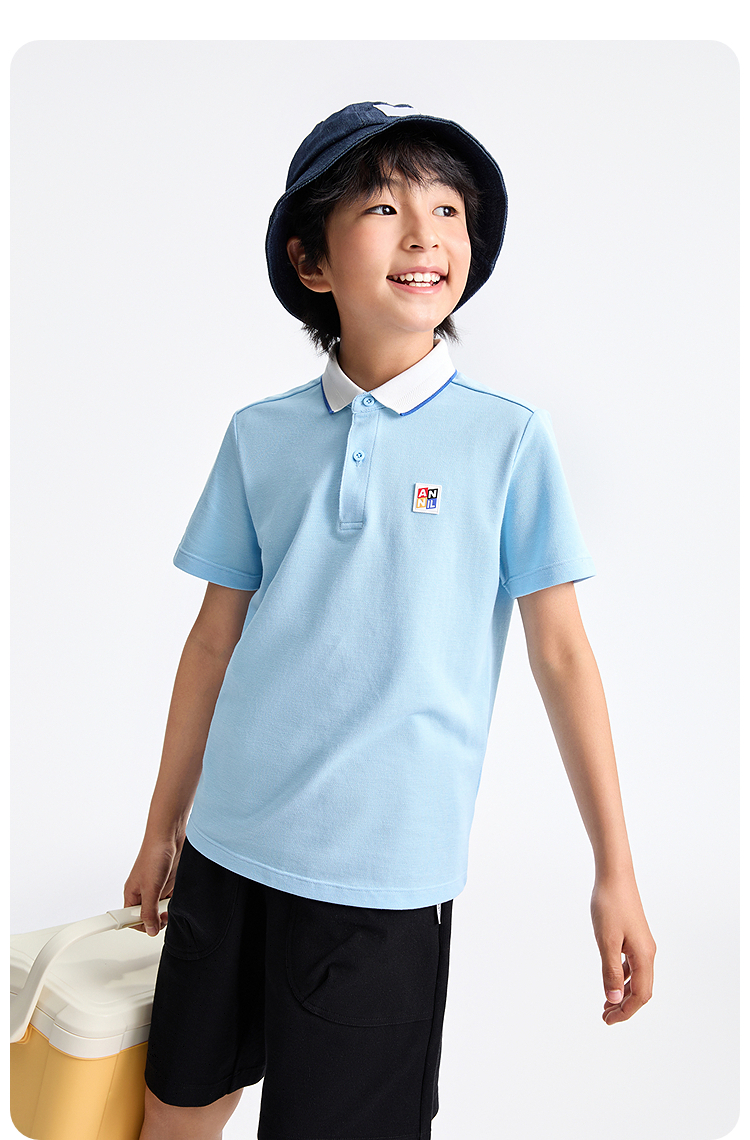 男童翻领短袖针织衫夏季新款安奈儿童装EB521201