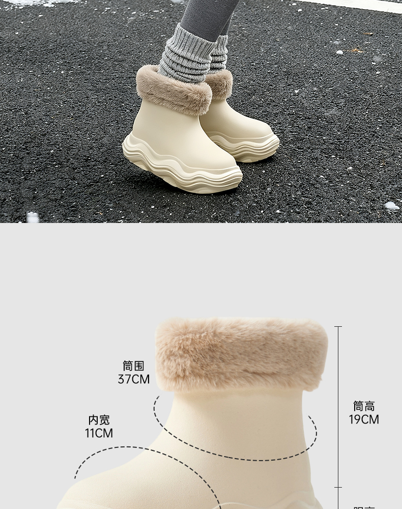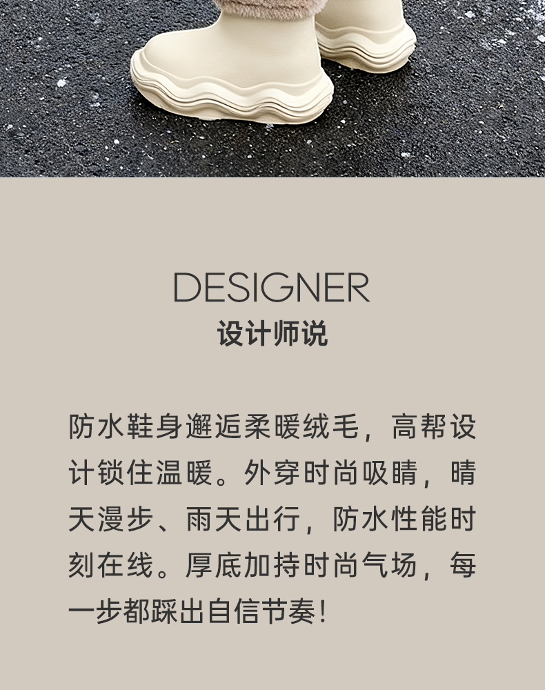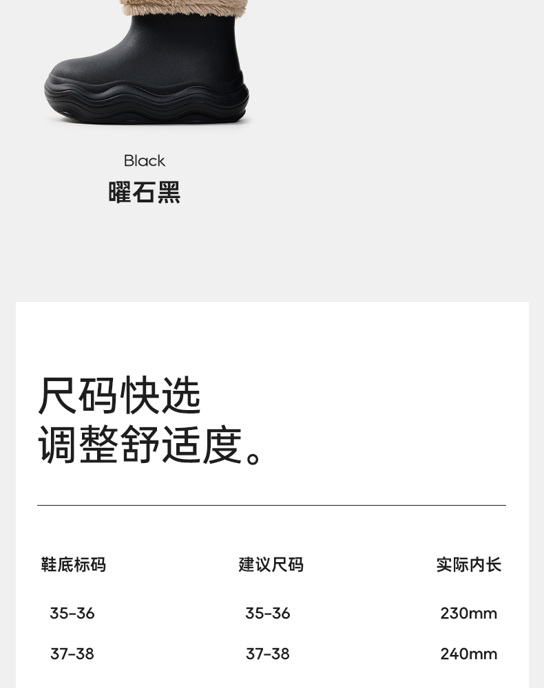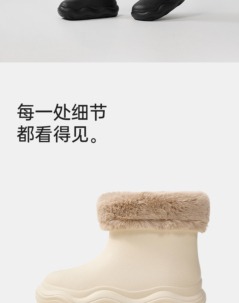 优调 雪顶奶泡加绒棉靴 UDT1462 毛绒内里锁温 EVA防水鞋身 轻松应对雨雪天;鞋底加深止滑纹理 安心畅行
