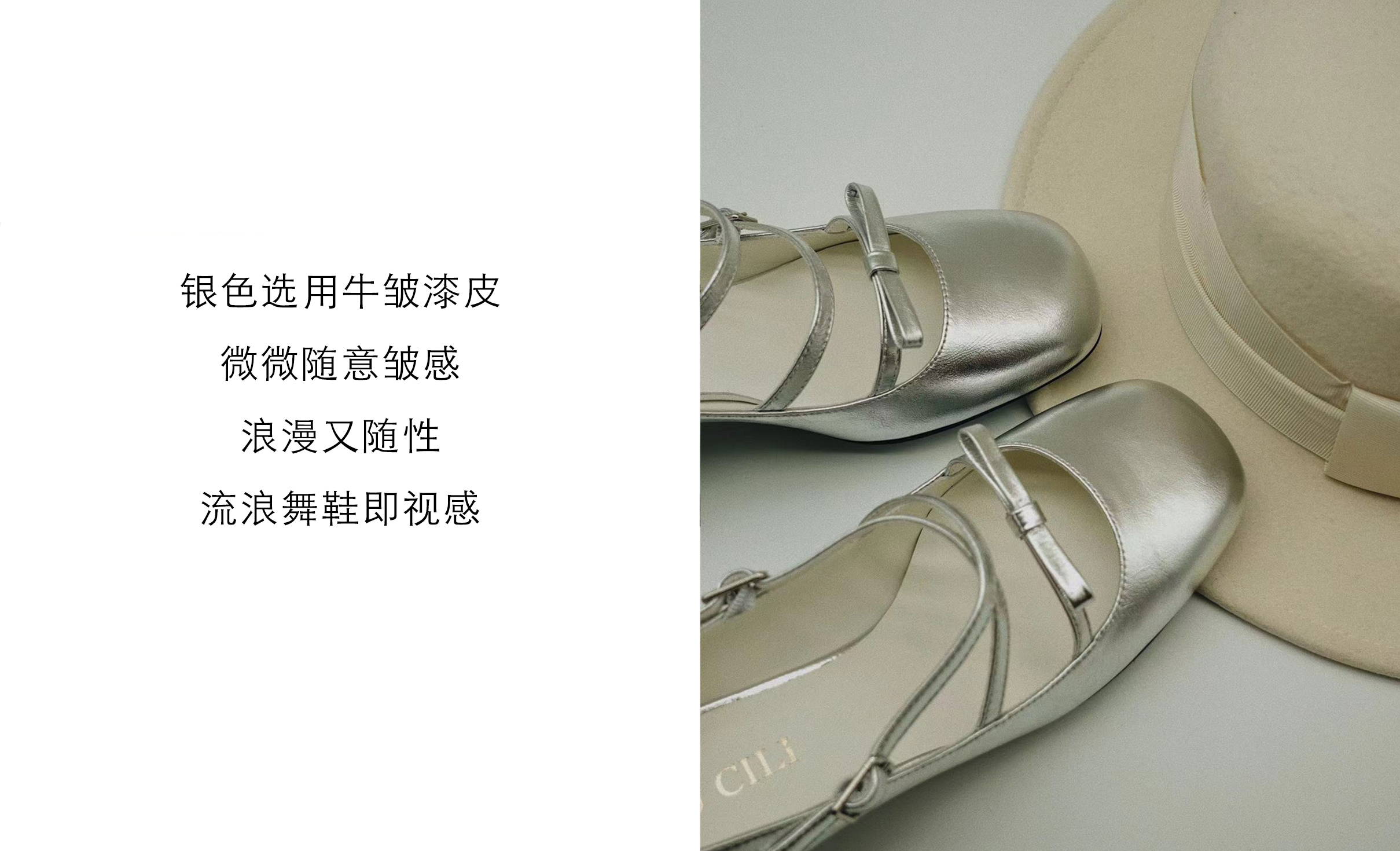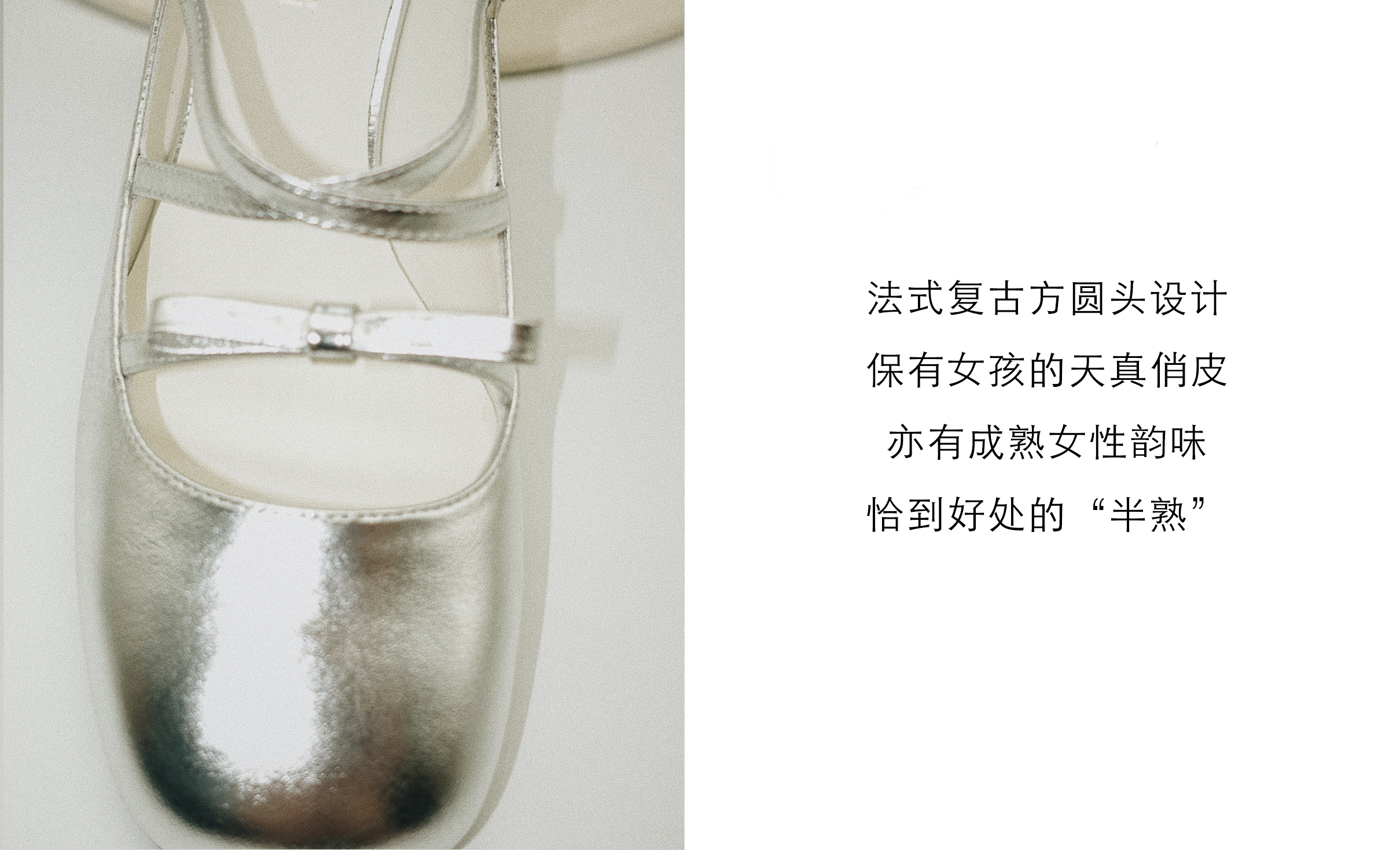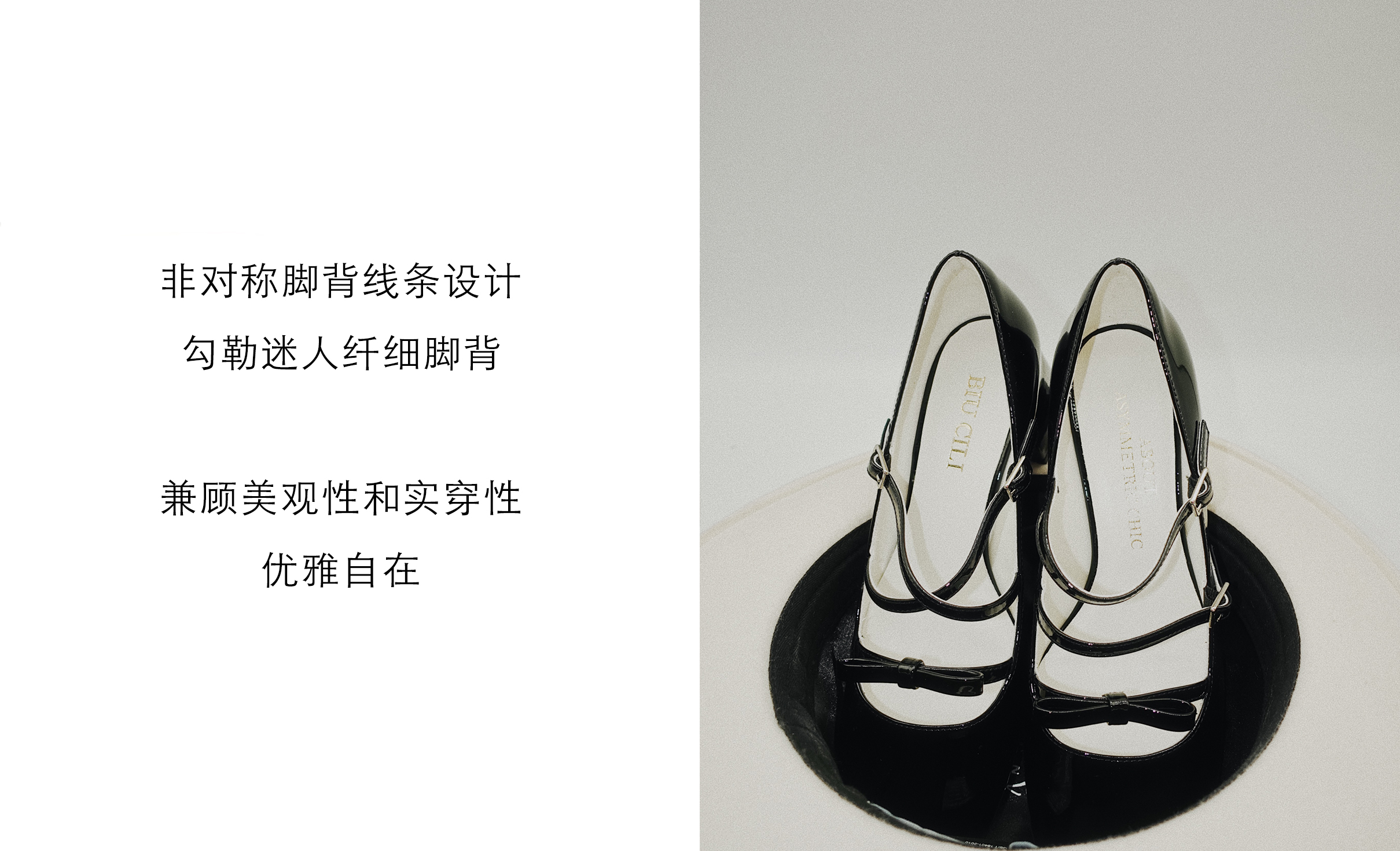 BIUCILI 「kilig」非对称原创 银色蝴蝶结粗跟玛丽珍芭比单鞋女