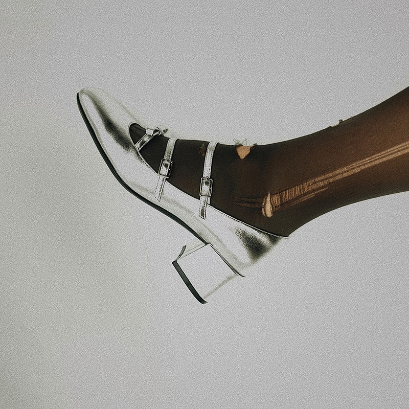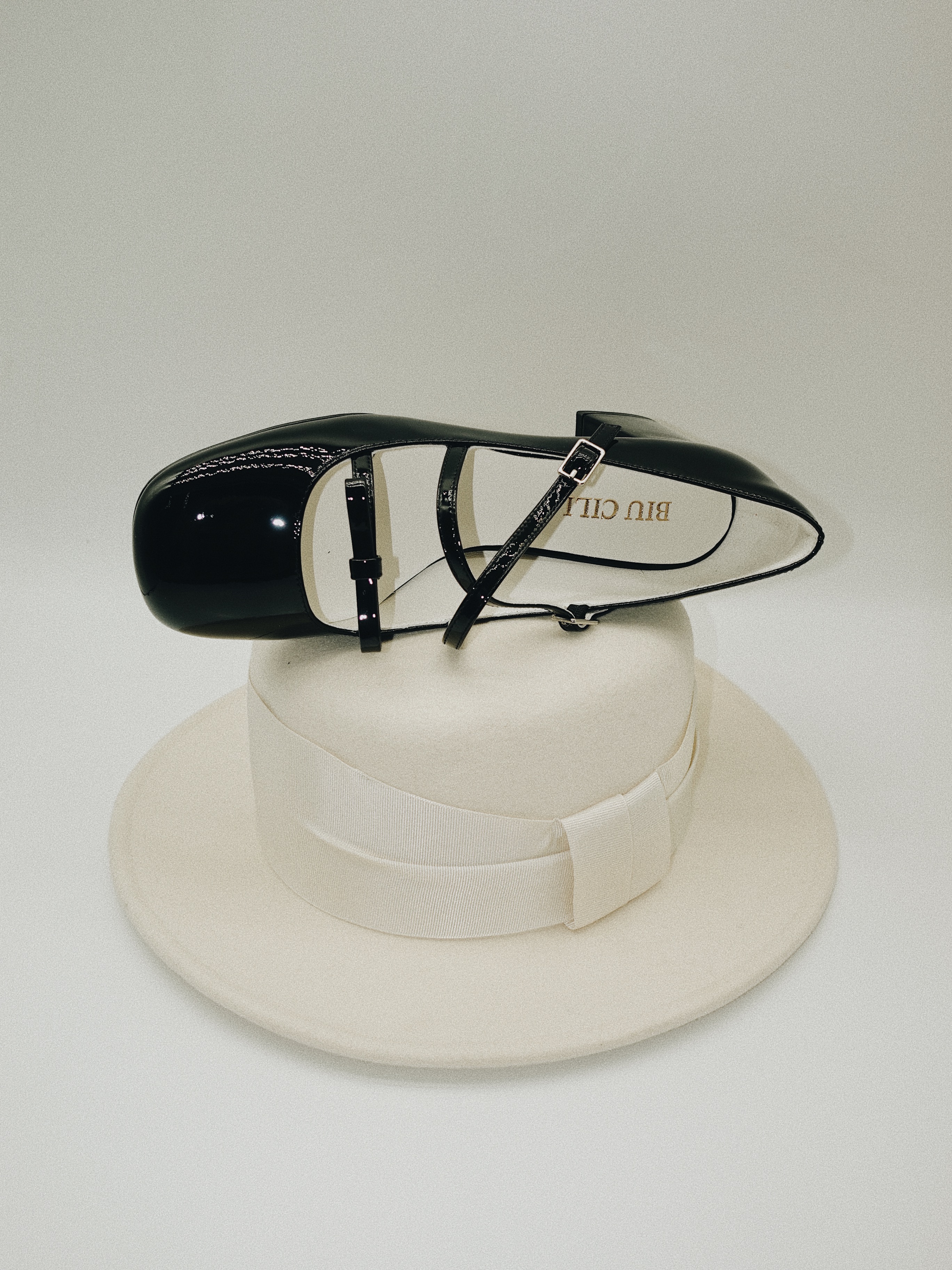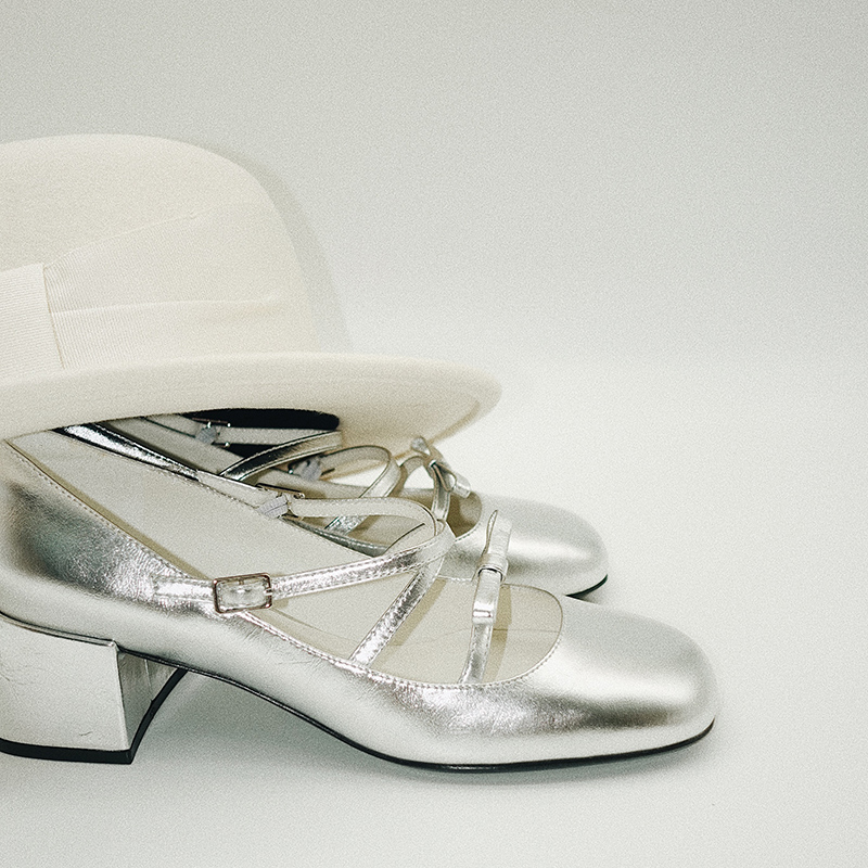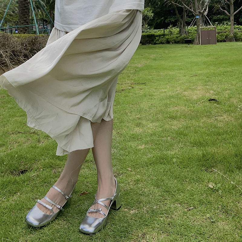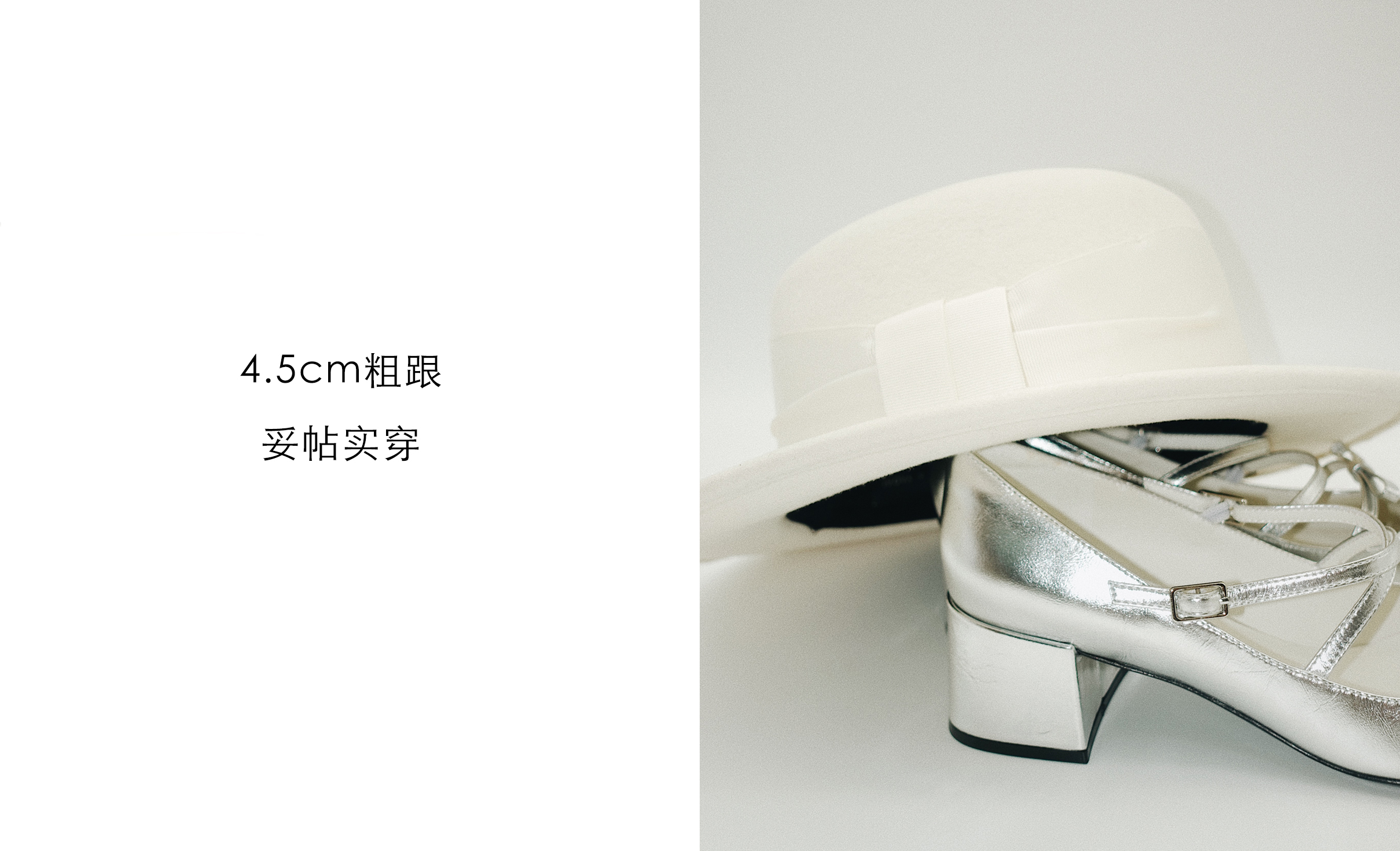 BIUCILI 「kilig」非对称原创 银色蝴蝶结粗跟玛丽珍芭比单鞋女