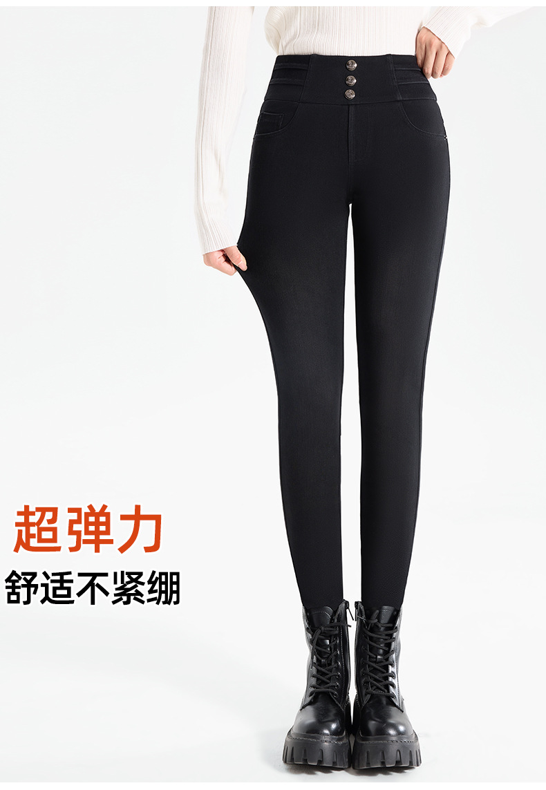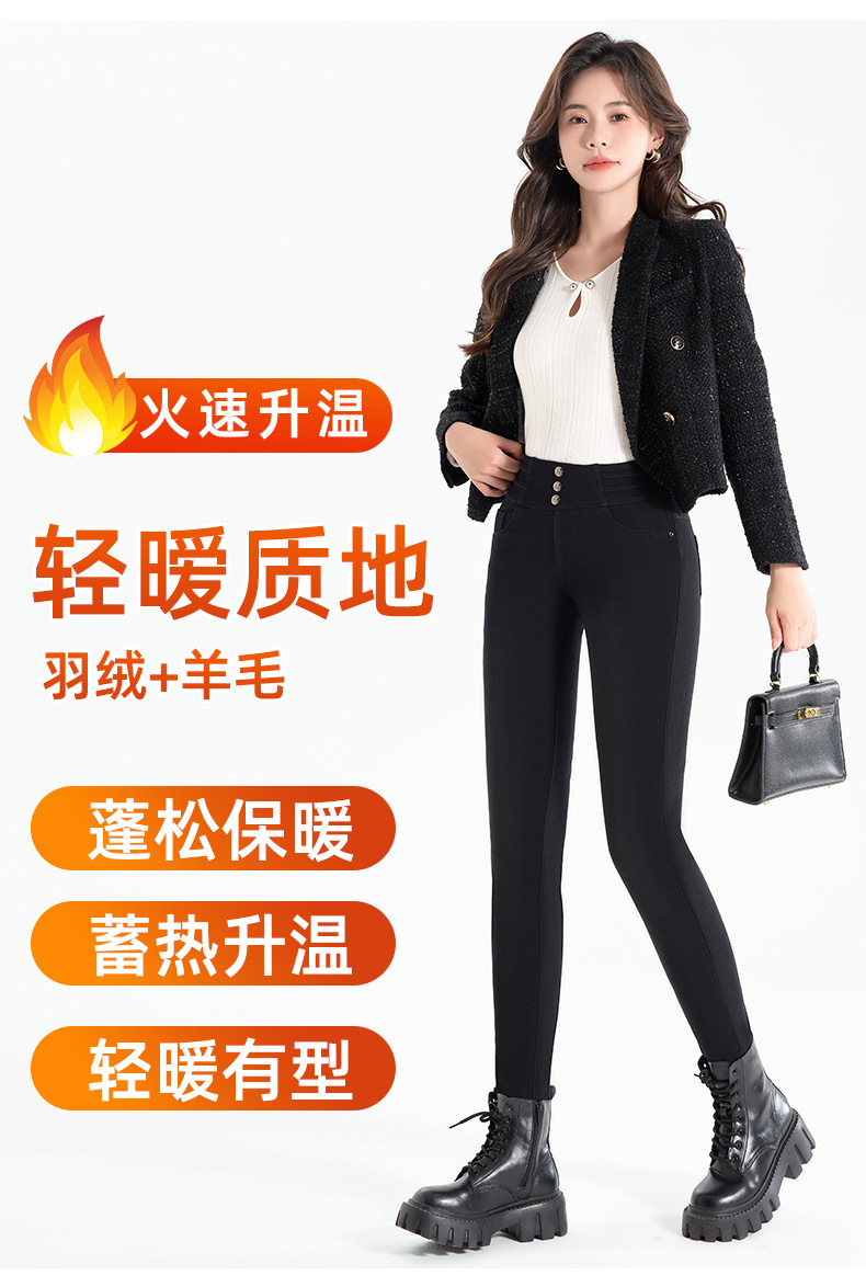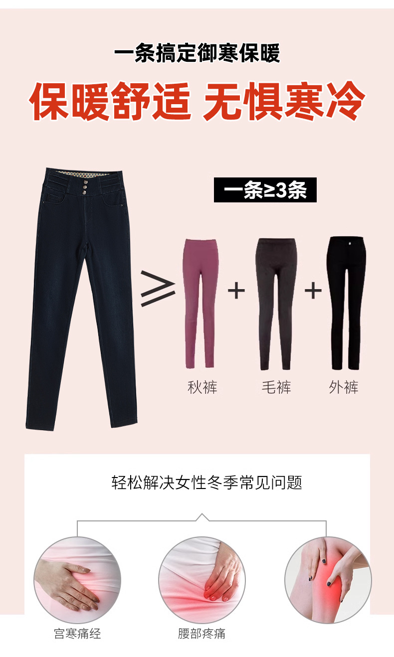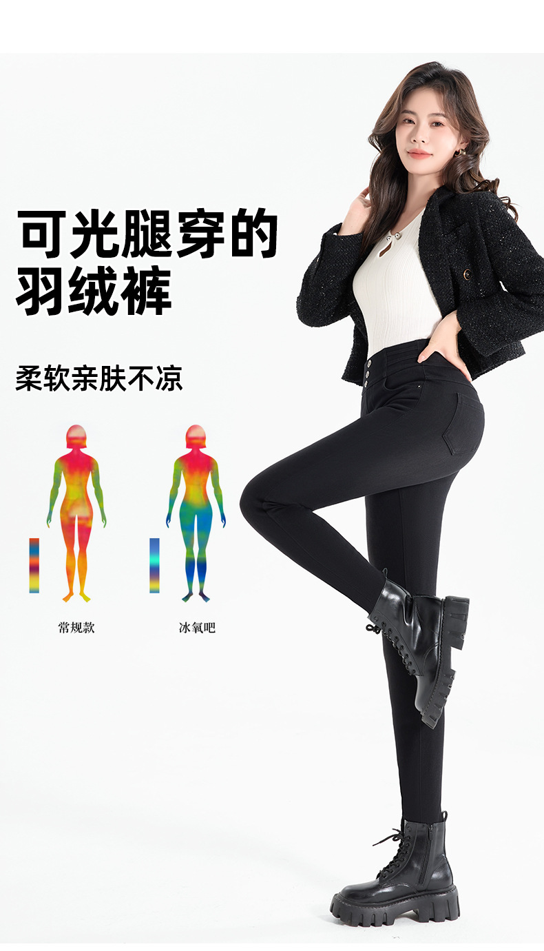 百媚生 羽绒牛仔裤女冬季保暖高腰修身小脚裤24818