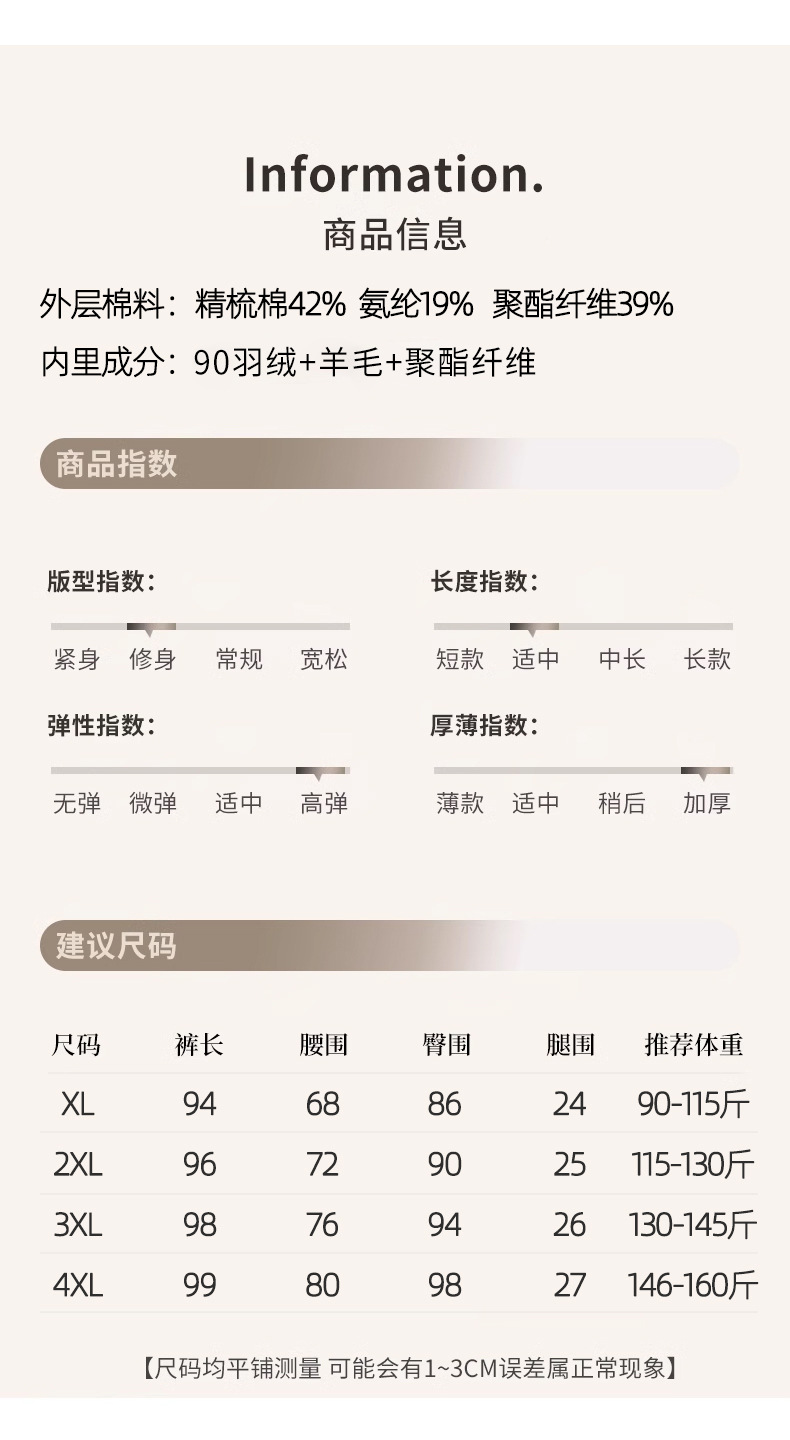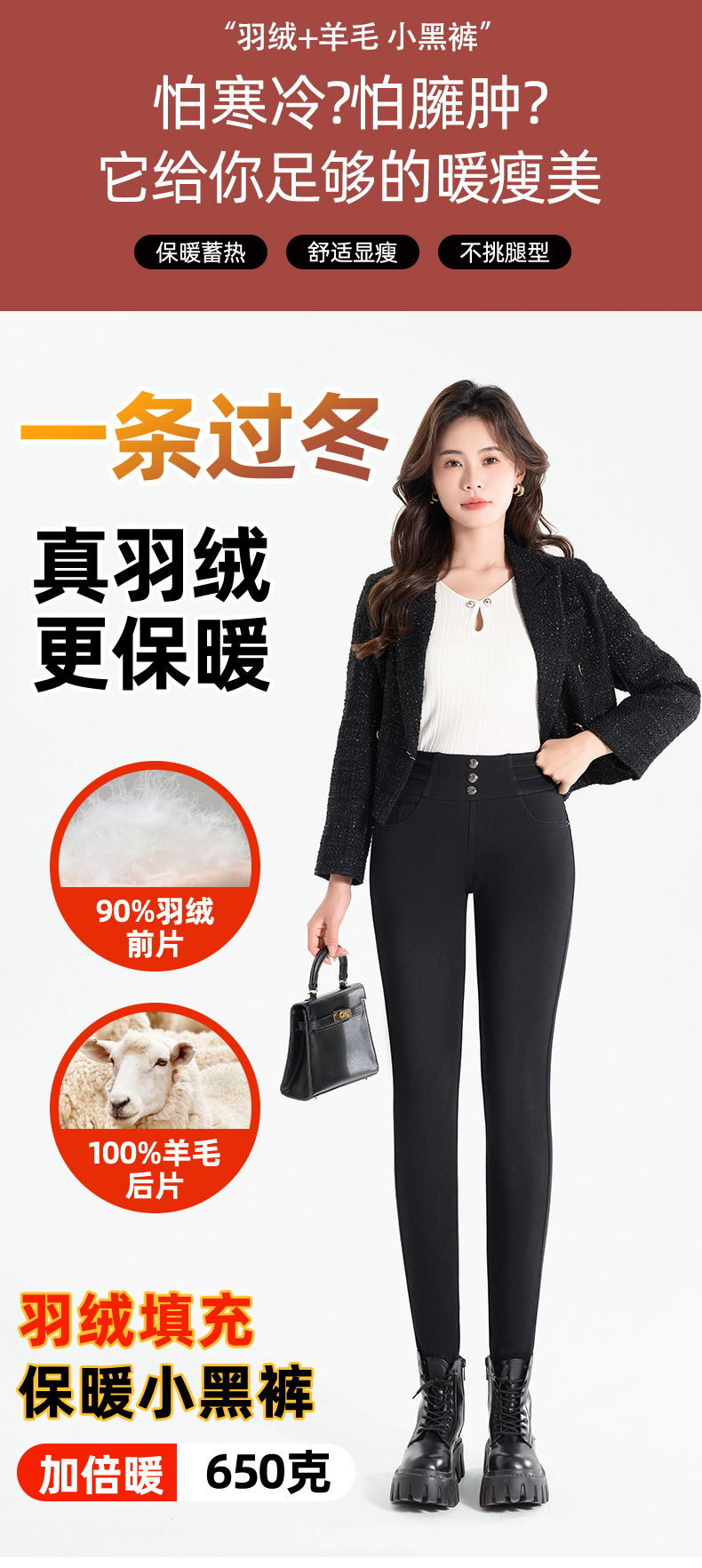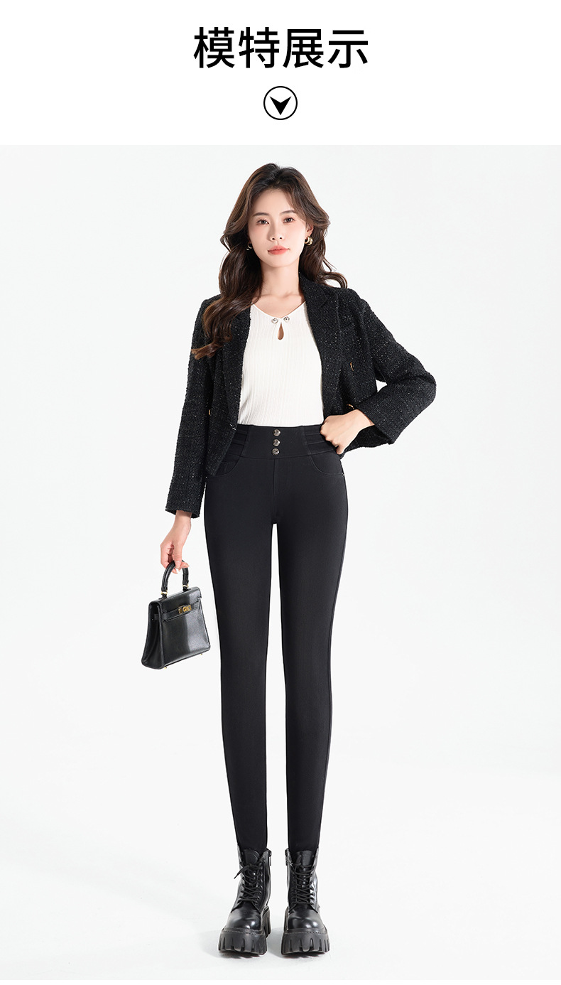 百媚生 羽绒牛仔裤女冬季保暖高腰修身小脚裤24818