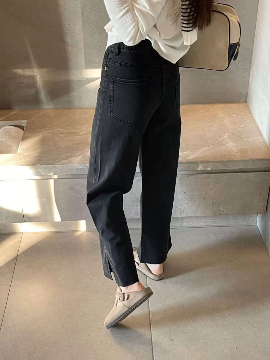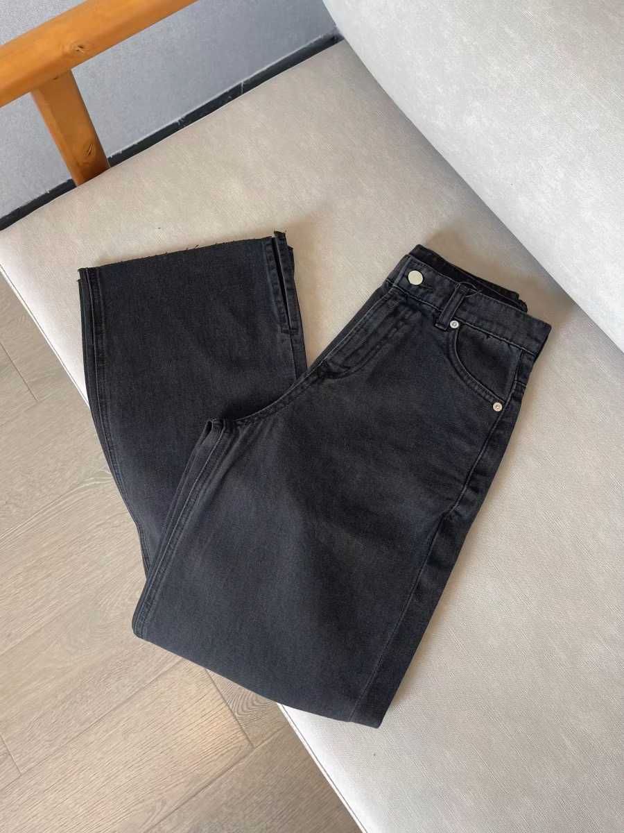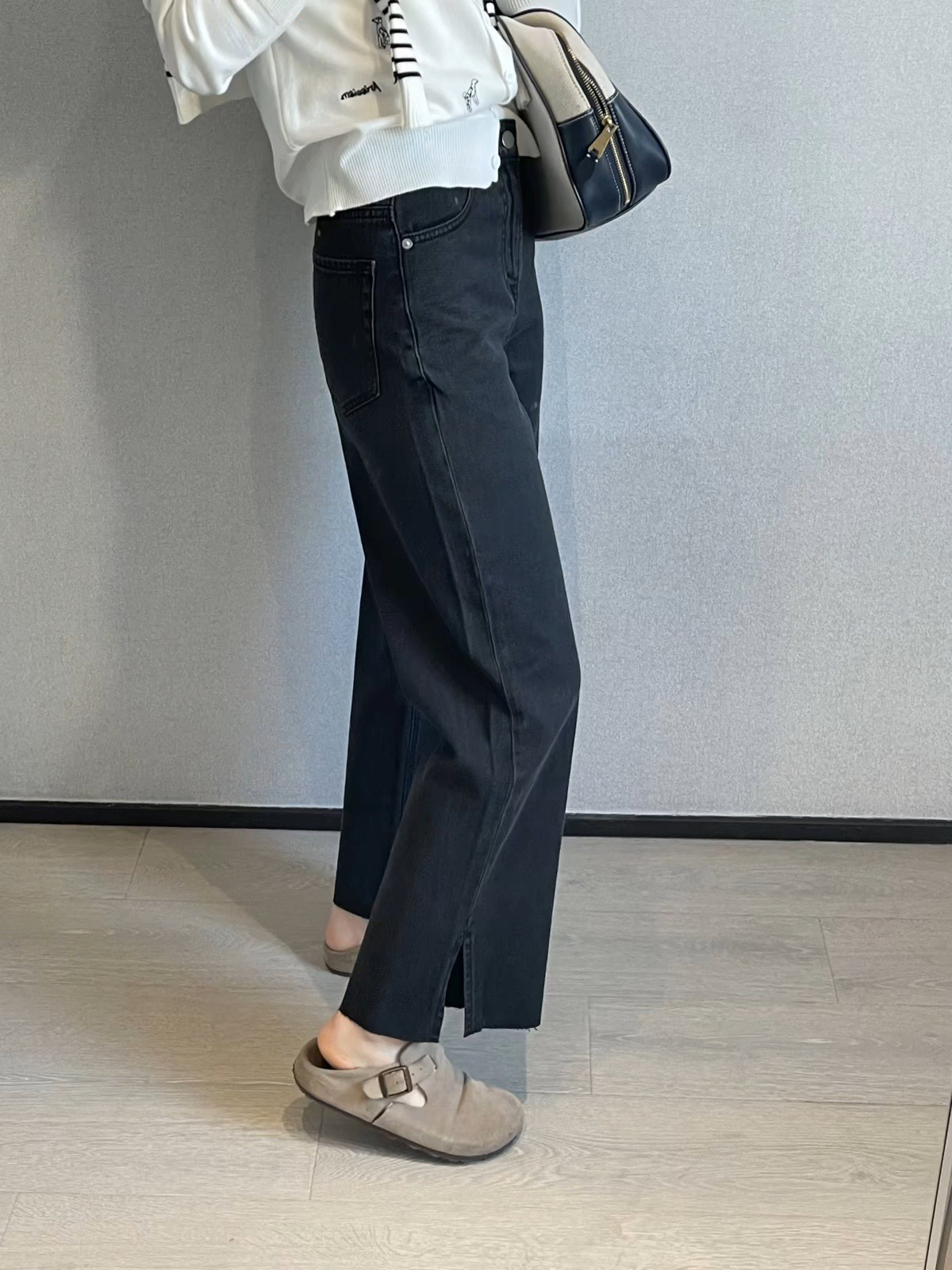 9022403 Mother新款灰色高腰阔腿裤 开衩显瘦牛仔裤 直筒裤