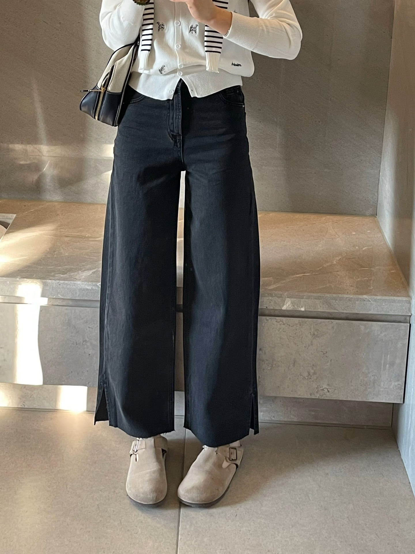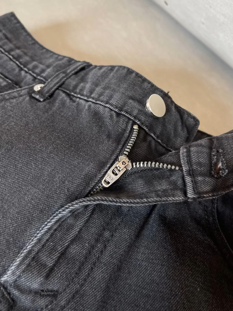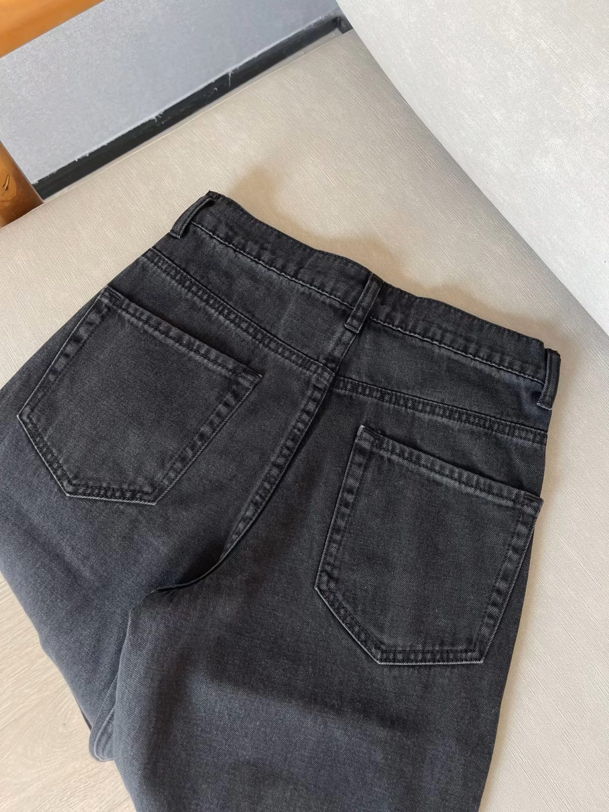 9022403 Mother新款灰色高腰阔腿裤 开衩显瘦牛仔裤 直筒裤