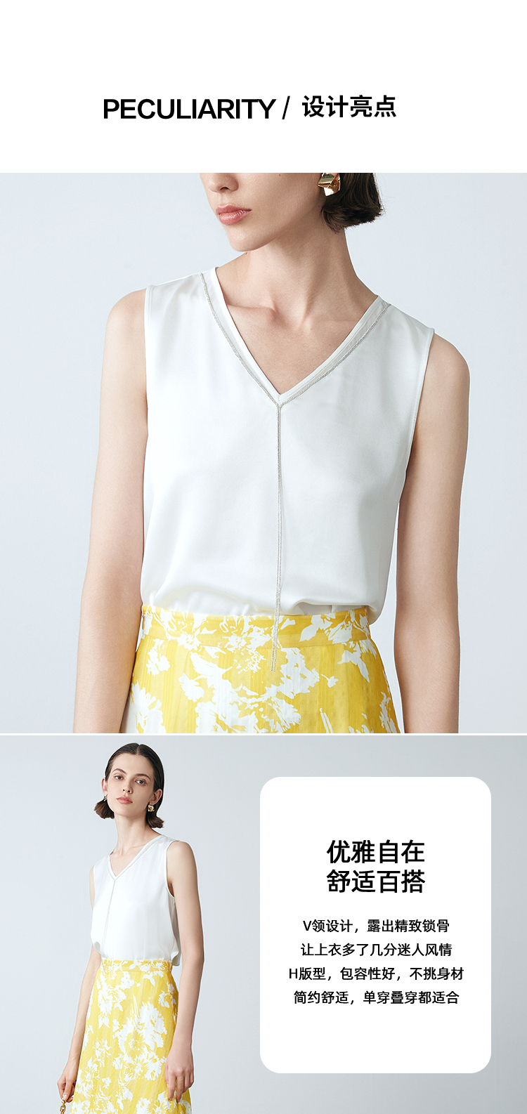 EITIE爱特爱夏季新款V领无袖简约小上衣7713413