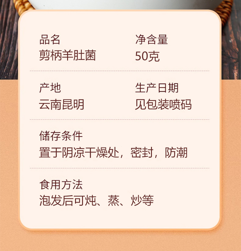 【杨芊一】云南剪柄干羊肚菌50克/袋