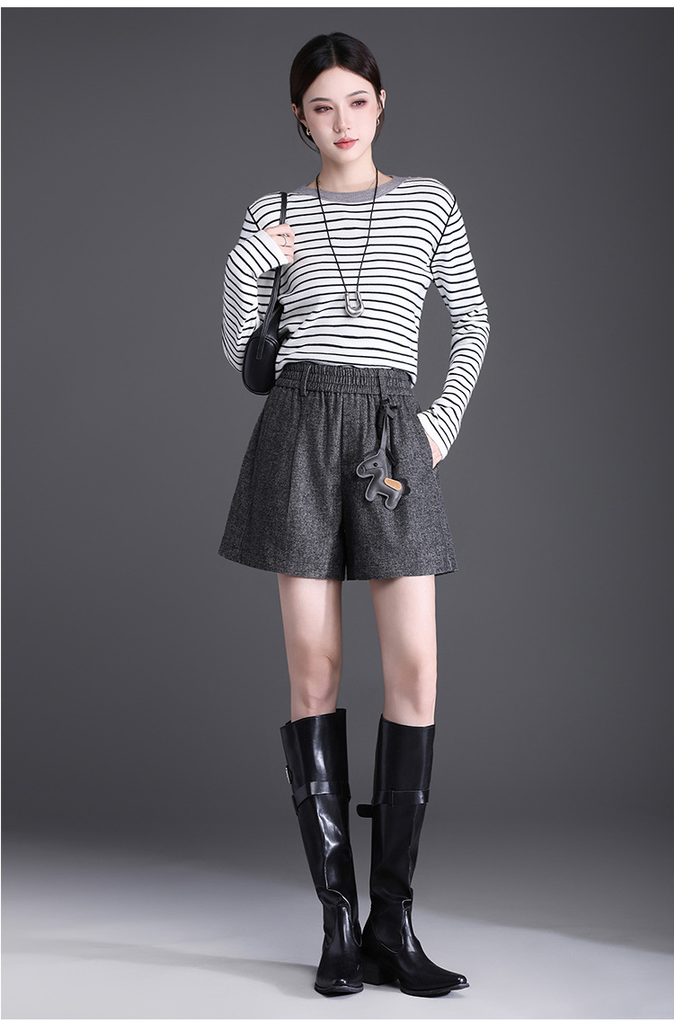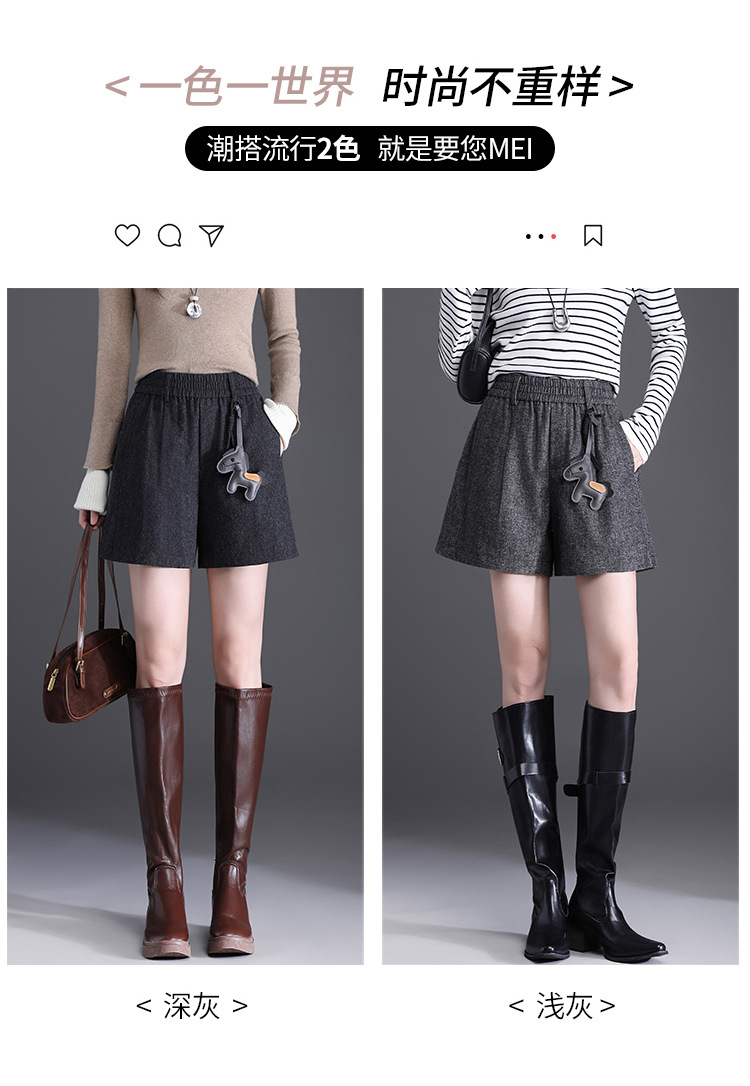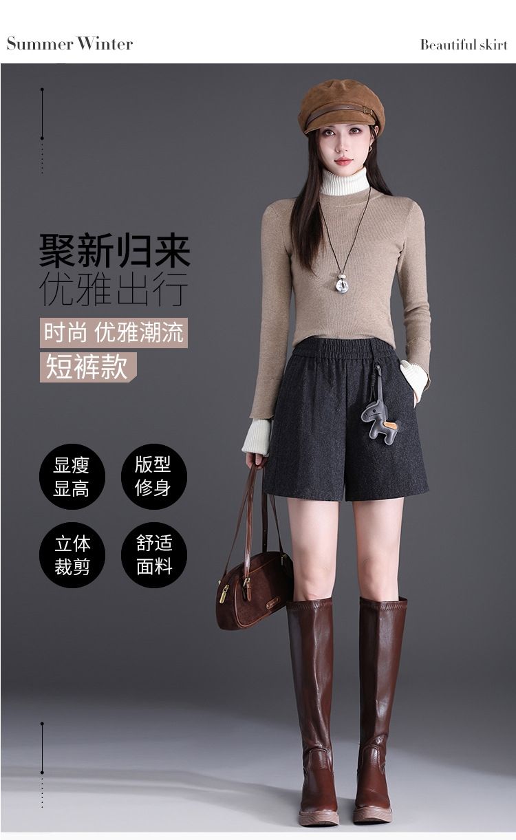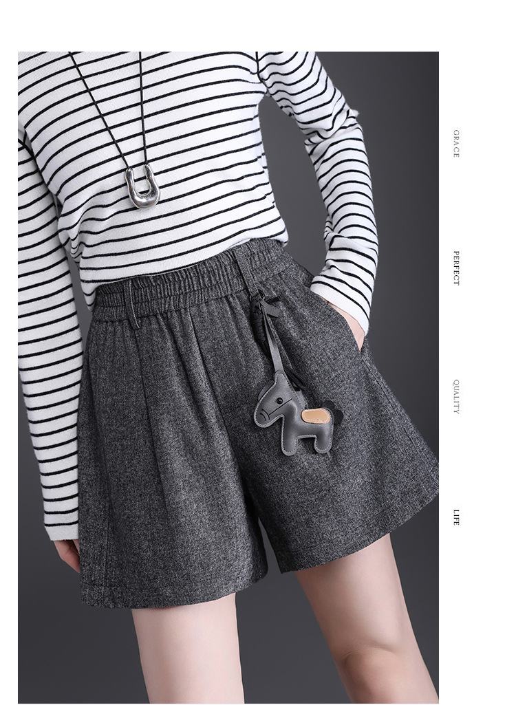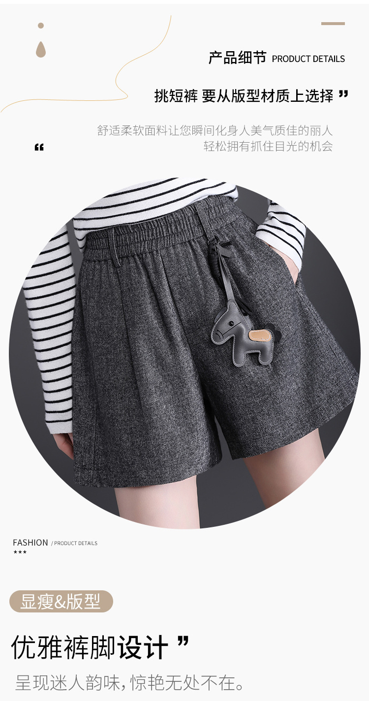 QYM 7111-Y小马挂件短裤厚款松紧高腰A字裤