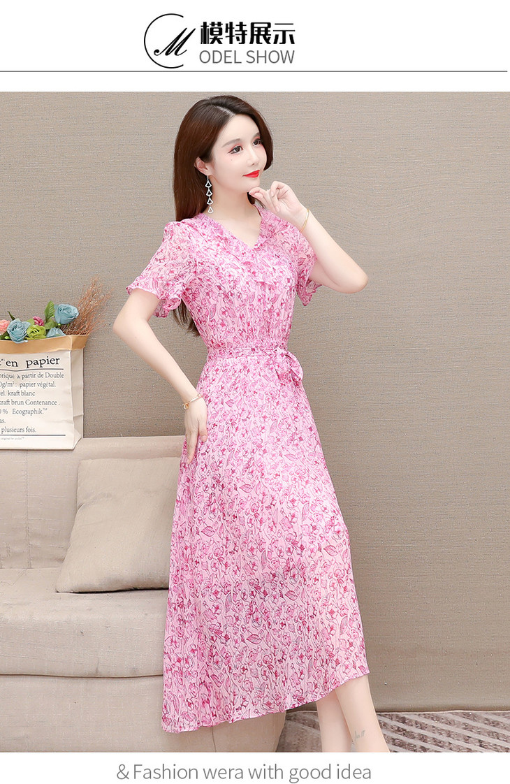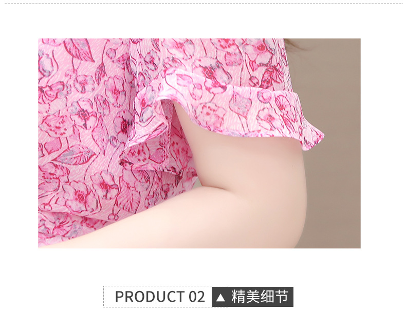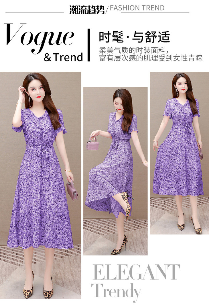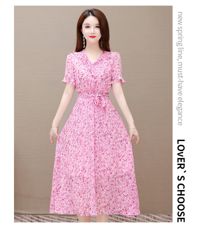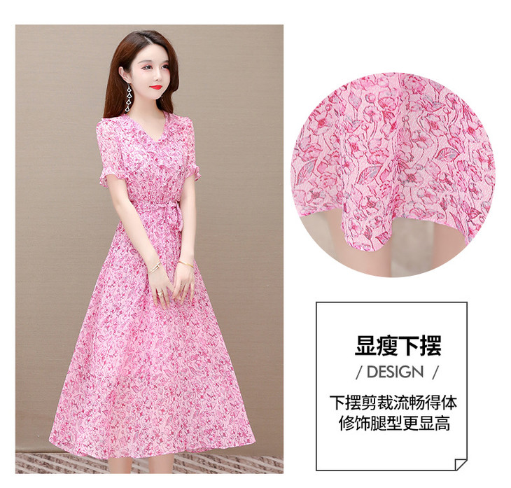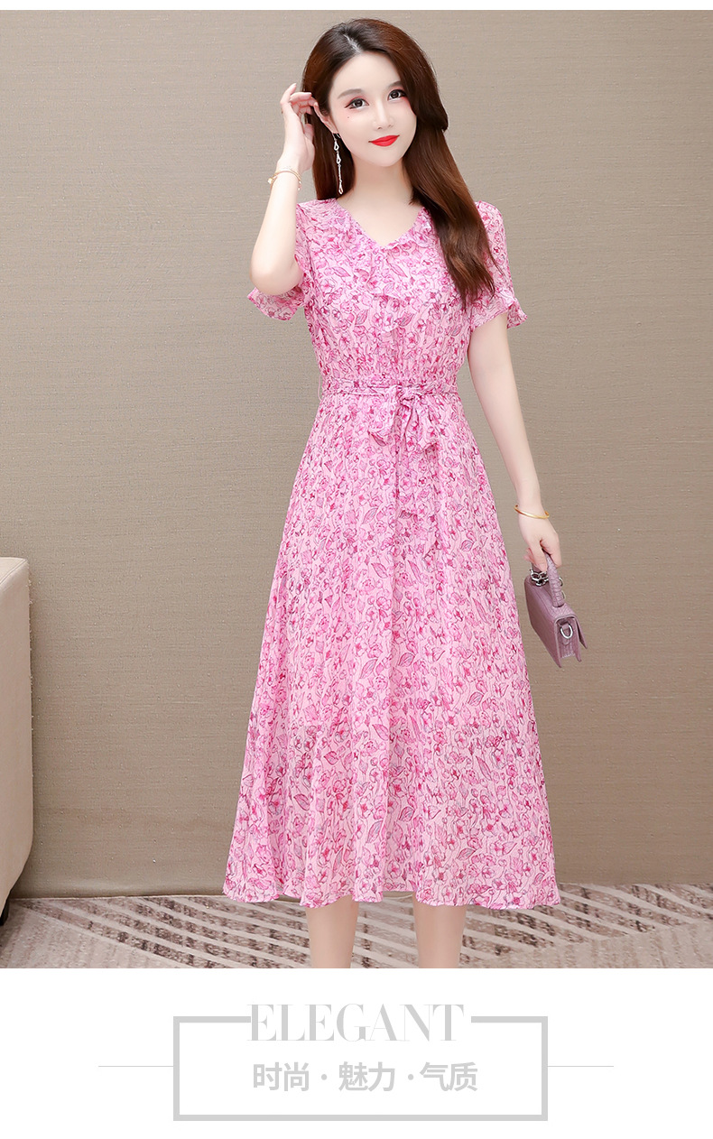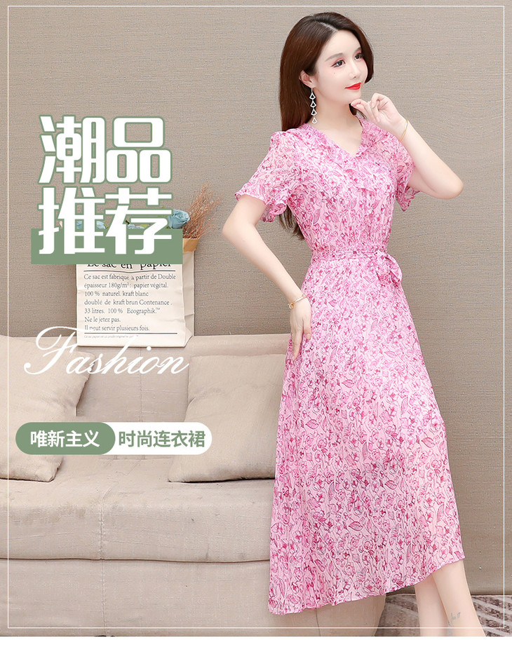 YWE-L21618夏新款气质减龄短袖印花乔其纱连衣裙
