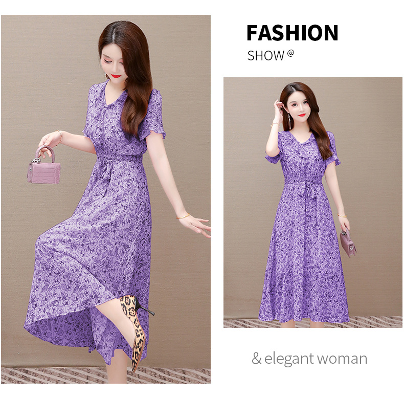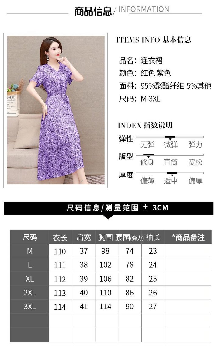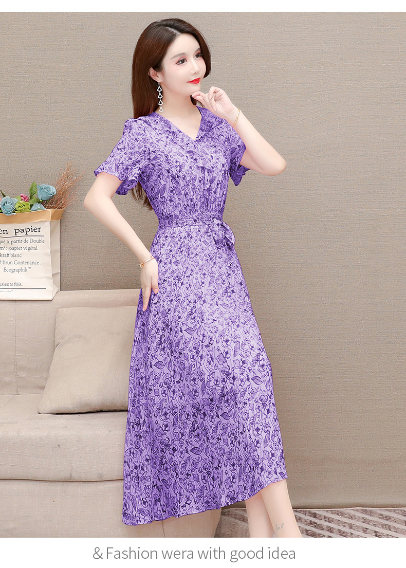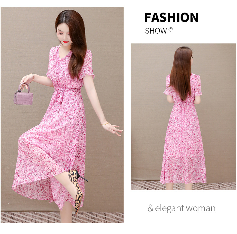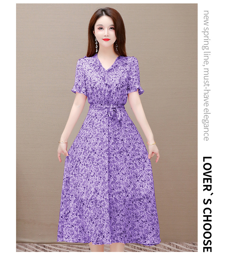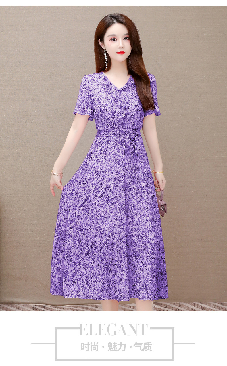 YWE-L21618夏新款气质减龄短袖印花乔其纱连衣裙