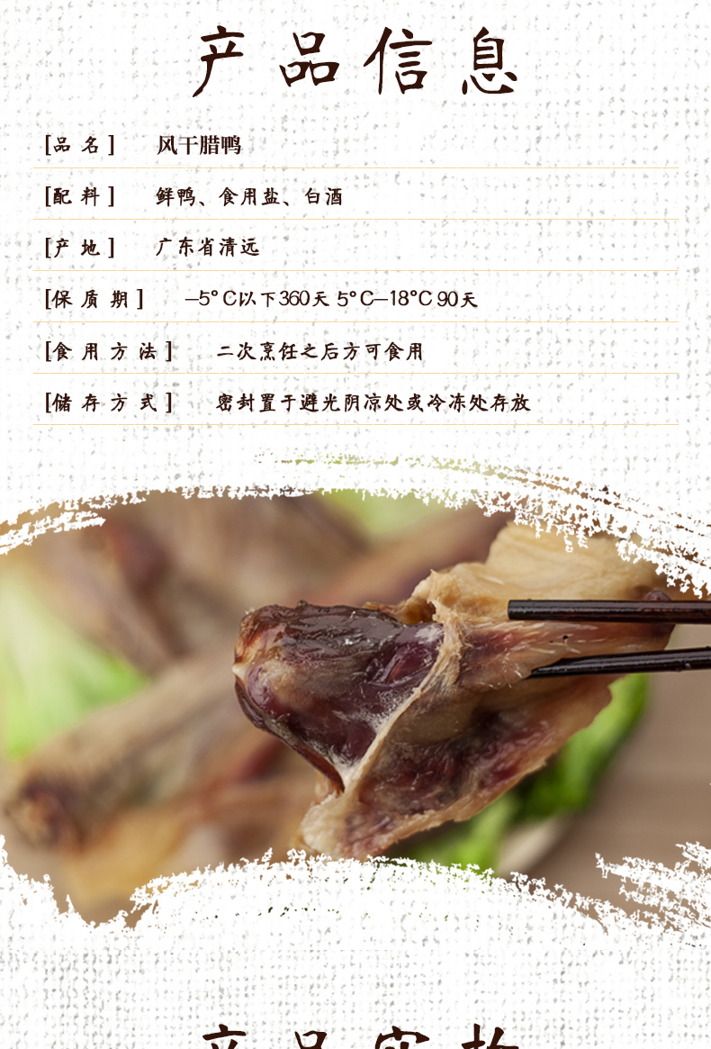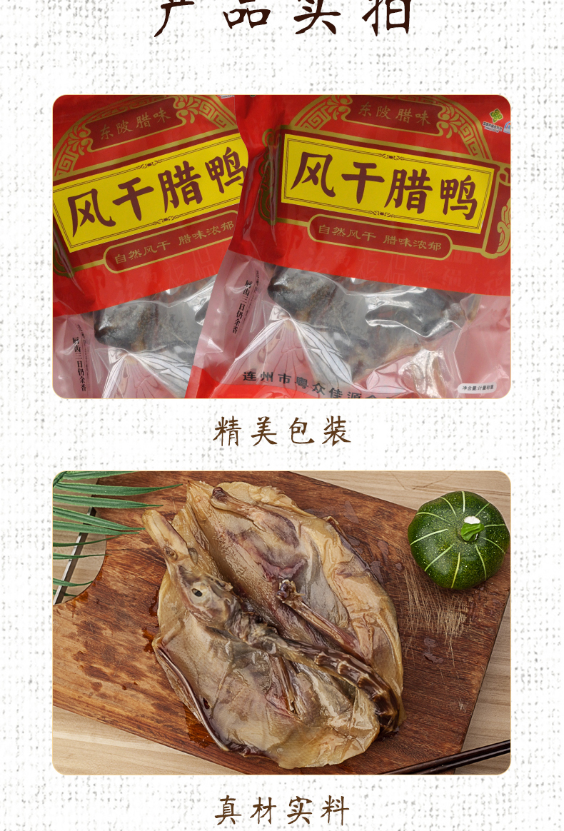 连州特产粤众佳源 东陂腊鸭袋装整只 传统风味自然风干