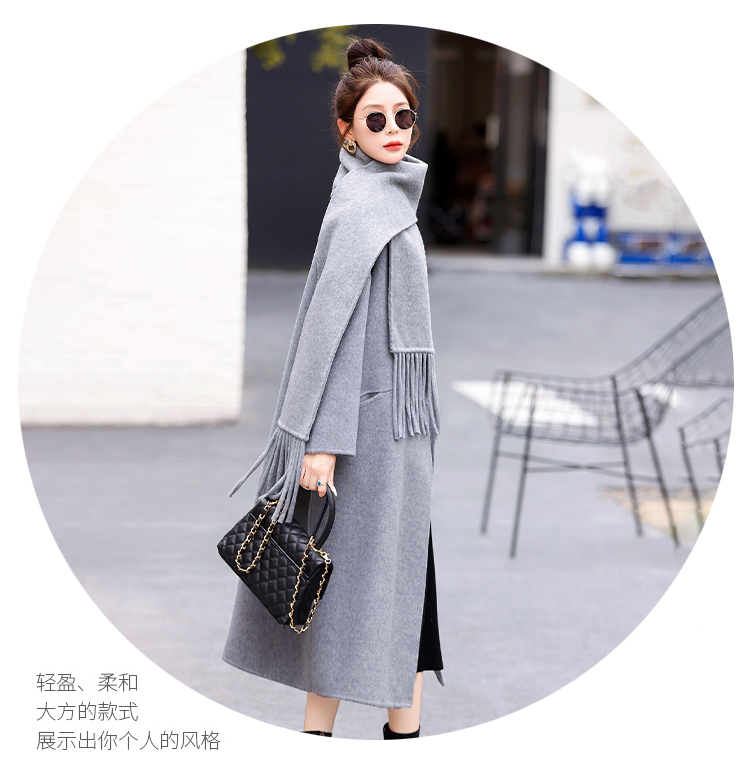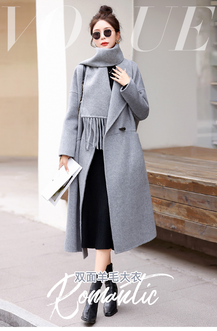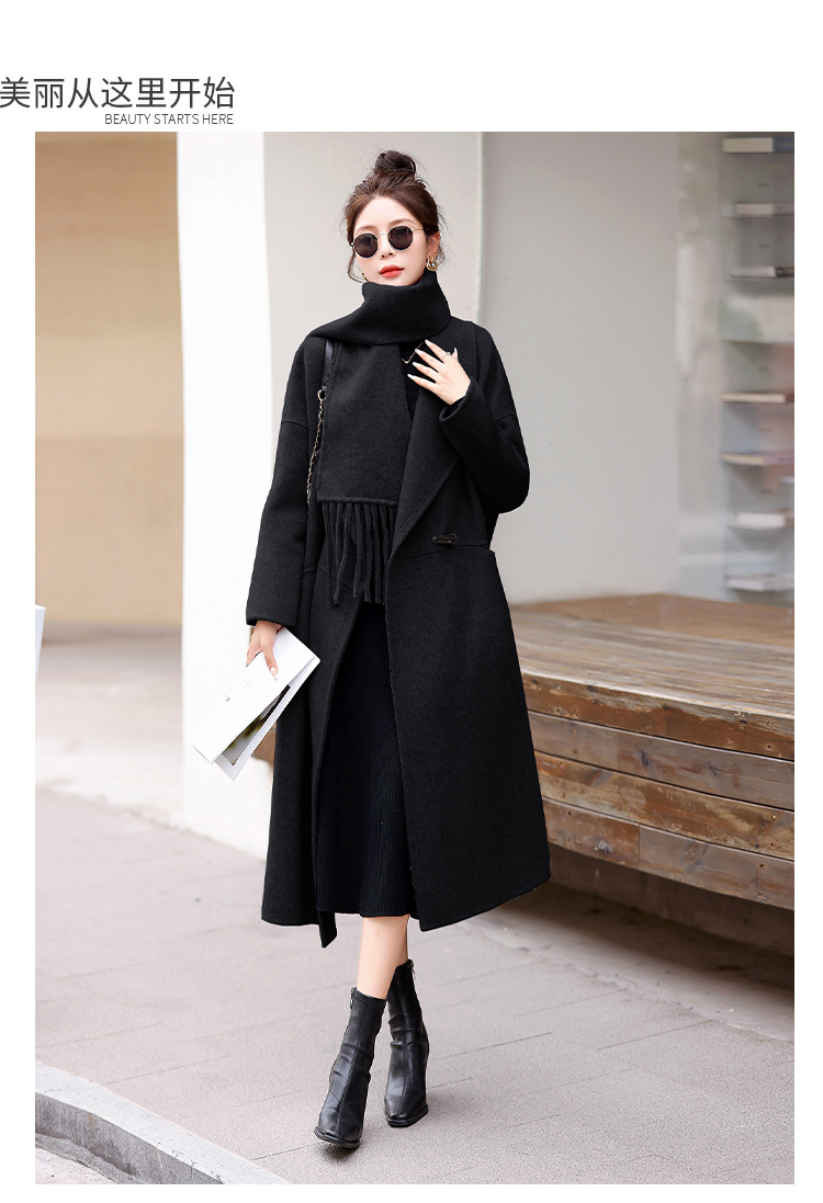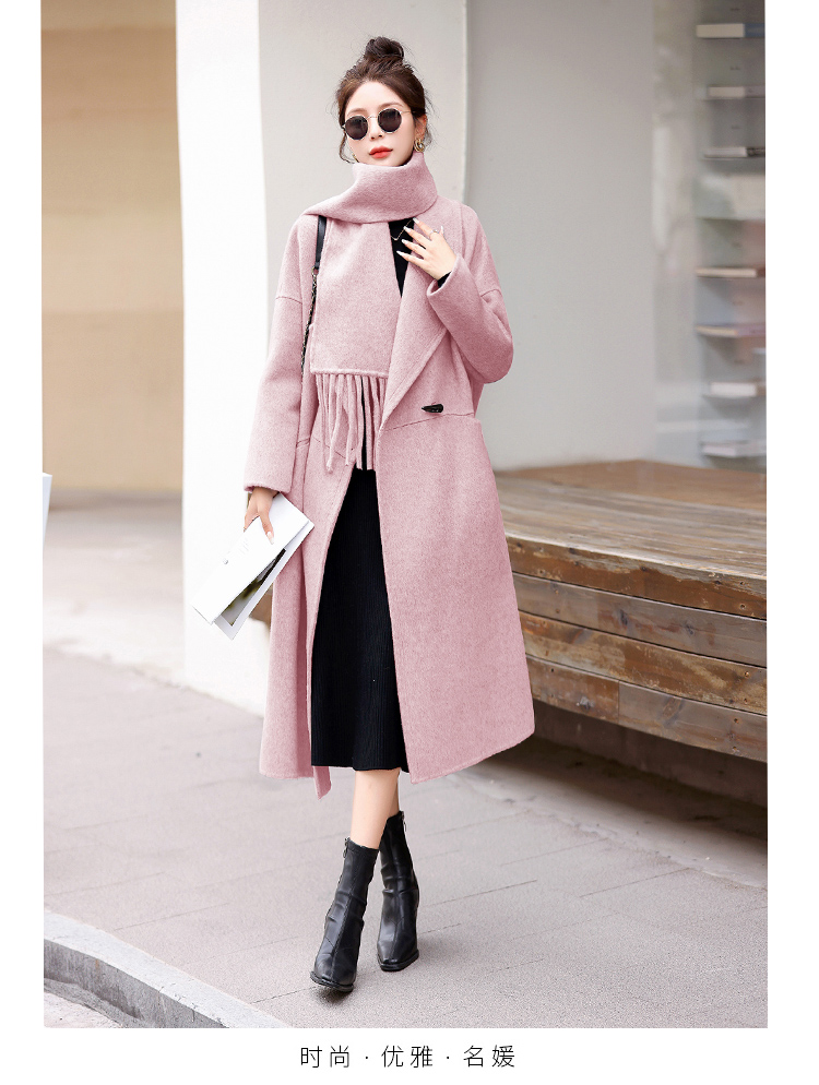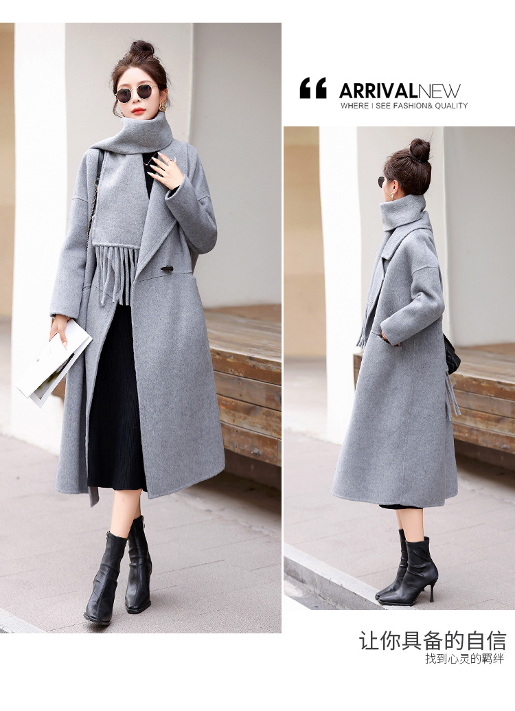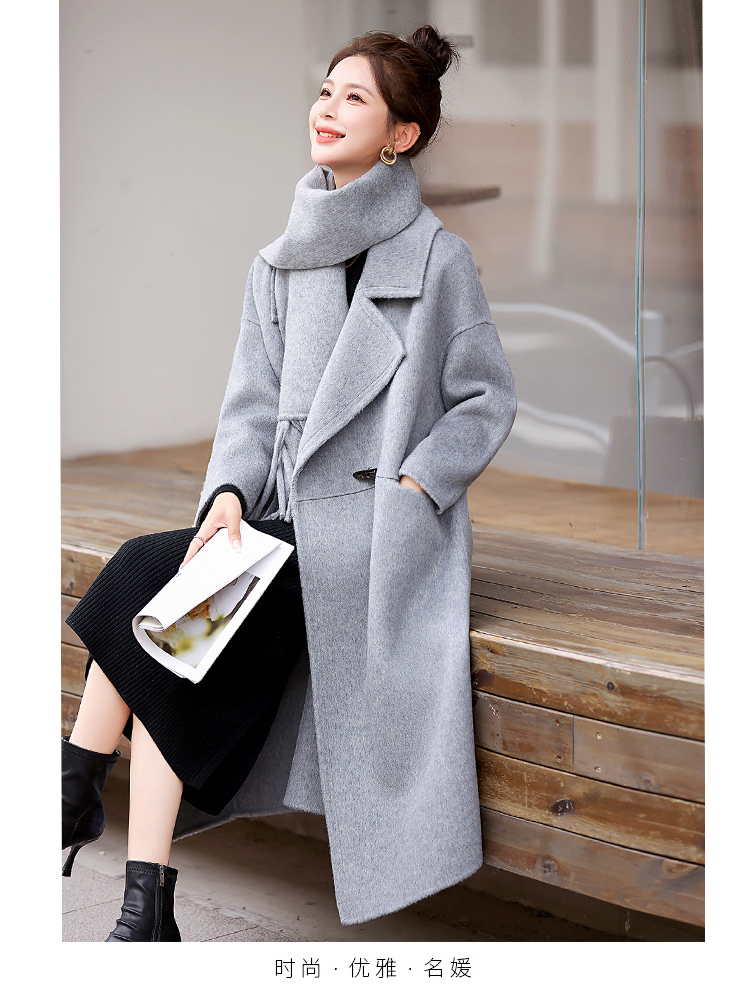 气质百搭韩系羊毛双面呢外套,长款羊毛大衣配围巾HR-BX2302