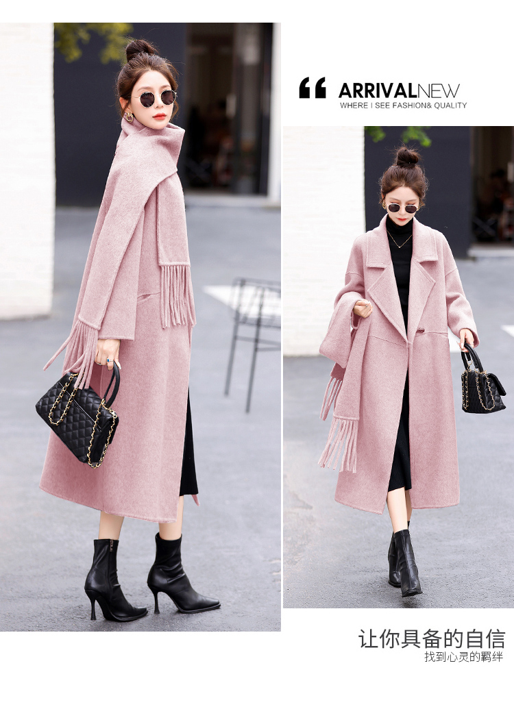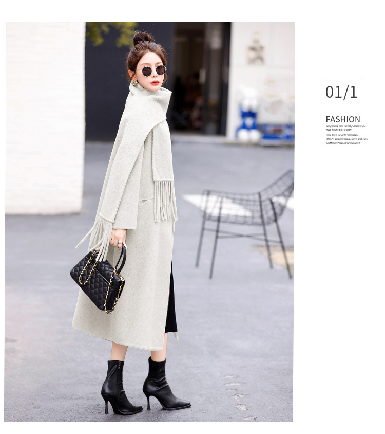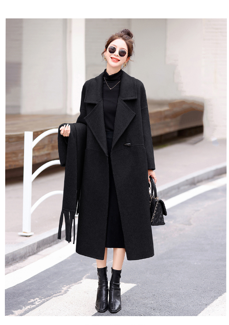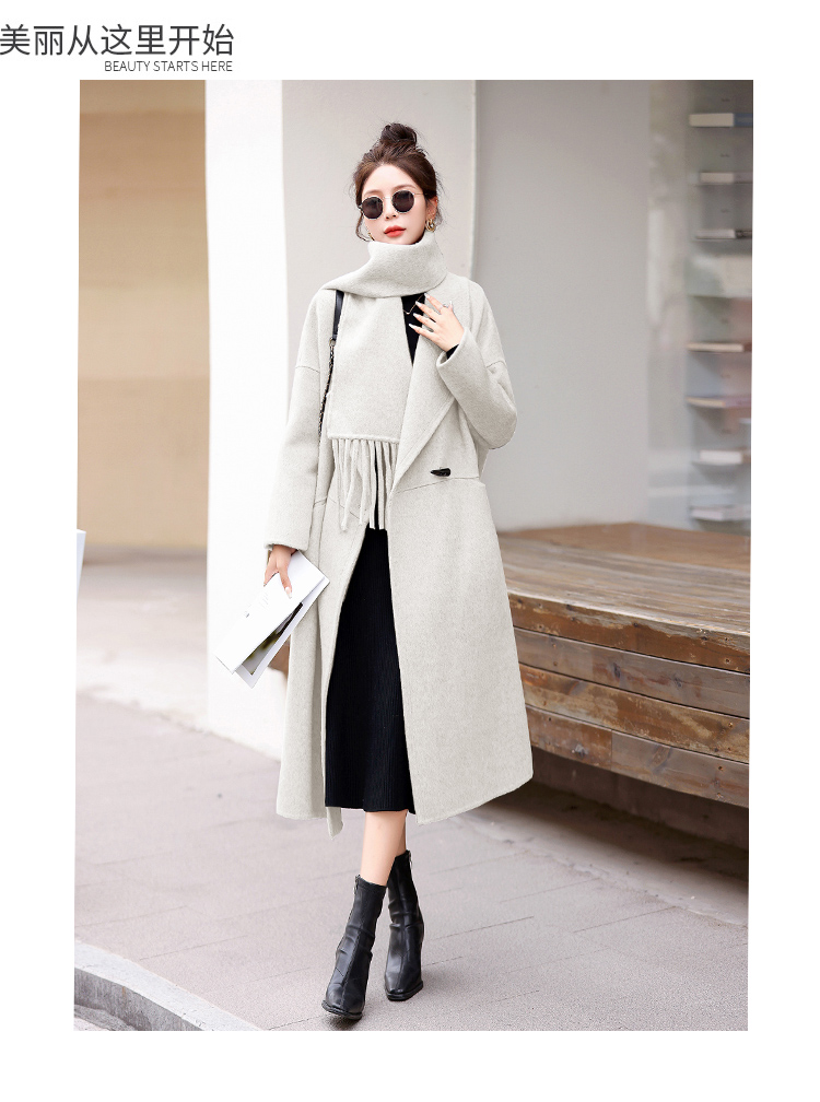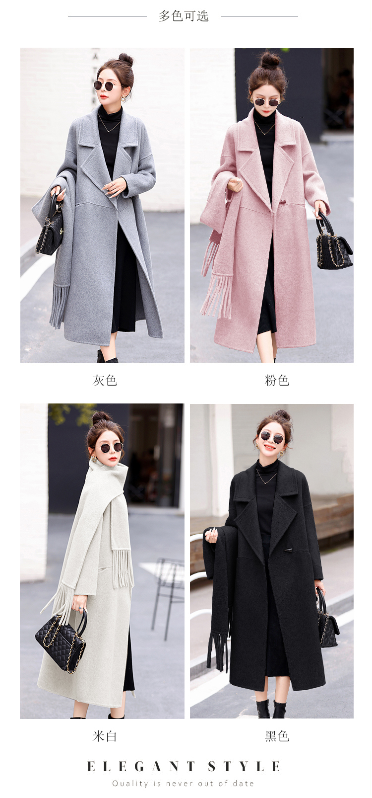 气质百搭韩系羊毛双面呢外套,长款羊毛大衣配围巾HR-BX2302