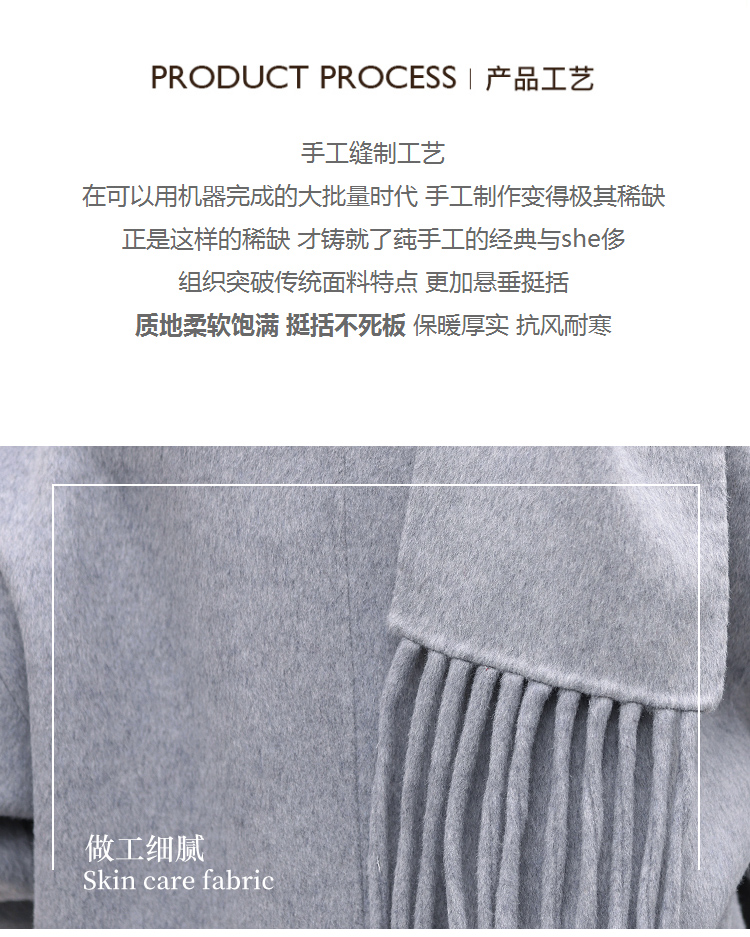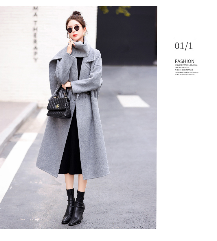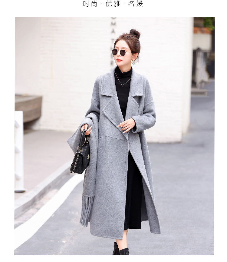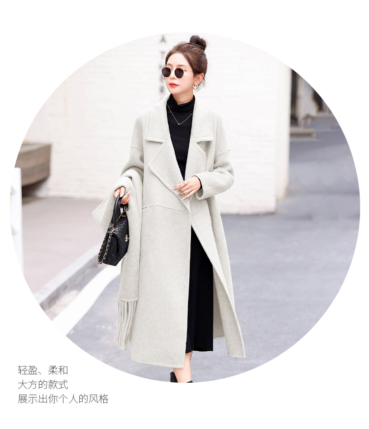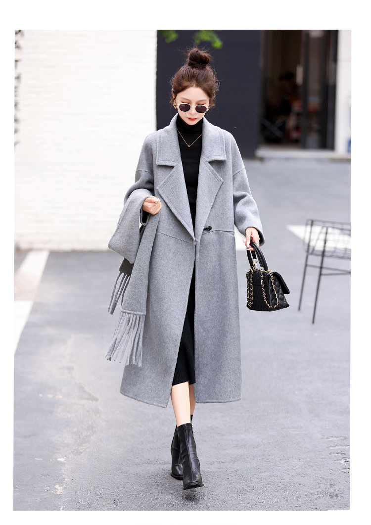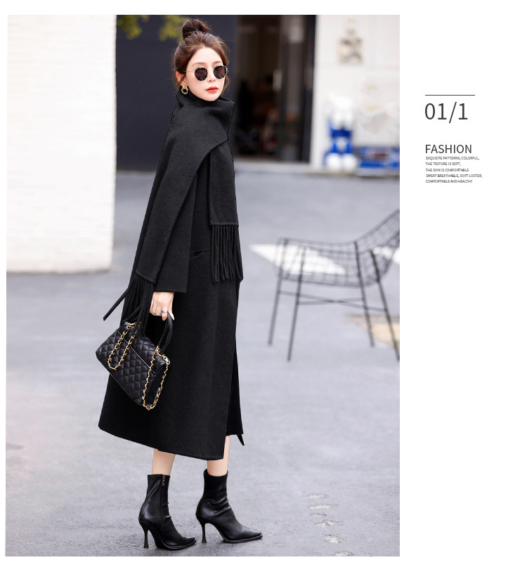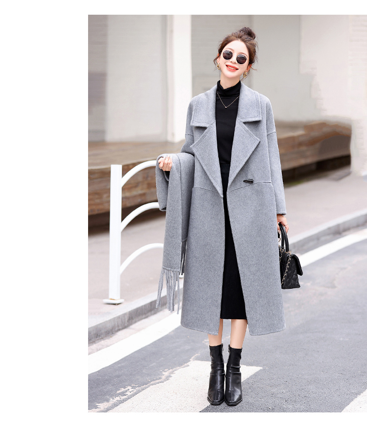 气质百搭韩系羊毛双面呢外套,长款羊毛大衣配围巾HR-BX2302
