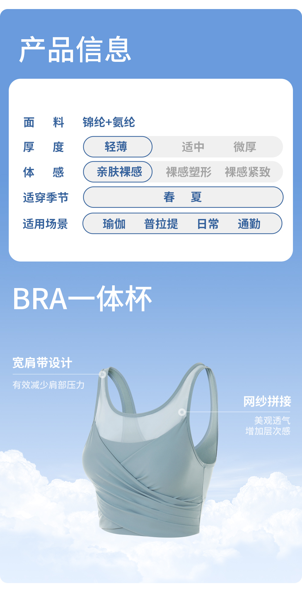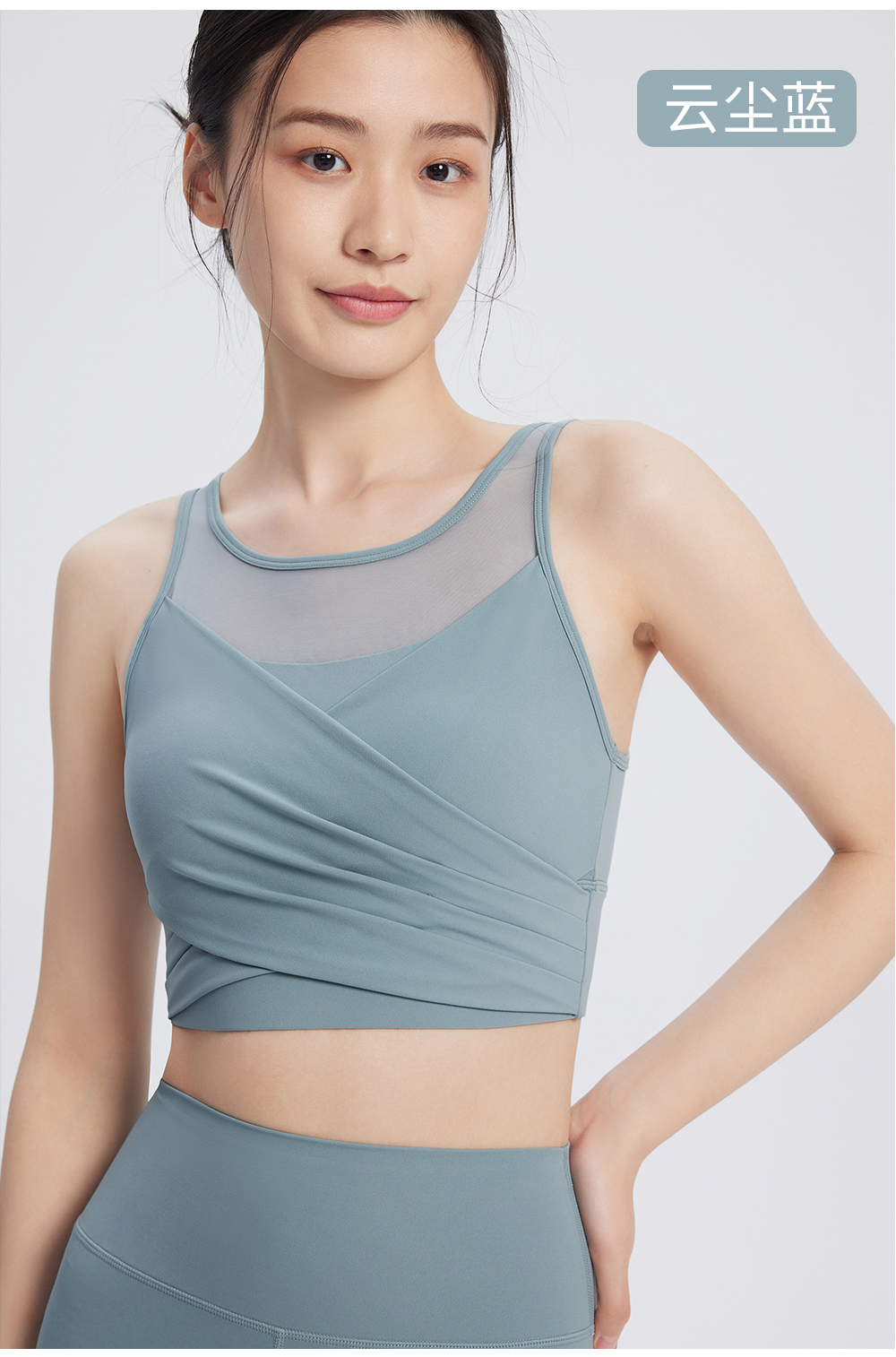 凡圣瑜伽U字背网纱抽褶BRA FC14121