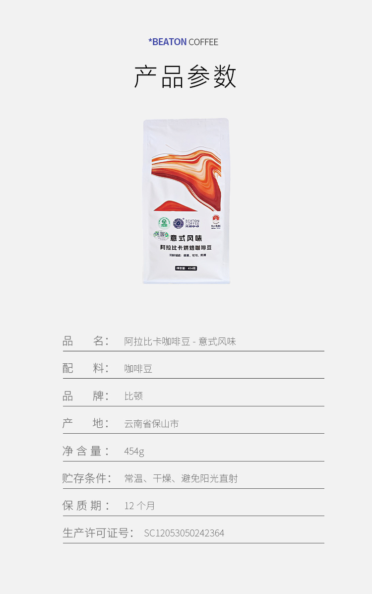 比顿咖啡454克意式风味咖啡豆