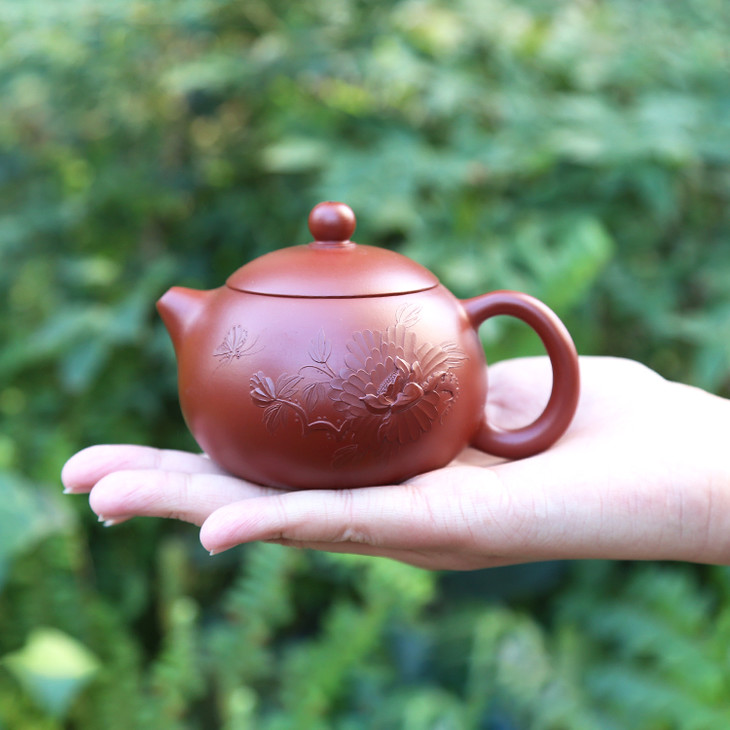 野花闲草间,经常可见翩翩起舞的蝴蝶围花转,妙趣横生。此壶构思巧妙,别具风格,流畅清晰、韵味尽显。泥色古拙典雅,经典西施壶,壶身饱满丰腴,匀致厚重,浑圆一体,端庄大气。