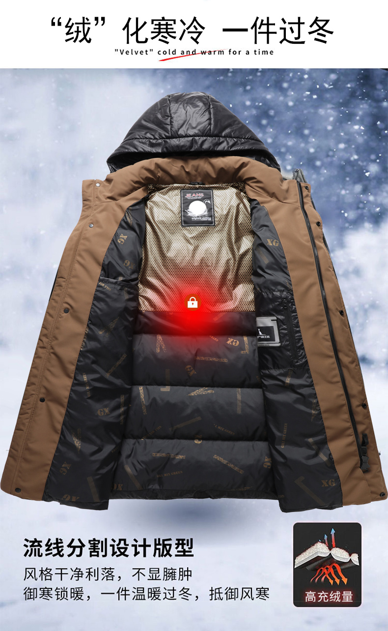 【特大码】【可拆卸帽】【新款DBW】大依优型大码中长款防风黑金羽绒服鸭绒外套休闲胖子大码男休闲宽松加肥加大上衣