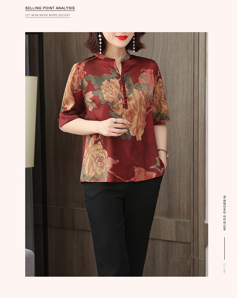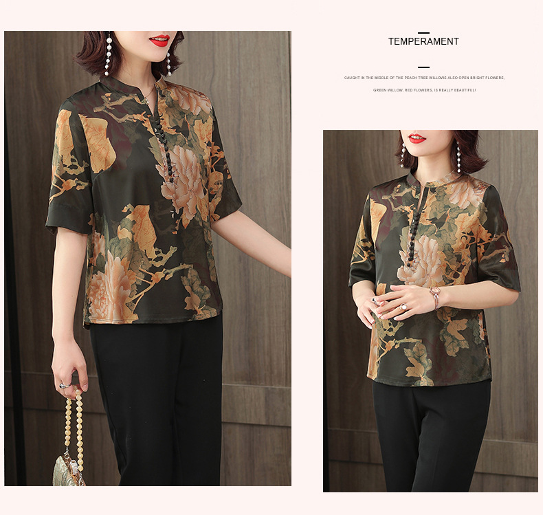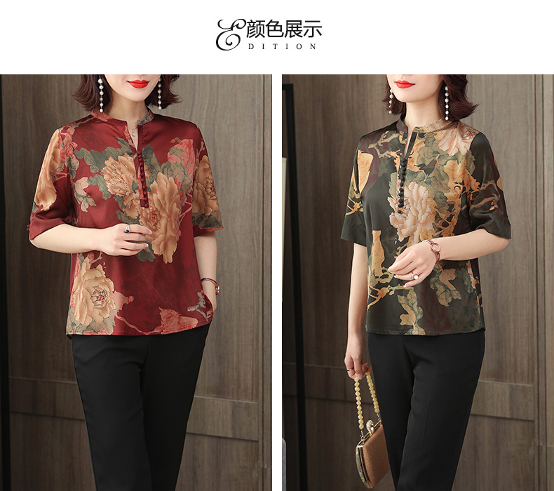 MQ-LM8268夏季新款复古民族风中袖仿真丝T恤YY