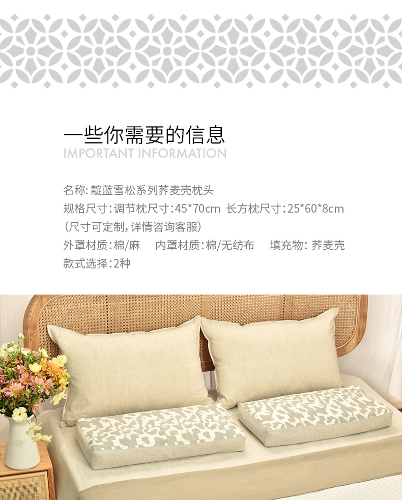 靛蓝雪松系列荞麦壳枕头可调节护颈枕
