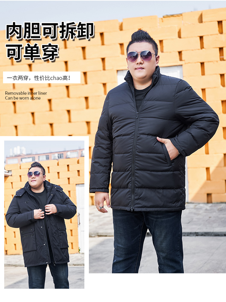 【2天发货】【超大码】【可拆卸内胆】【新款DYH】大依优型大码羽绒服可拆卸帽加肥加大冬季外套休闲胖子大码男休闲宽松上衣肥佬