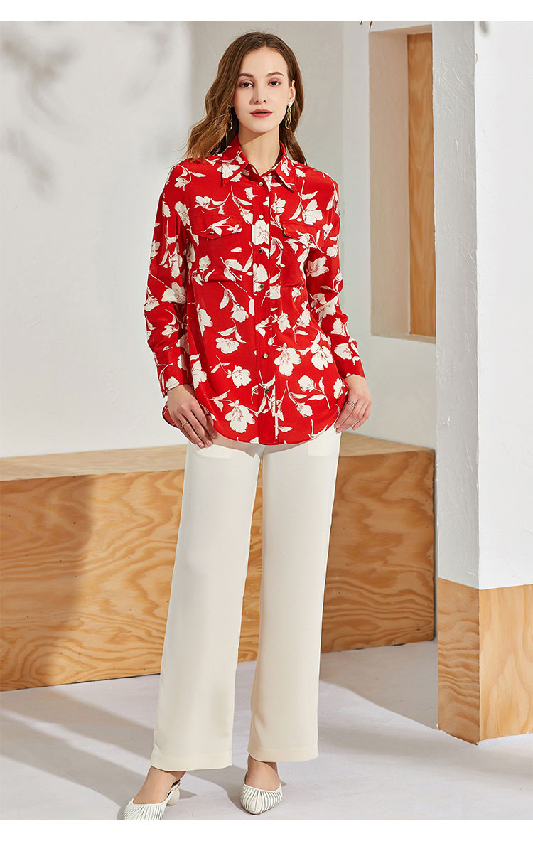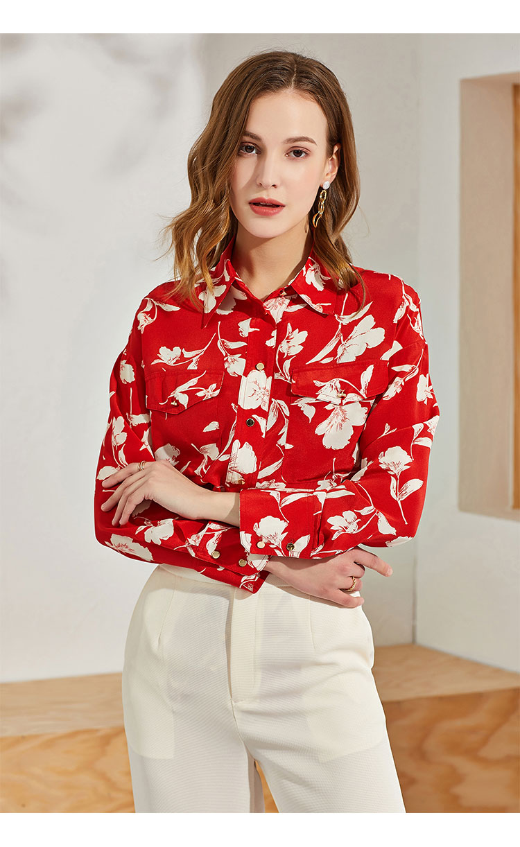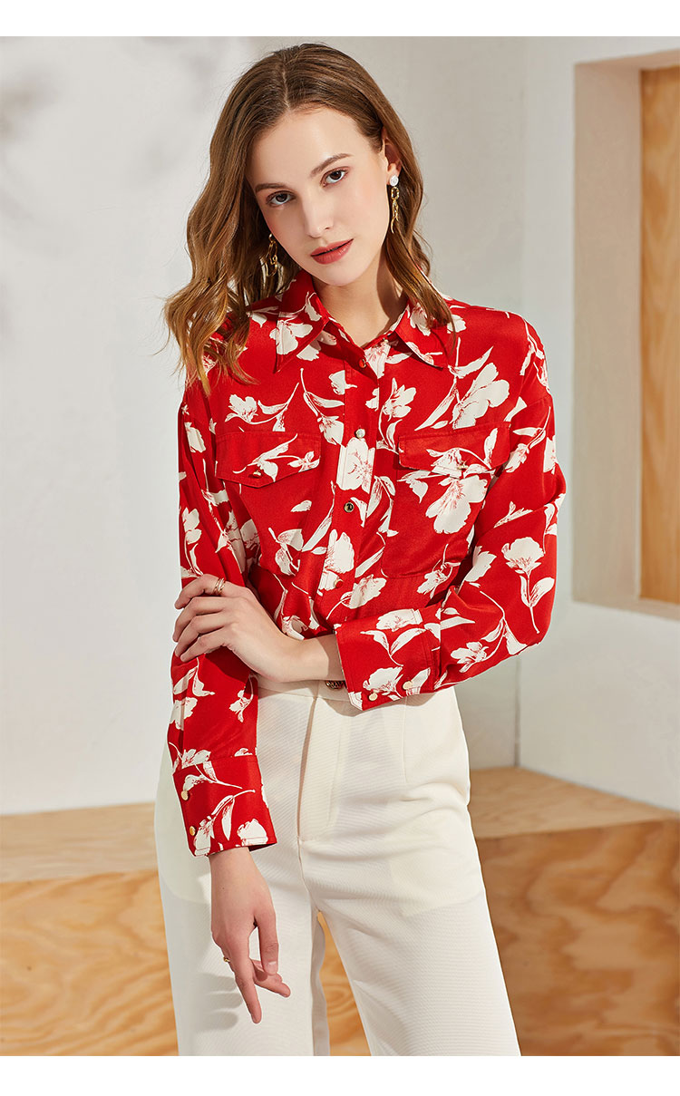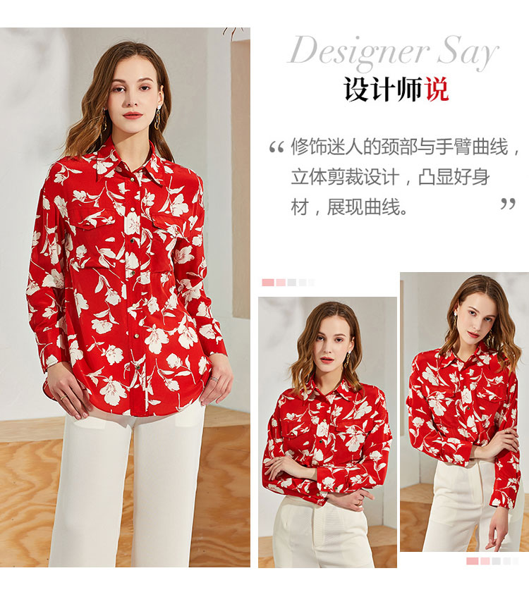 丁摩 真丝衬衫女时尚印花桑蚕丝衬衫上衣Q121006-DW599 商品图4