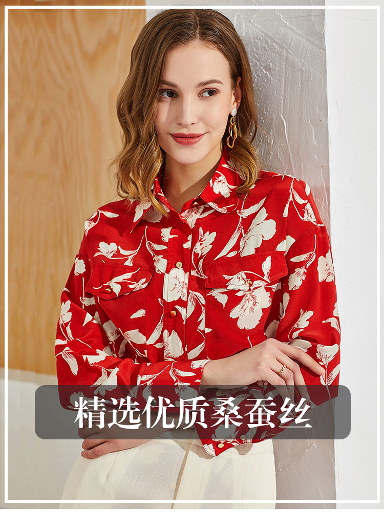 丁摩 真丝衬衫女时尚印花桑蚕丝衬衫上衣Q121006-DW599