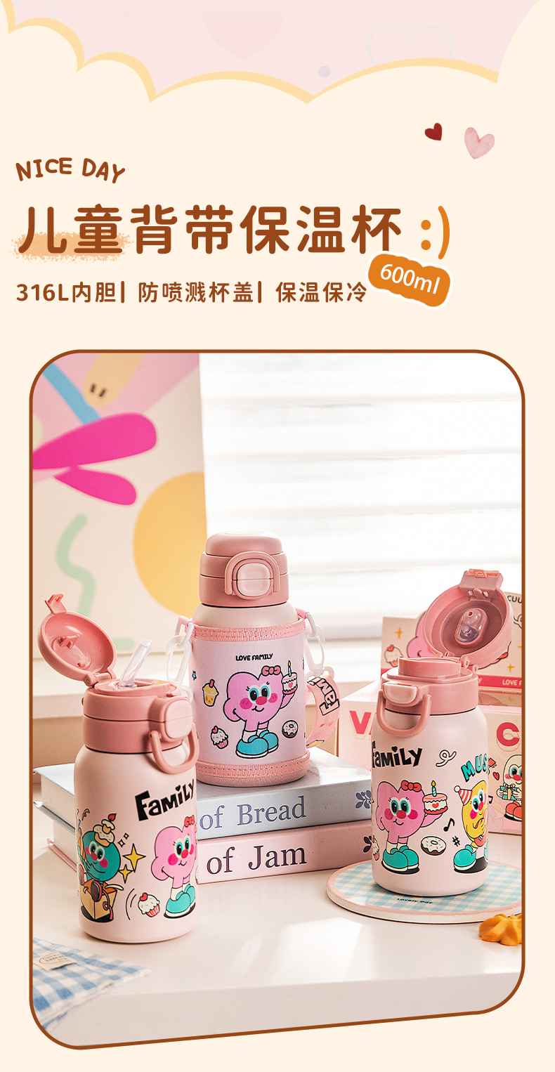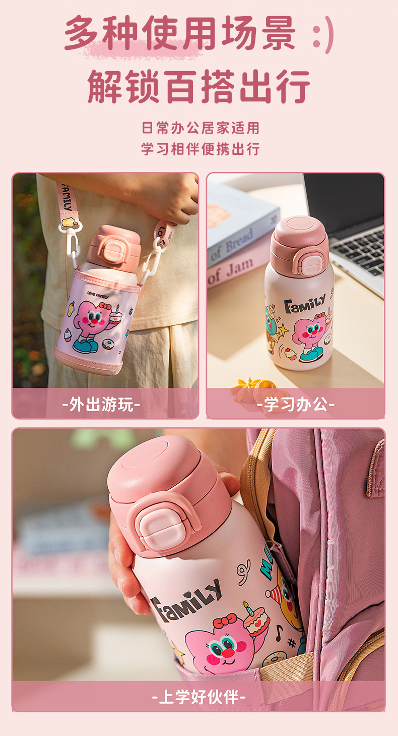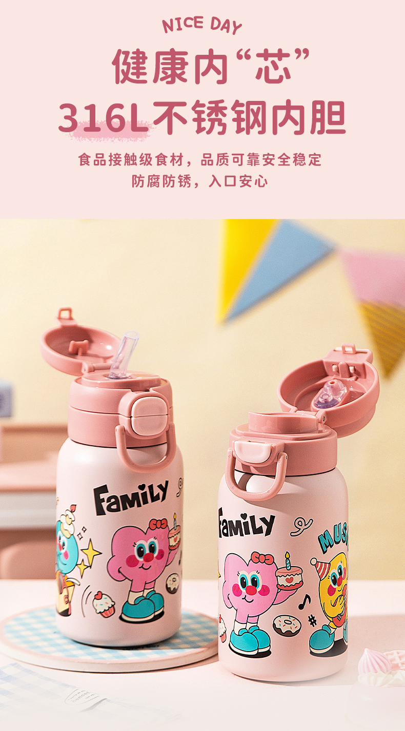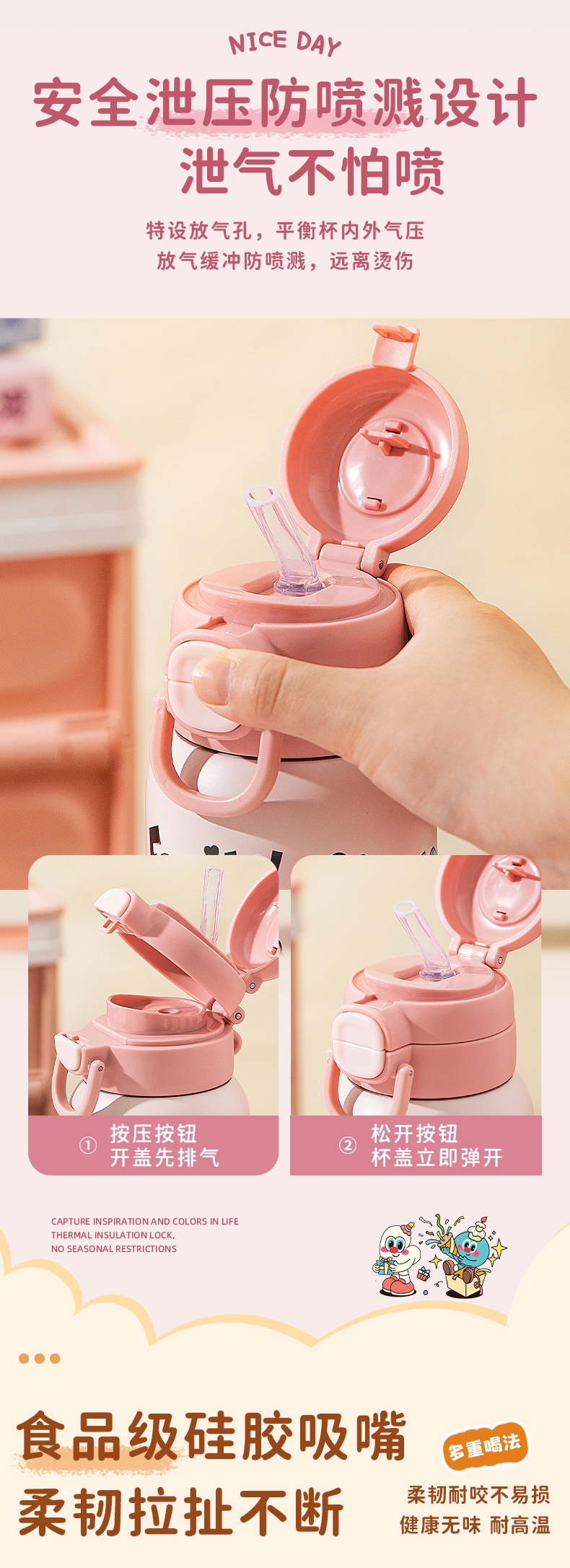 摩登主妇儿童保温杯保冷学生上学专用水杯外出携带杯子女生吸管杯