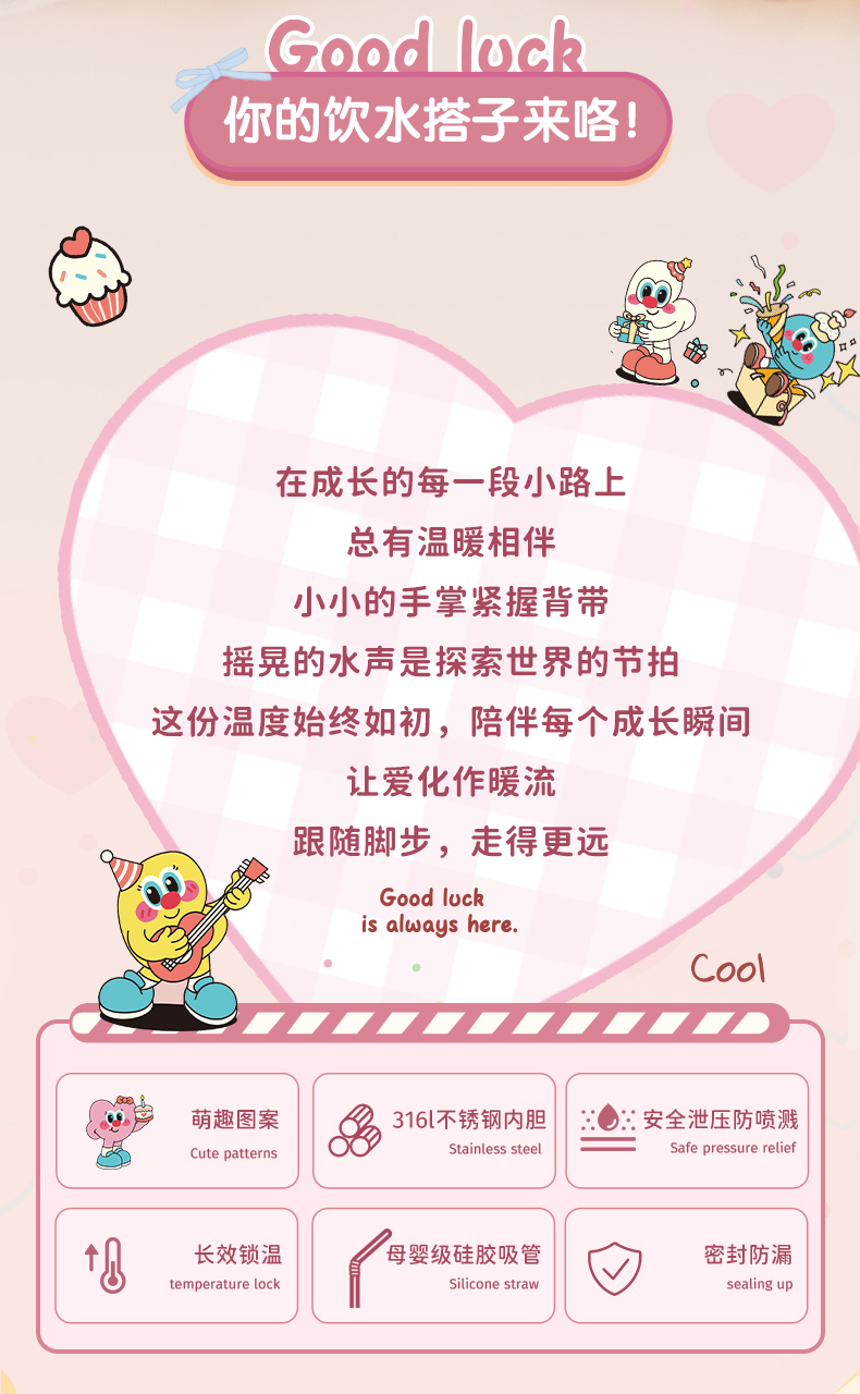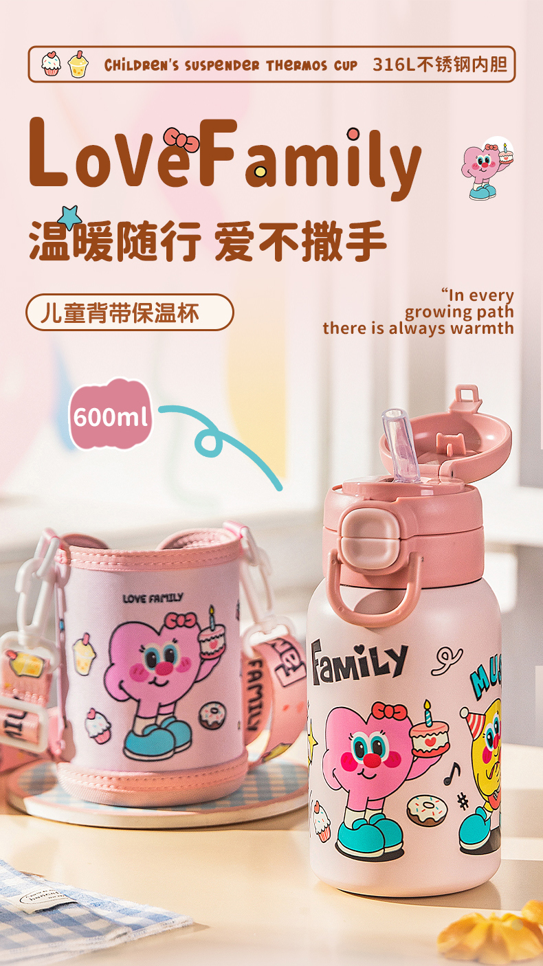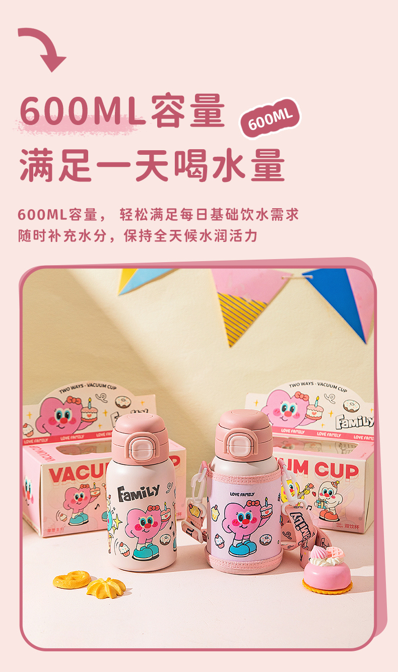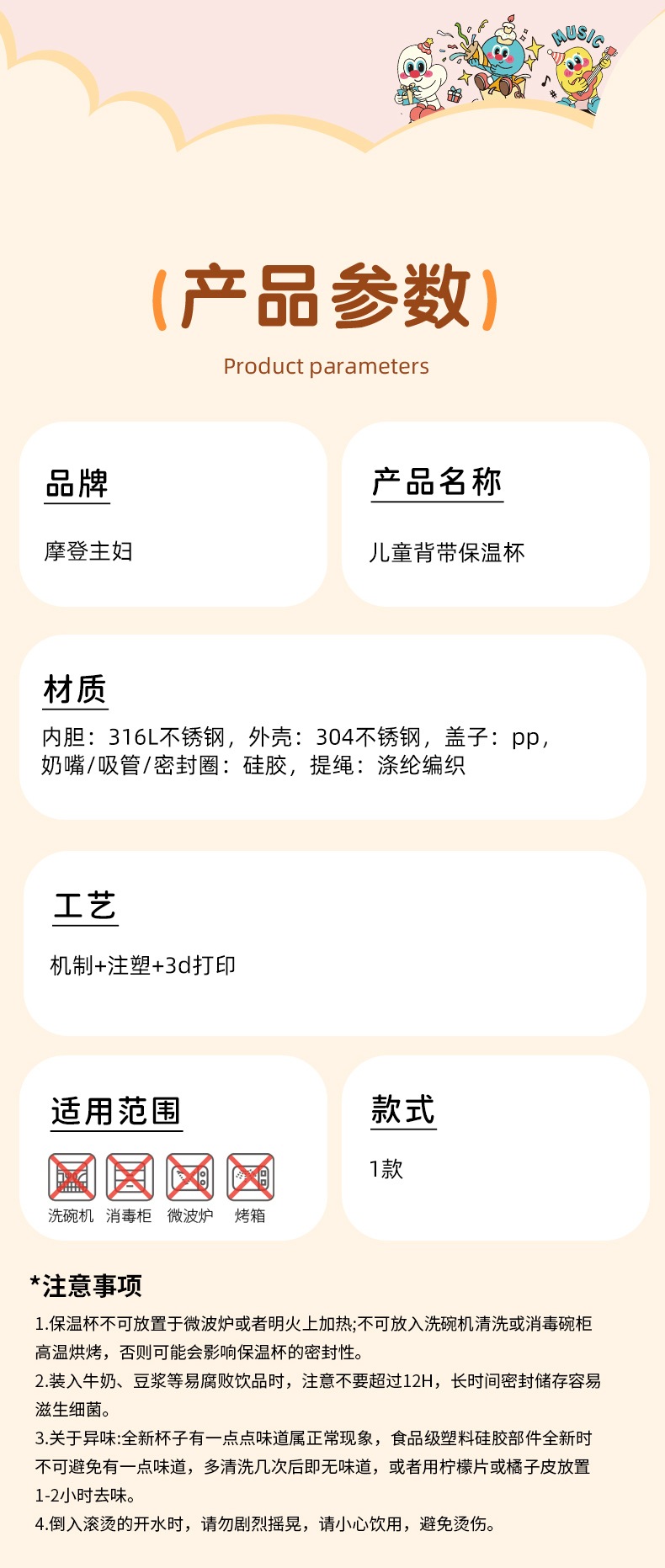 摩登主妇儿童保温杯保冷学生上学专用水杯外出携带杯子女生吸管杯