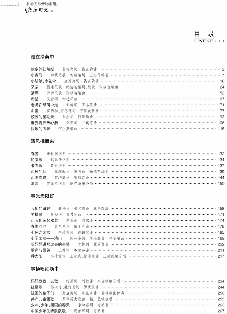 本书为新中国成立60多年来广为传唱、脍炙人口的经典少儿合唱曲集。本卷收录了合唱曲32首,这些歌曲题材广泛,突出了“轻松快乐”的主题。书中所选曲目各依其题材内容和艺术特点分为“走在绿荫中”“清风拂面来”“春光无限好”“飘扬吧红领巾”四个专栏。具有代表性的曲目有《快乐的罗嗦》《小姑娘,小花伞》《世界需要热心肠》《听妈妈讲那过去的事情》《妈妈教我一支歌》《少年,少年,祖国的春天》《西风的话》《让我们荡起双桨》《祖国的孩子们》《共产儿童团歌》《中国少年先锋队队歌》等等。本书为简线谱对照版,适合中小学校以及青少年宫的合唱训练和歌咏比赛等音乐活动使用。