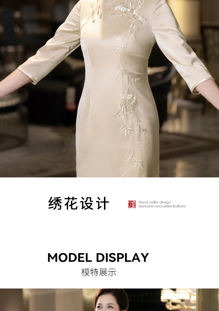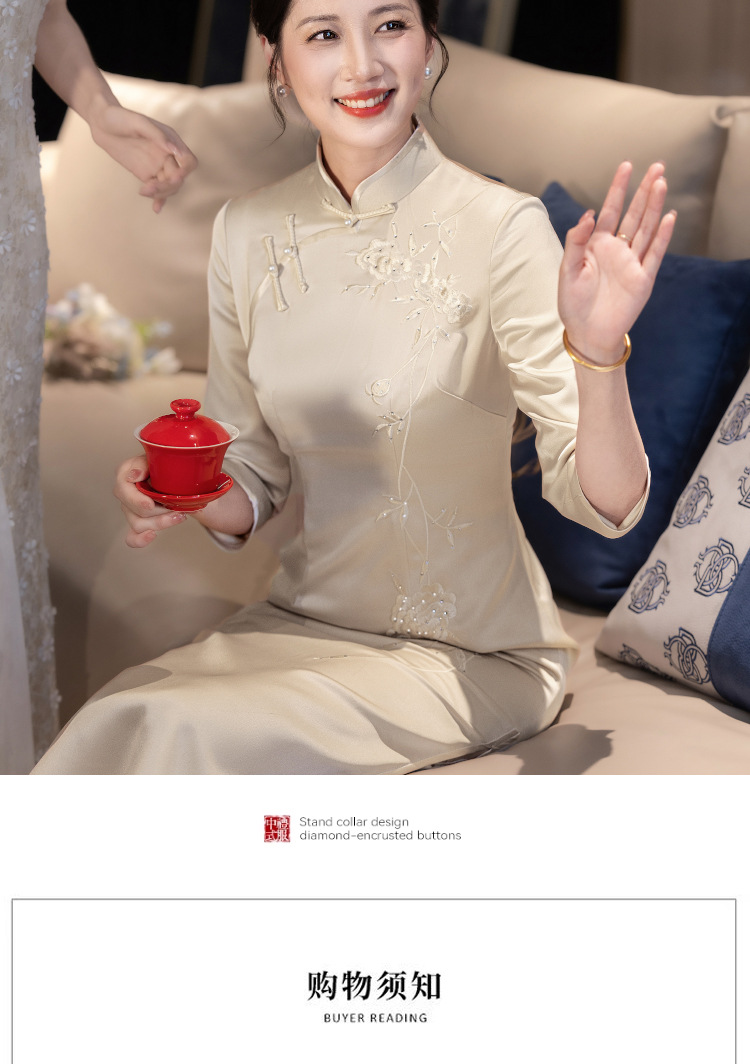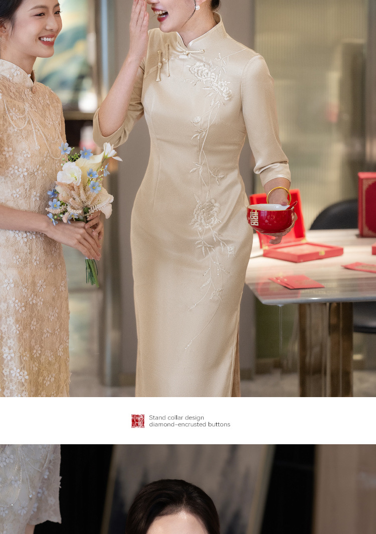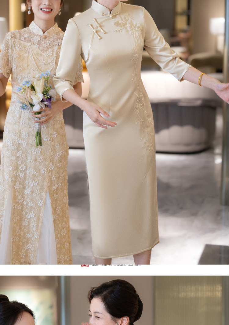 LHS C54香槟色旗袍喜婆婆婚宴装礼服裙