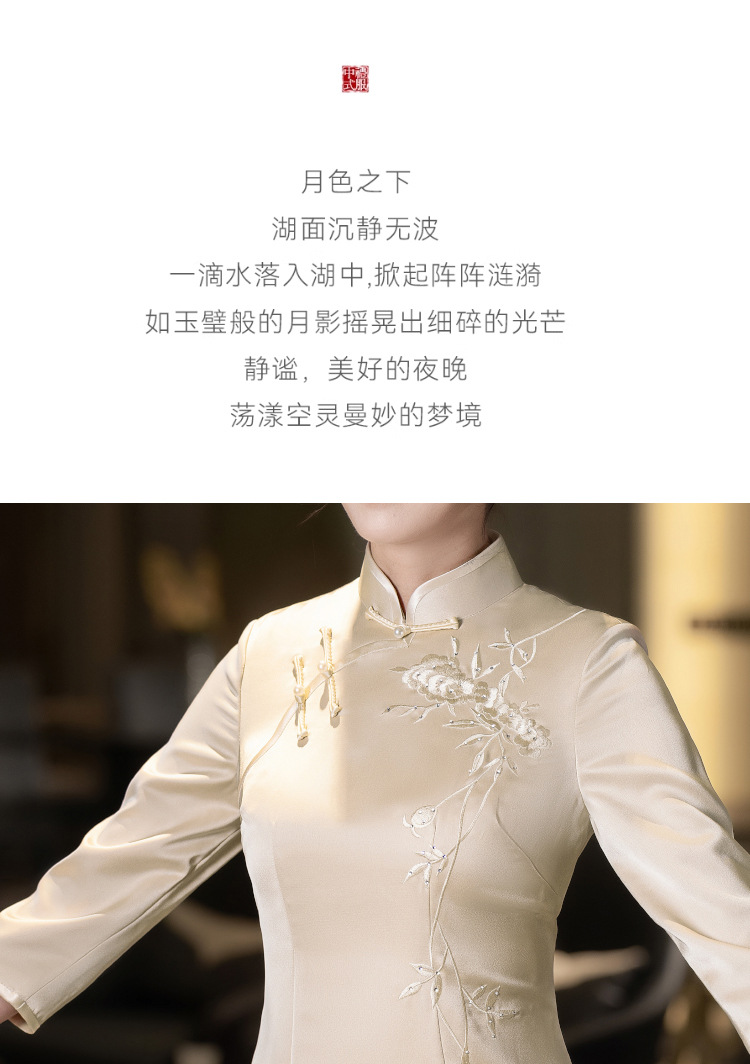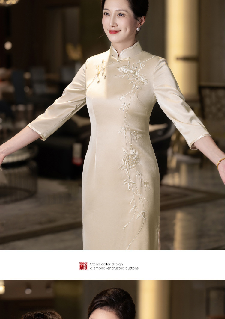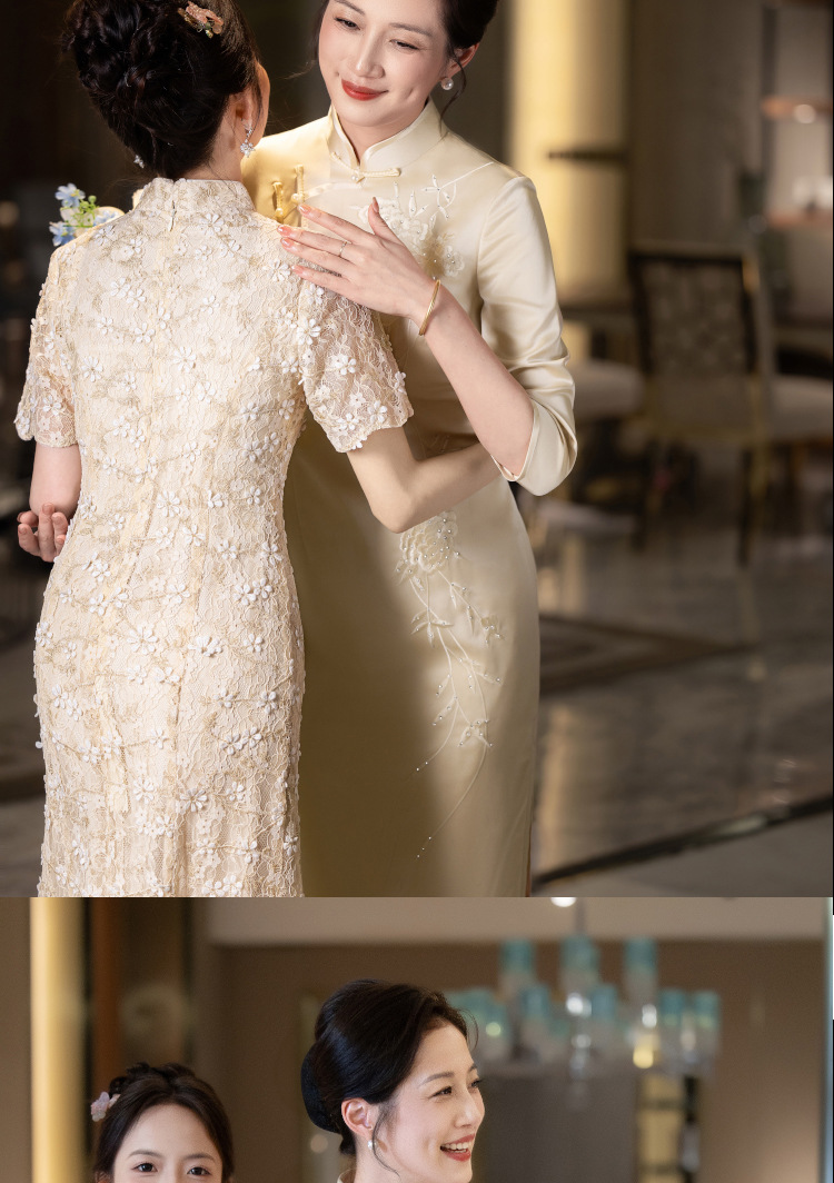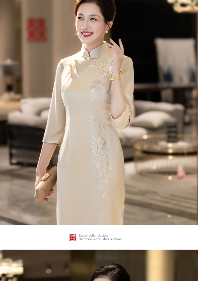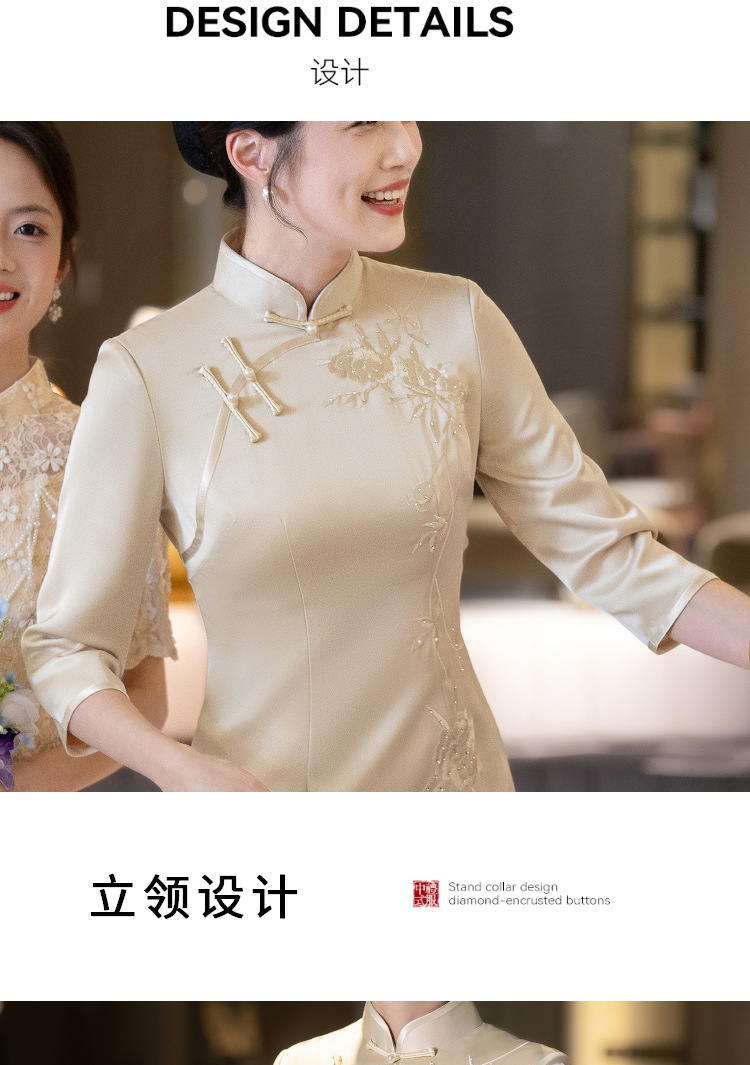 LHS C54香槟色旗袍喜婆婆婚宴装礼服裙