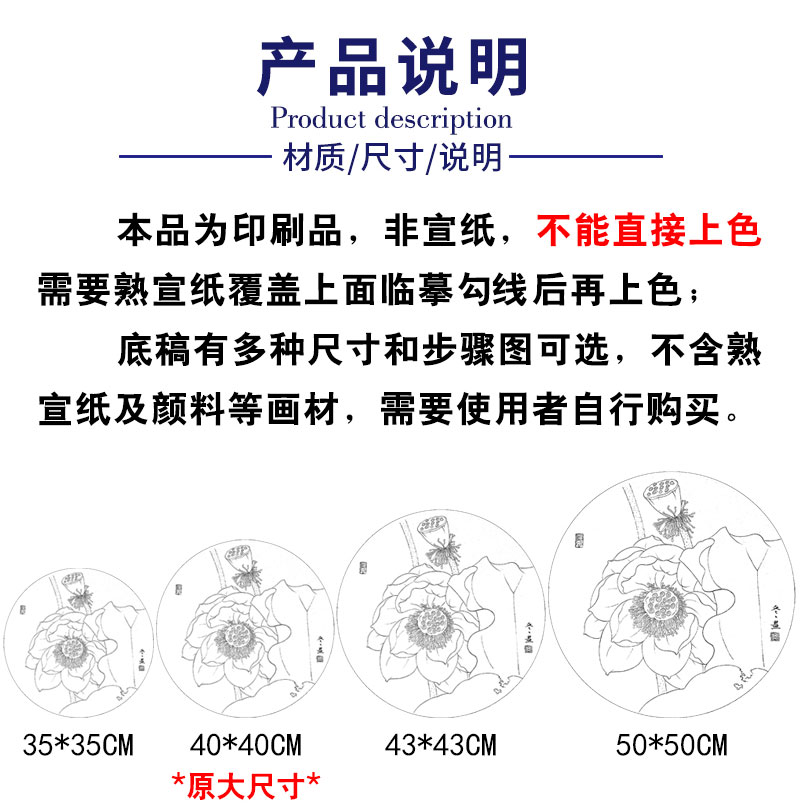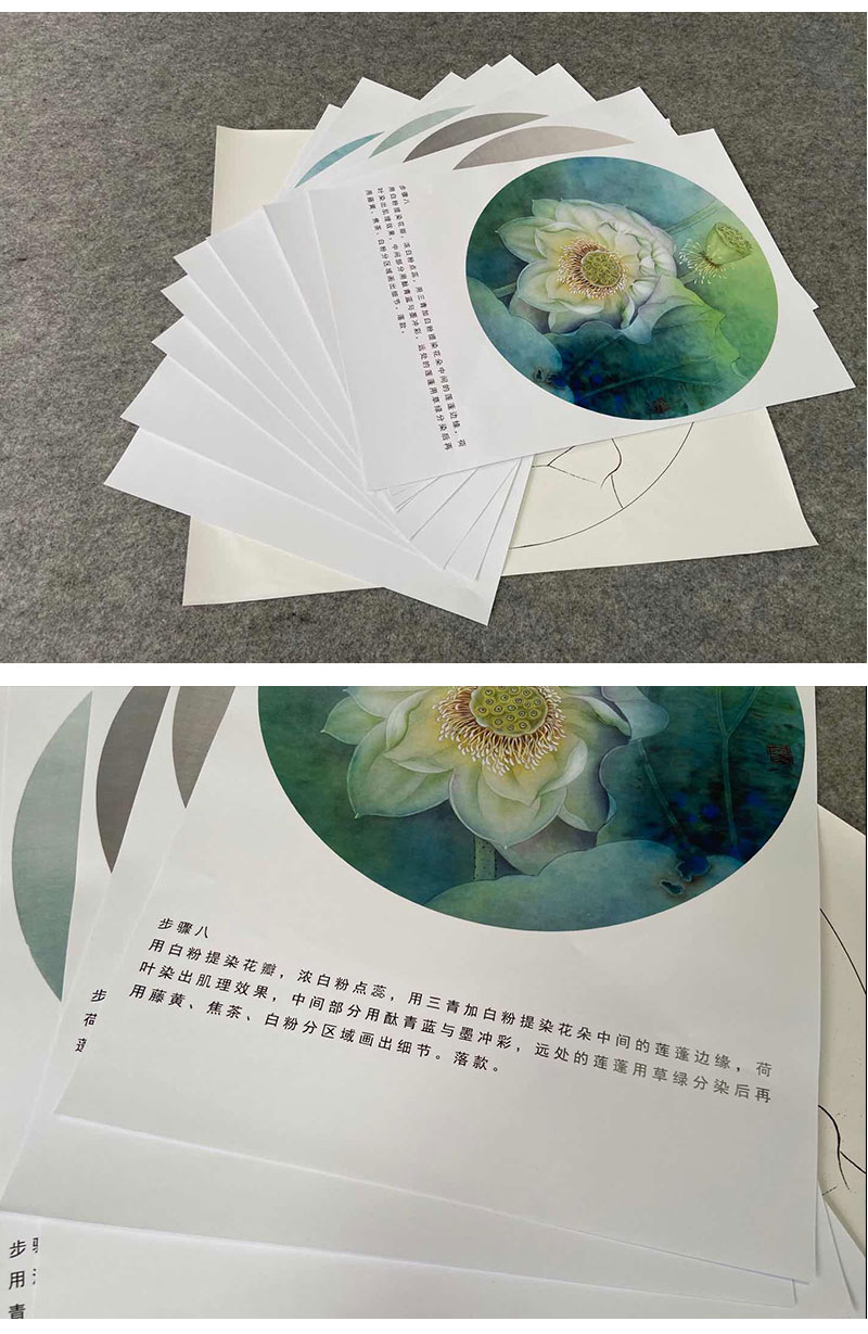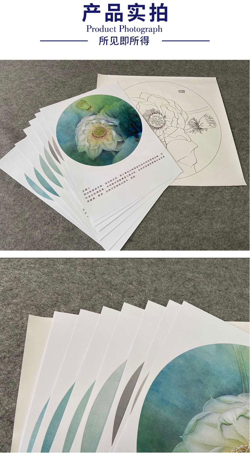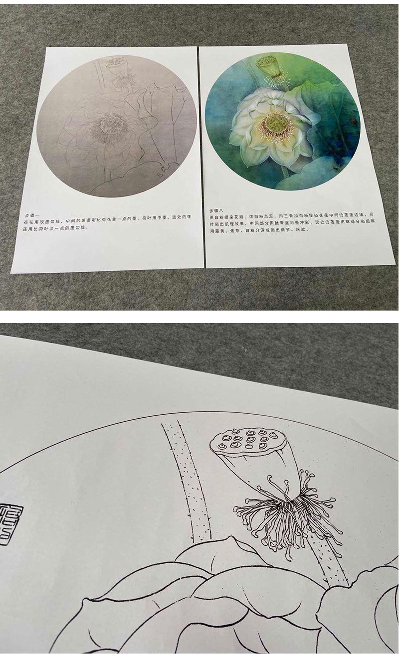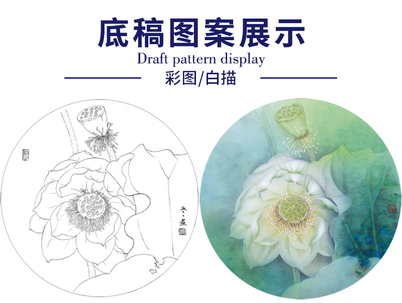 【有步骤、大彩图】杨冬冬工笔画白描底稿圆形小品《宛然》荷花初学者临摹花鸟线稿HD36