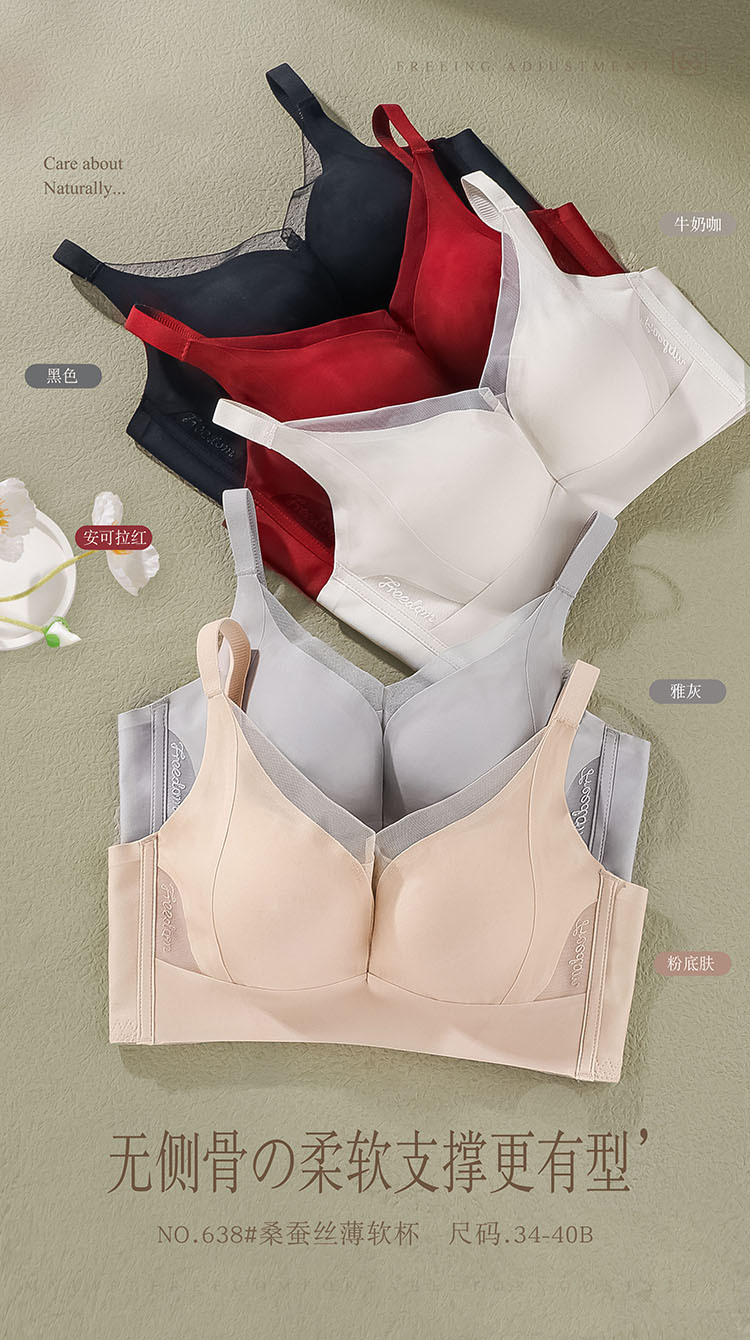 ZYQ-638 无痕内衣小胸薄款透气舒适莫代尔调整型聚拢显大防下垂无侧骨文胸(单件)