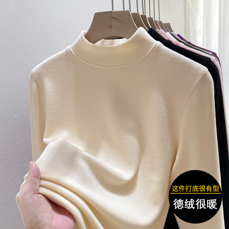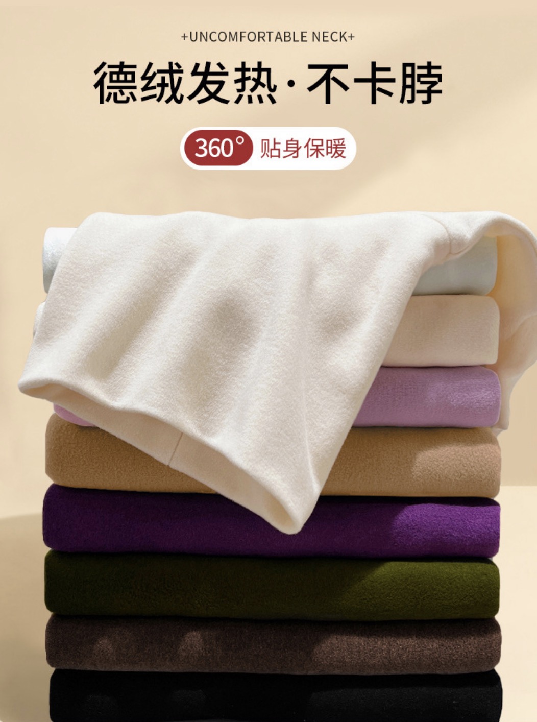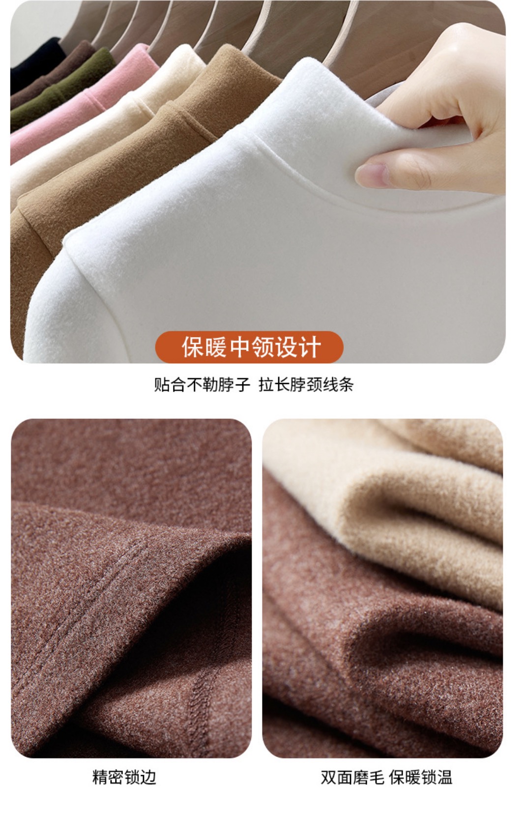 「自j」全新升级【铂金会员109/天猫149/差价40】(03527)洛诗琳中领加绒打底衫2025秋冬新款双面德绒正肩保暖上衣