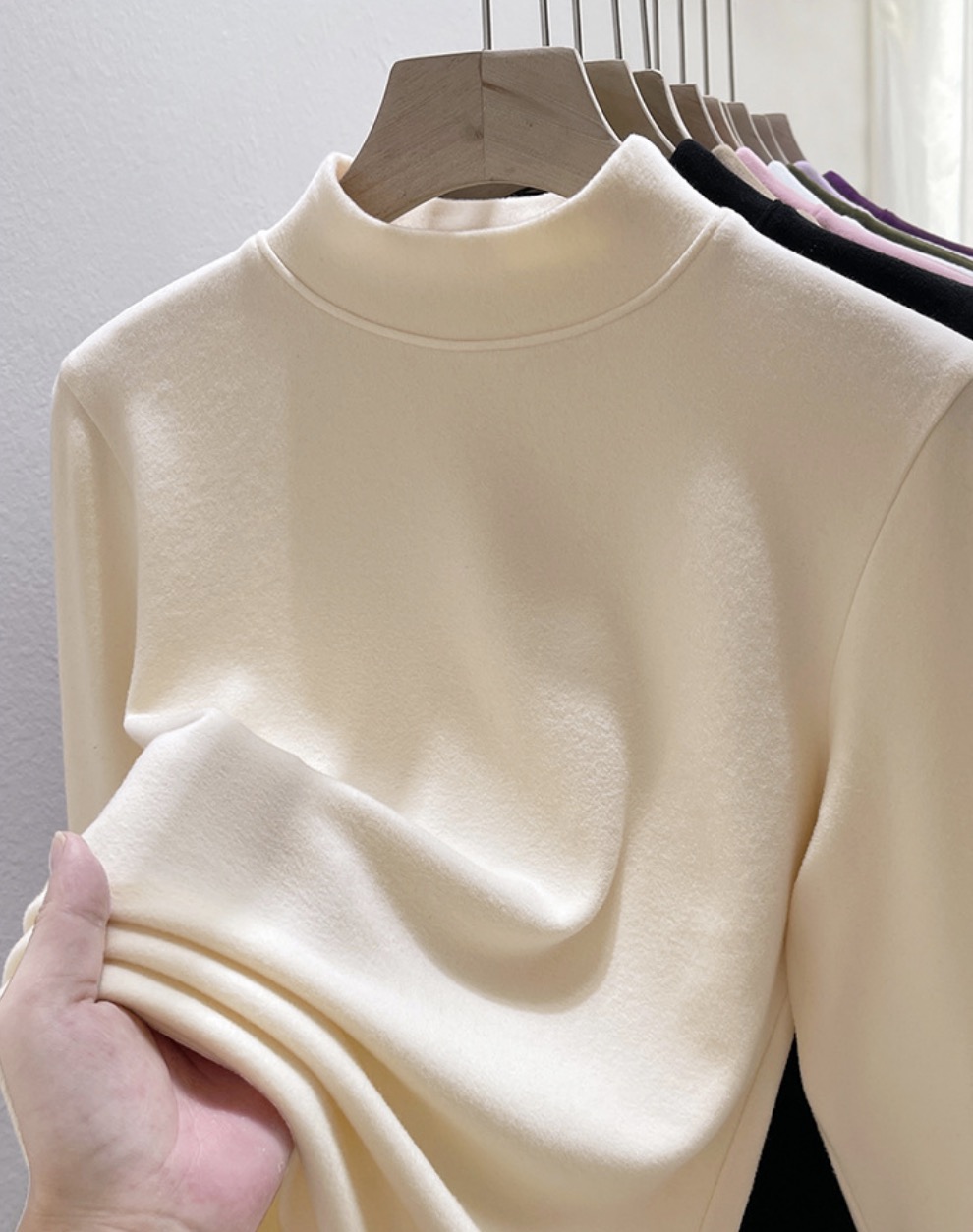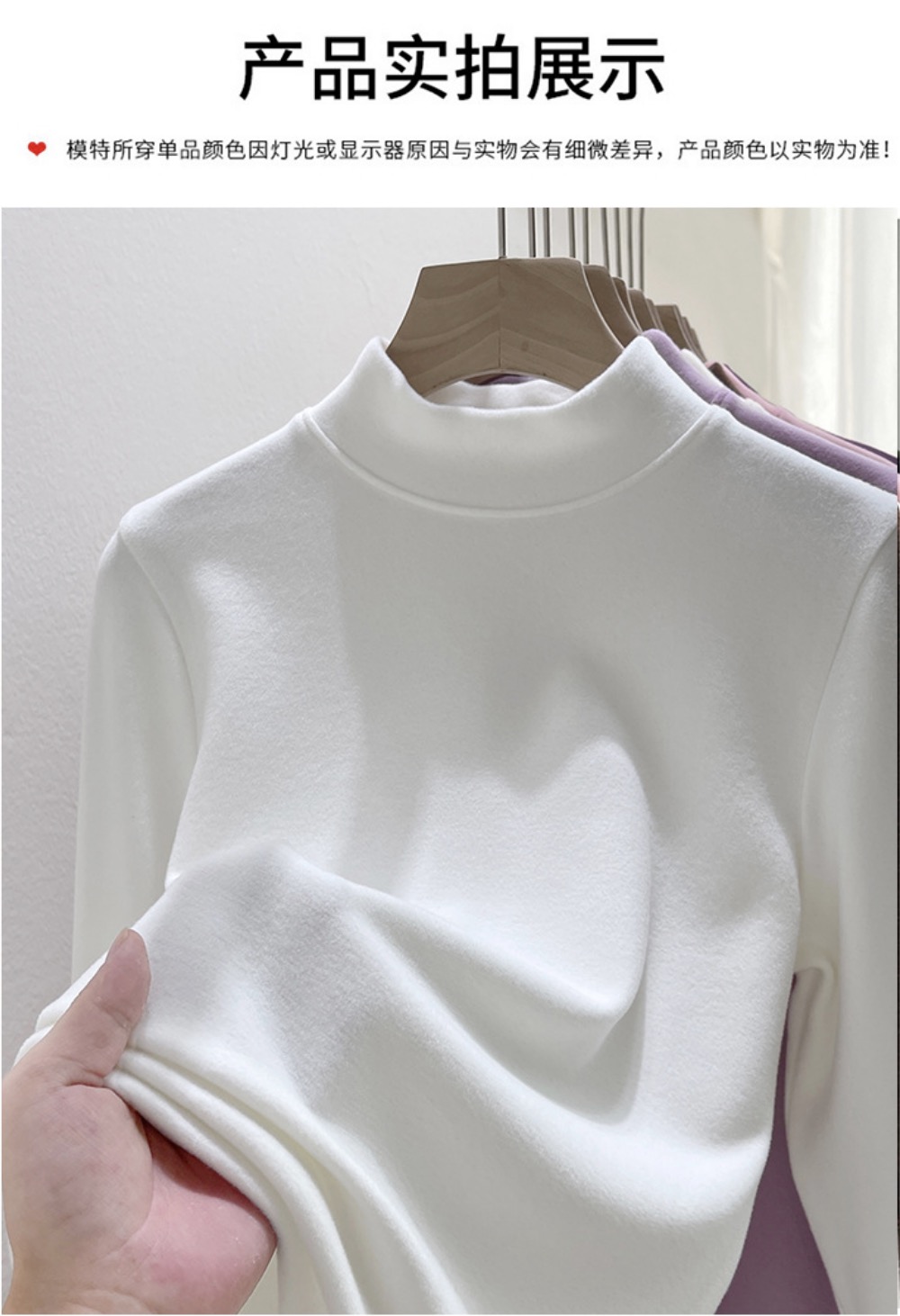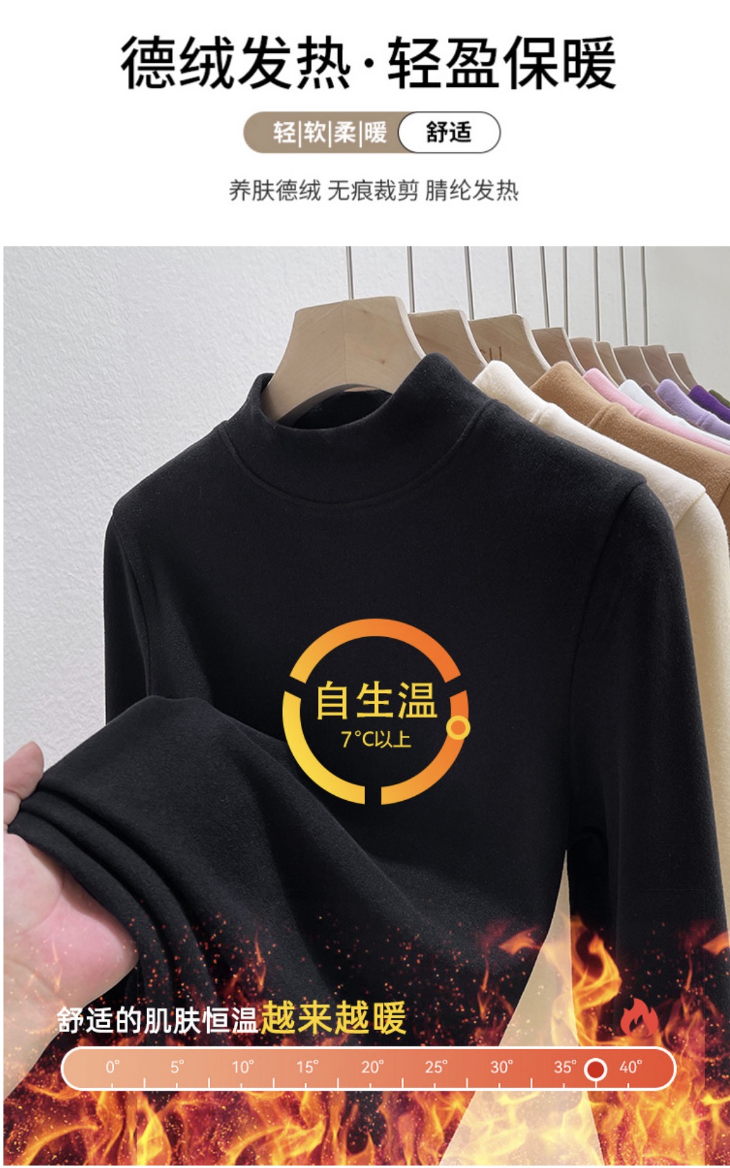 「自j」全新升级【铂金会员109/天猫149/差价40】(03527)洛诗琳中领加绒打底衫2025秋冬新款双面德绒正肩保暖上衣