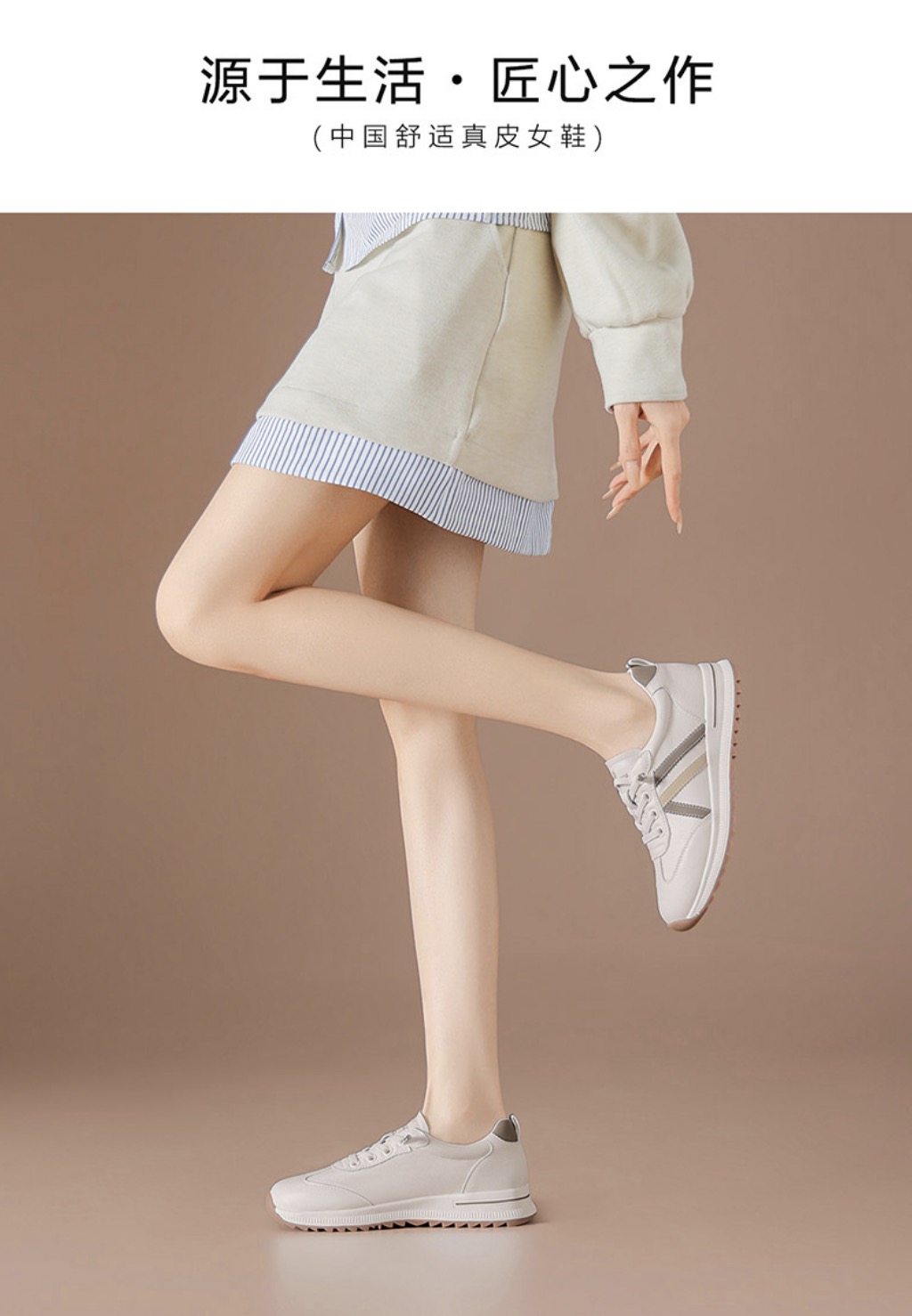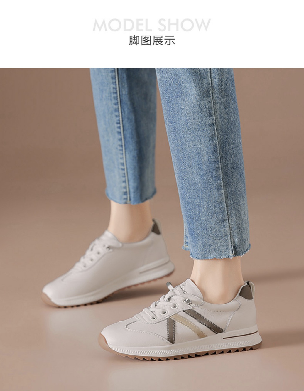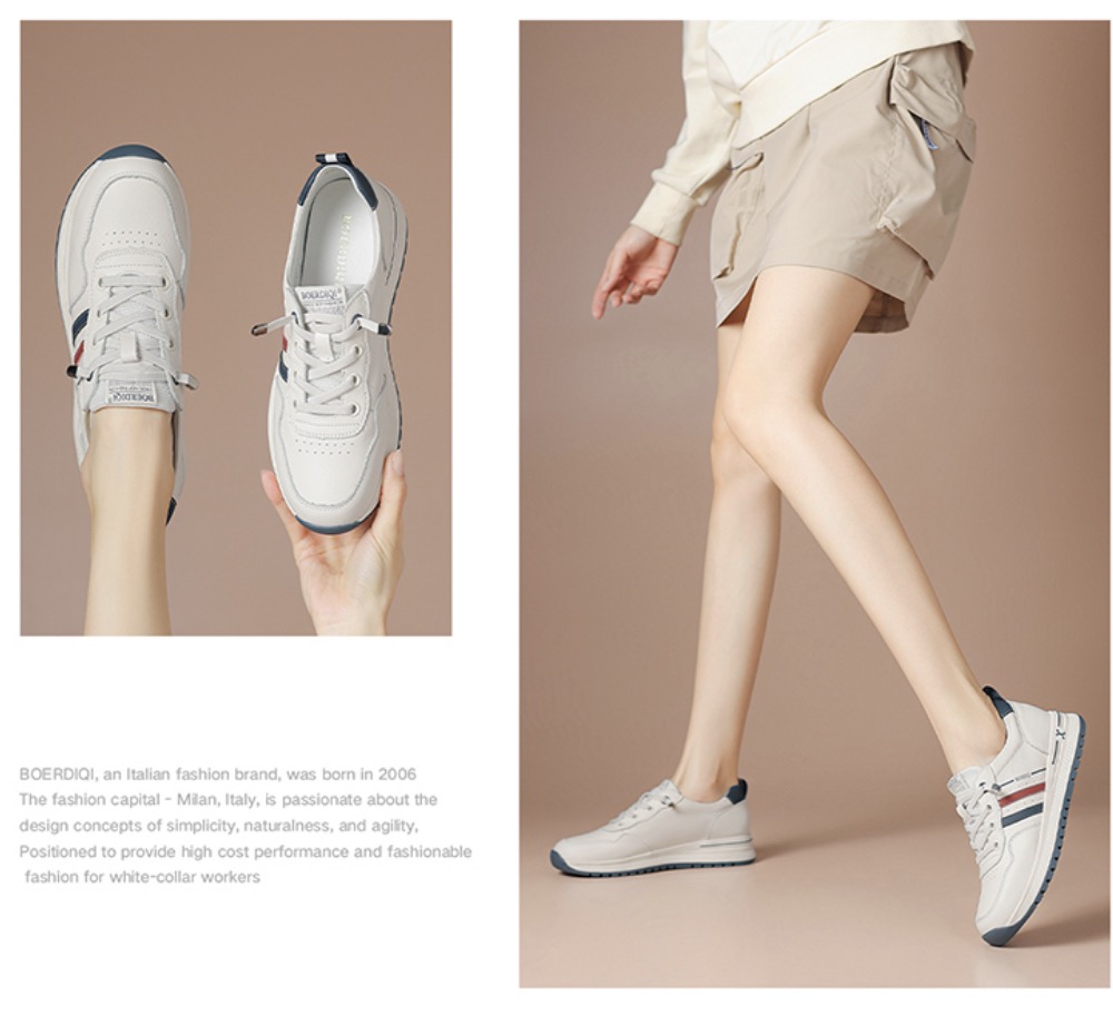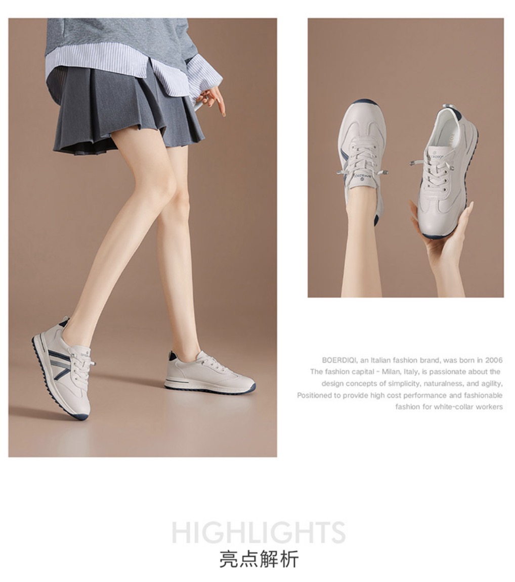 (头层牛皮)免系带厚底德训鞋女洛诗琳2026春季新款超轻运动休闲鞋(7天左右发货)BCD176001