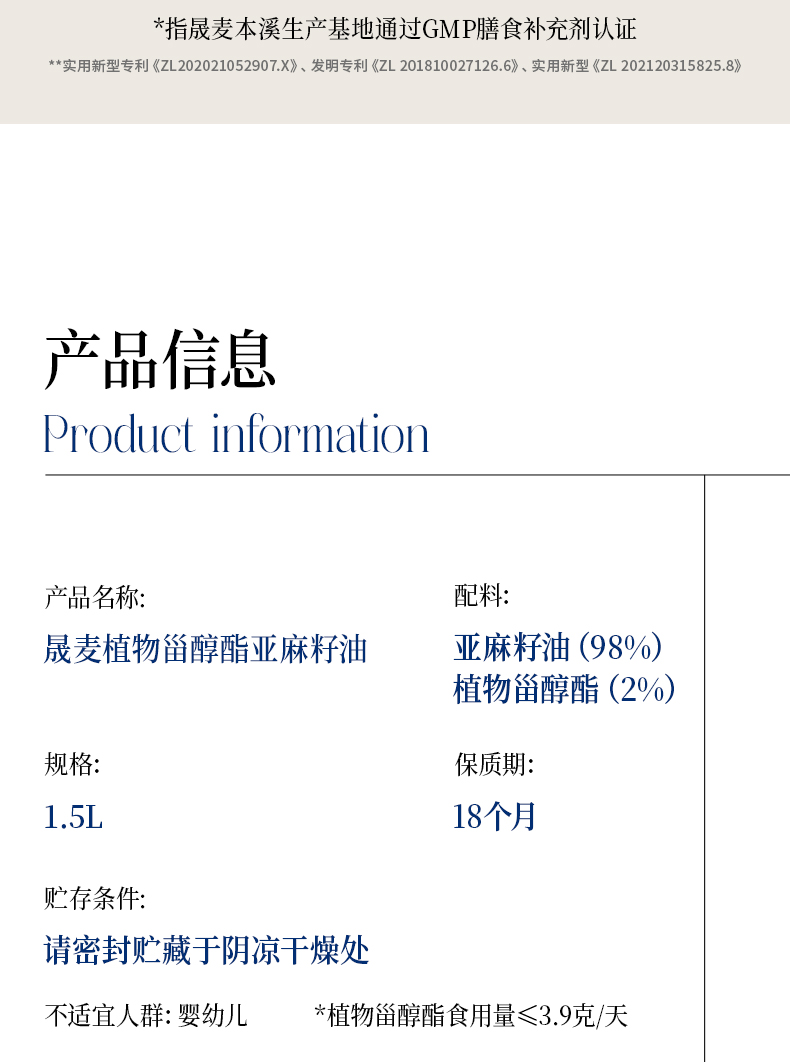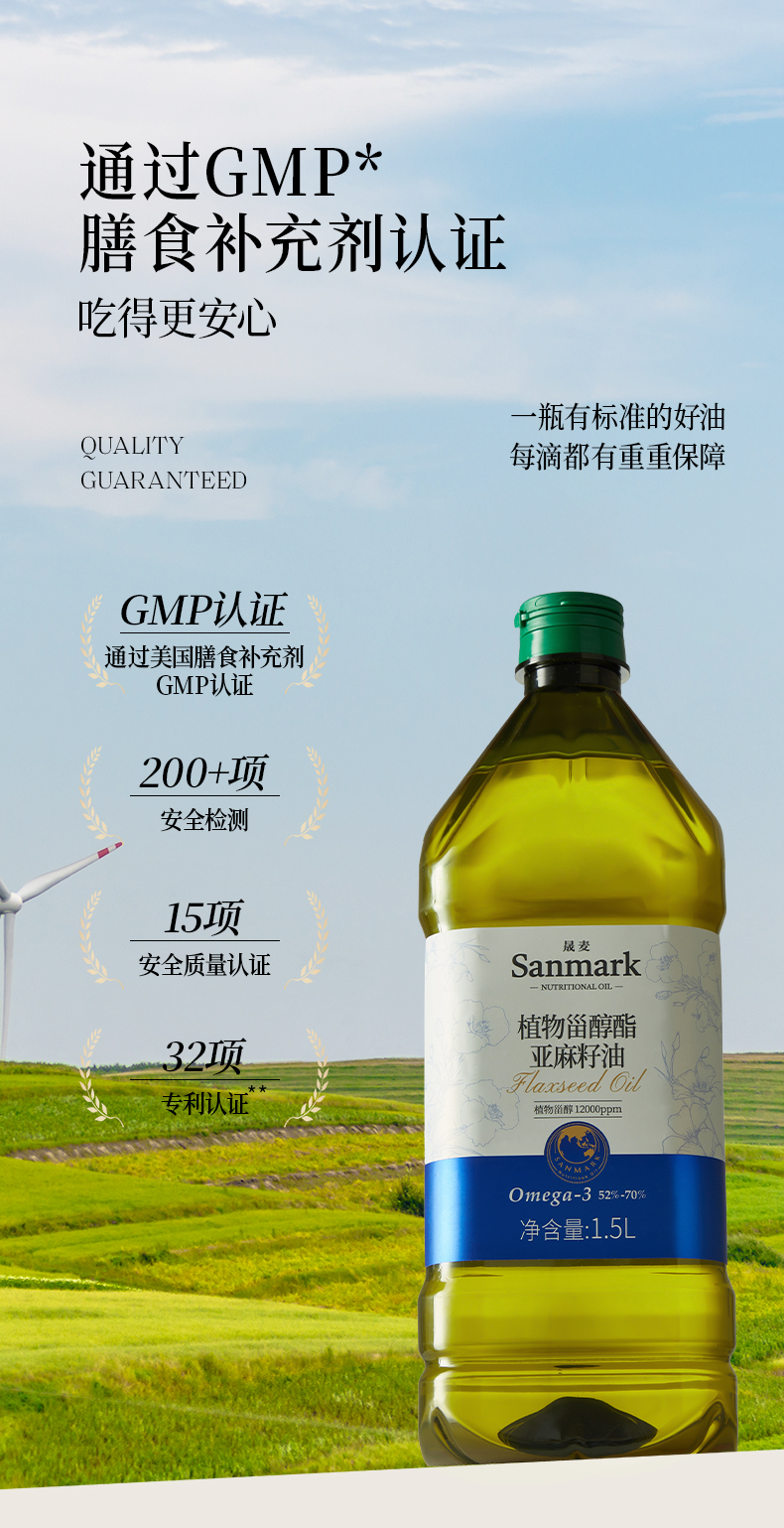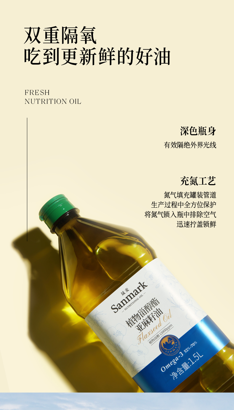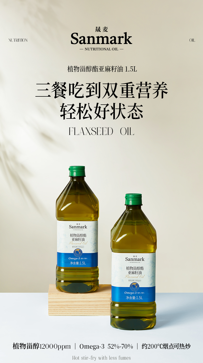 晟麦可热炒植物甾醇酯亚麻籽籽油1.5L热炒植物甾醇亚麻籽油