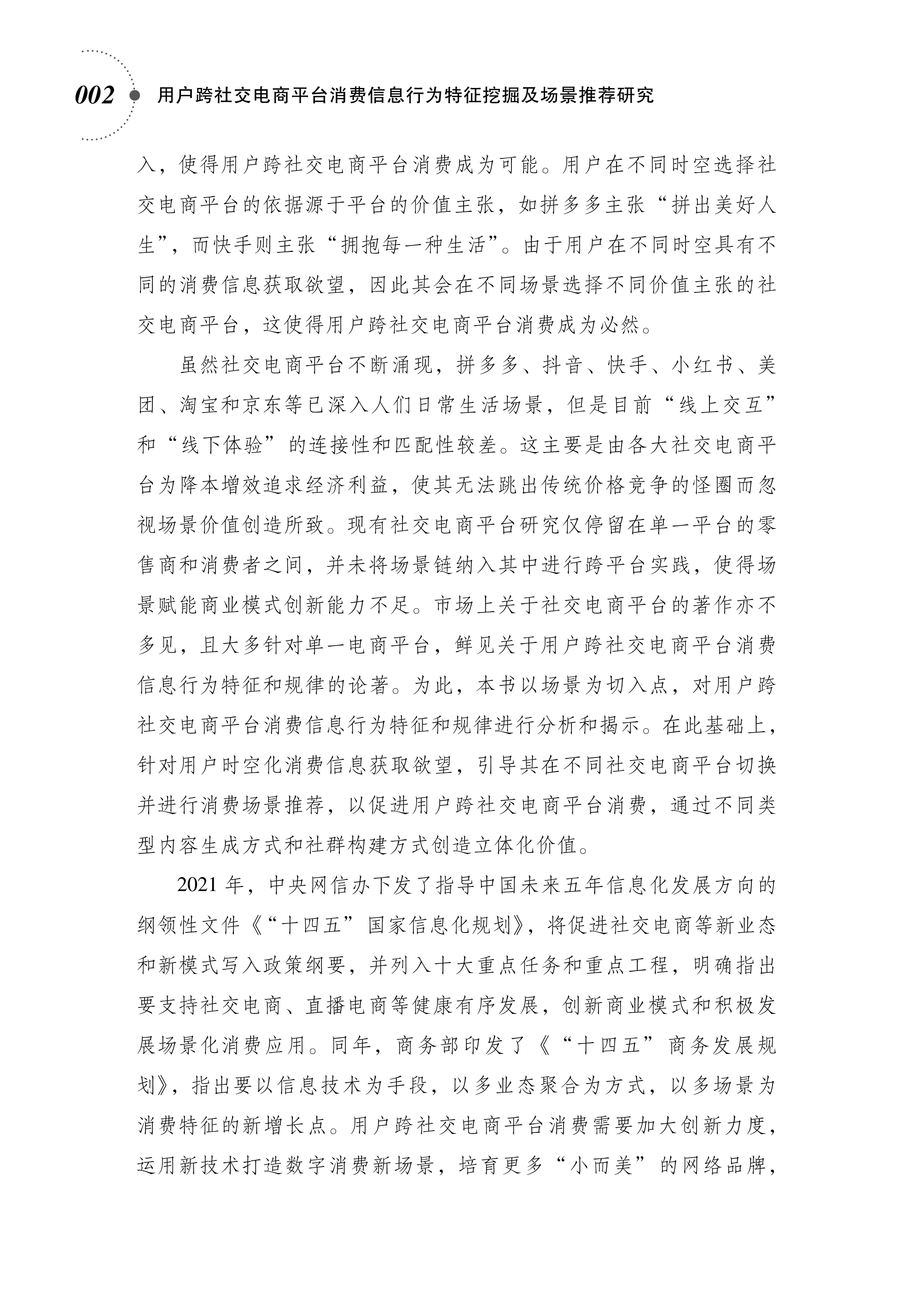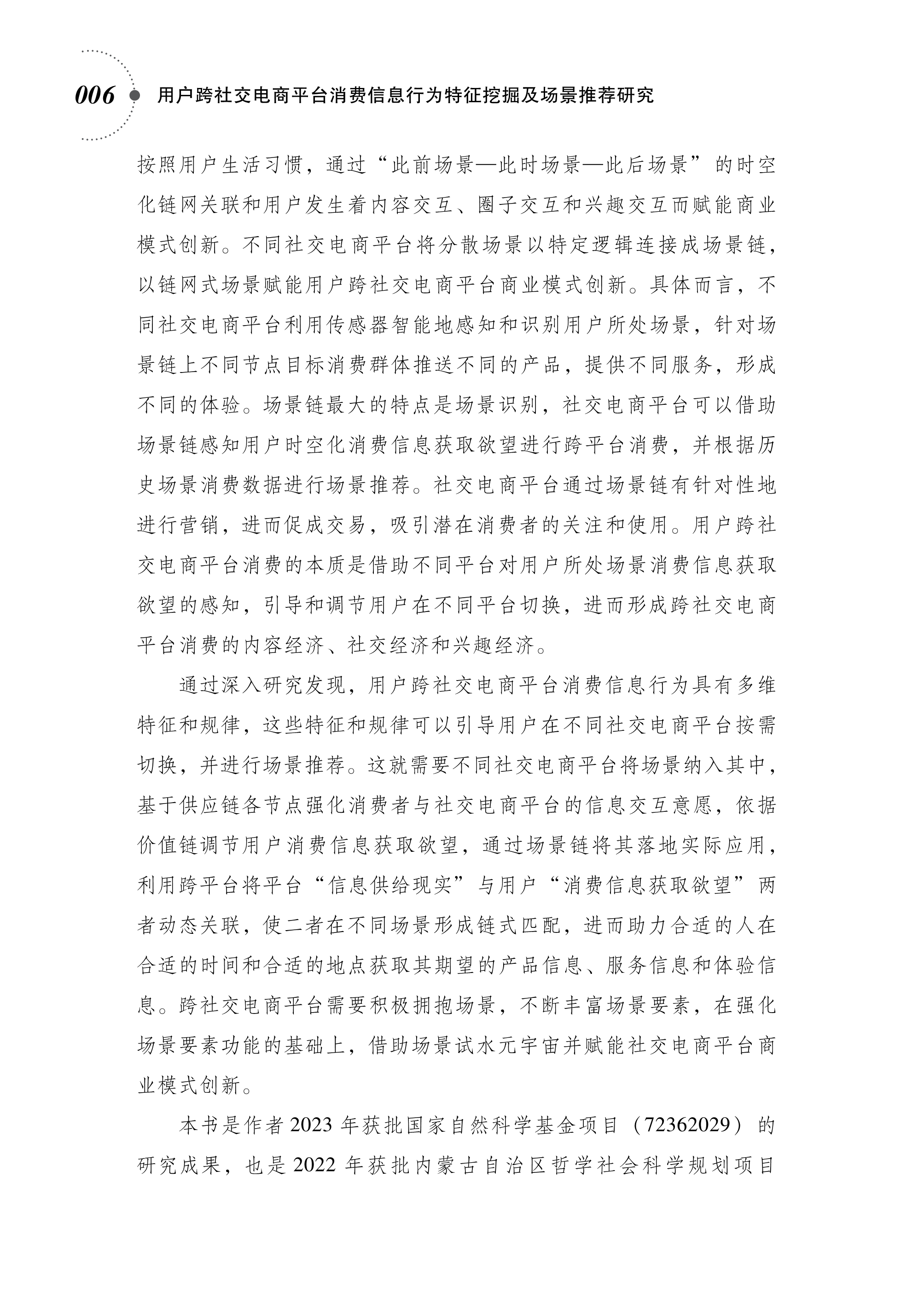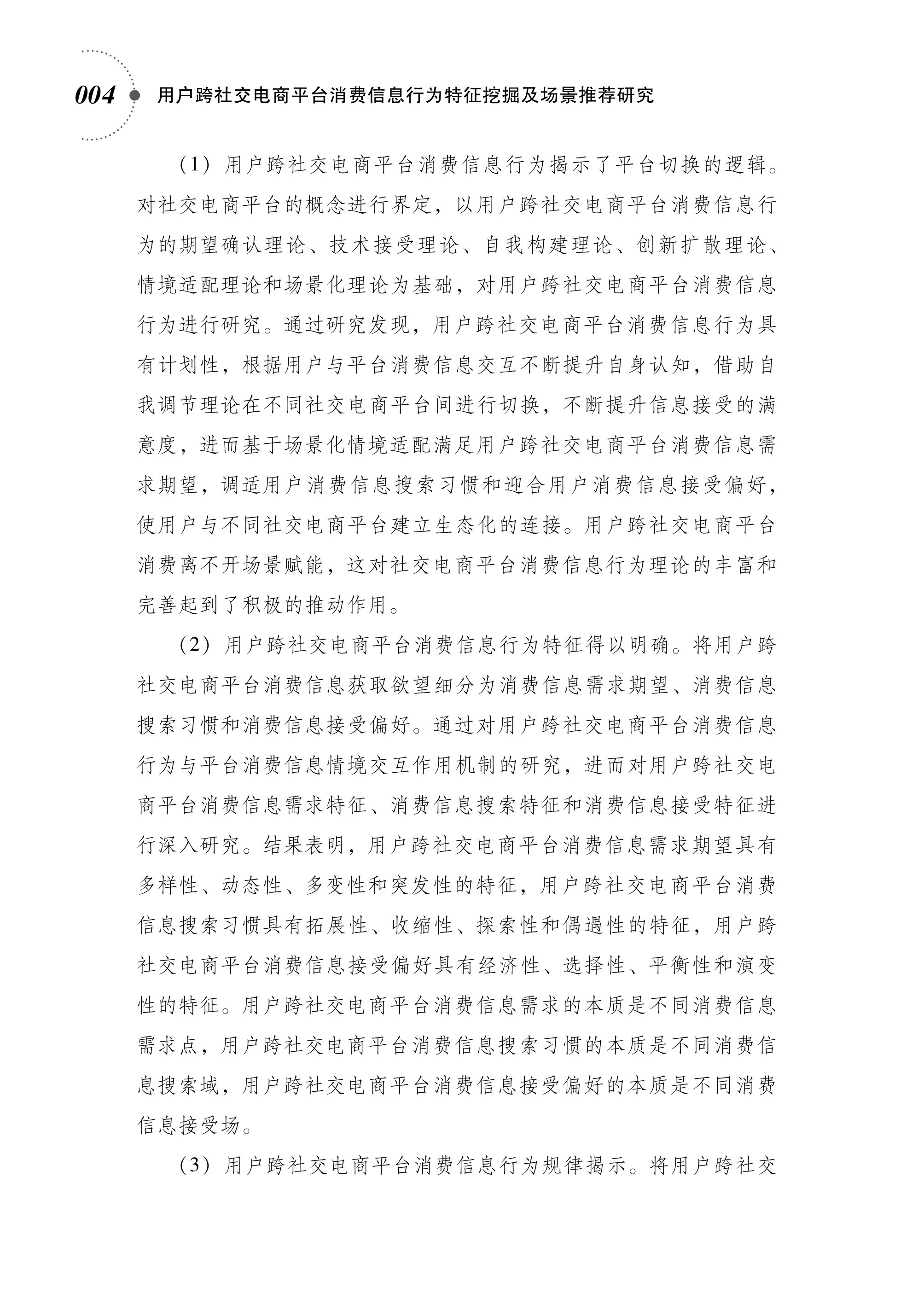 用户跨社交电商平台消费信息行为特征挖掘及场景推荐研究