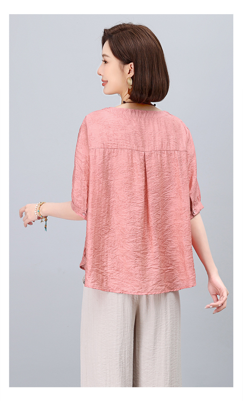 雀说短袖t恤女新款大码宽松小衫百搭气质减龄上衣服AL5515