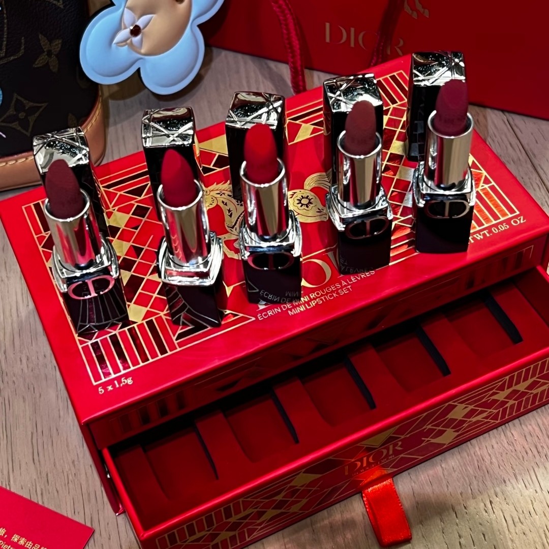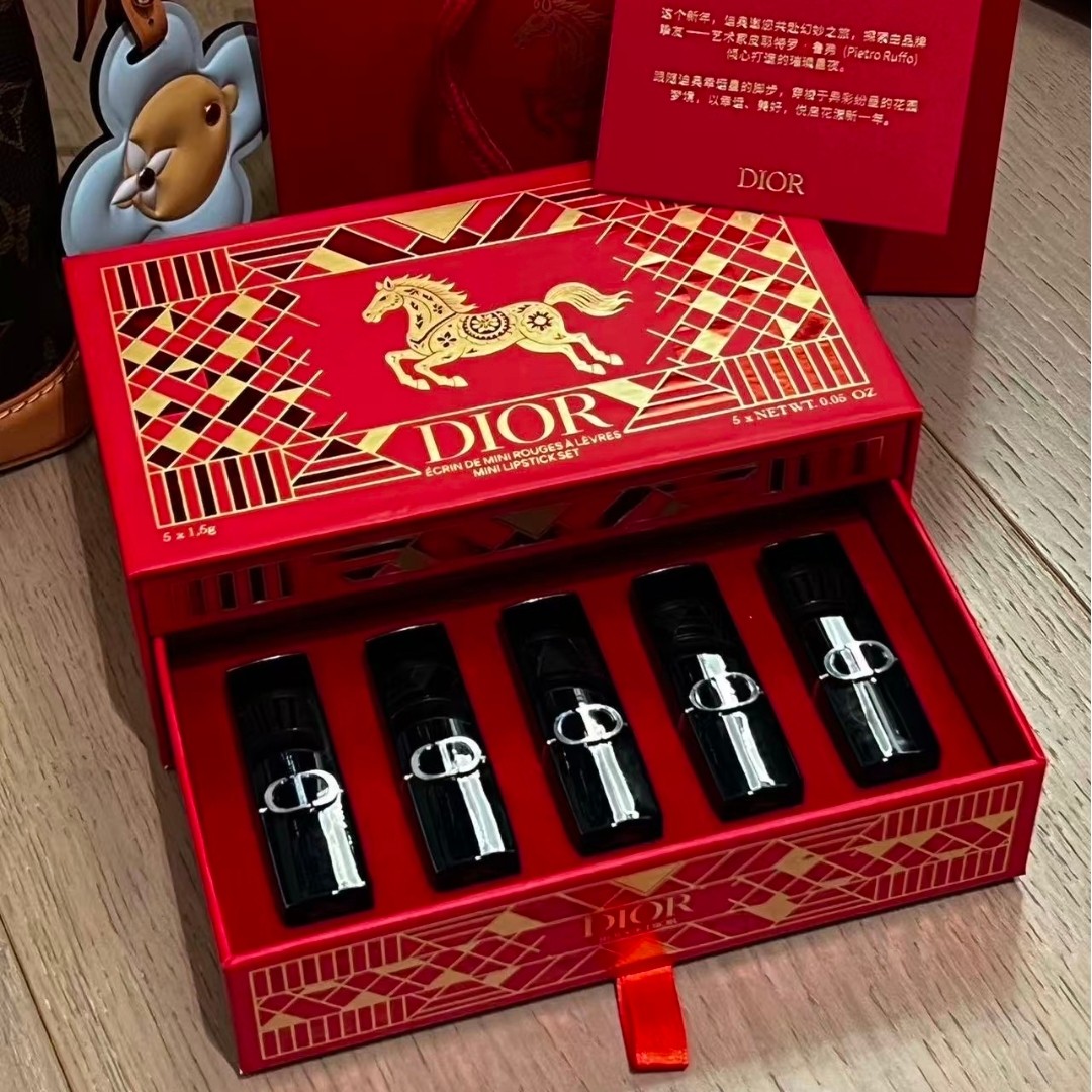 【马年限定】法国迪奥红色礼盒迷你口红五件套