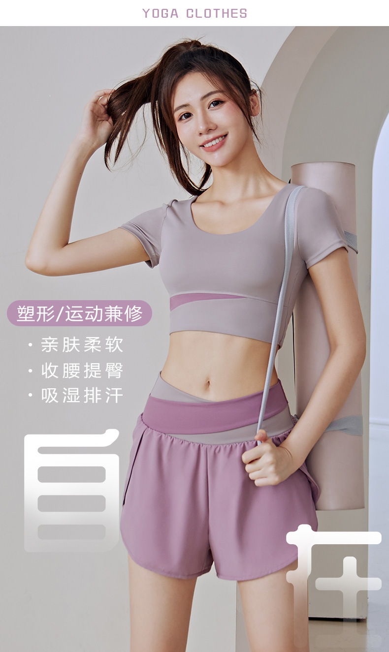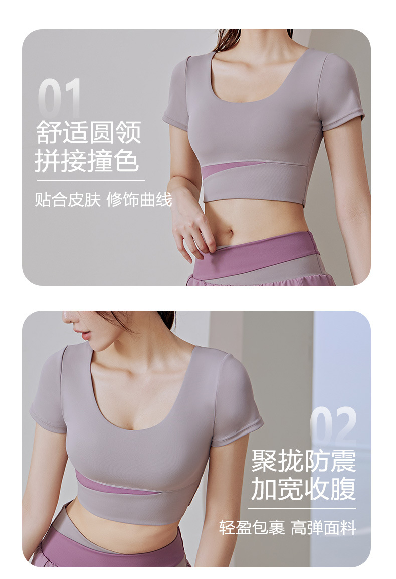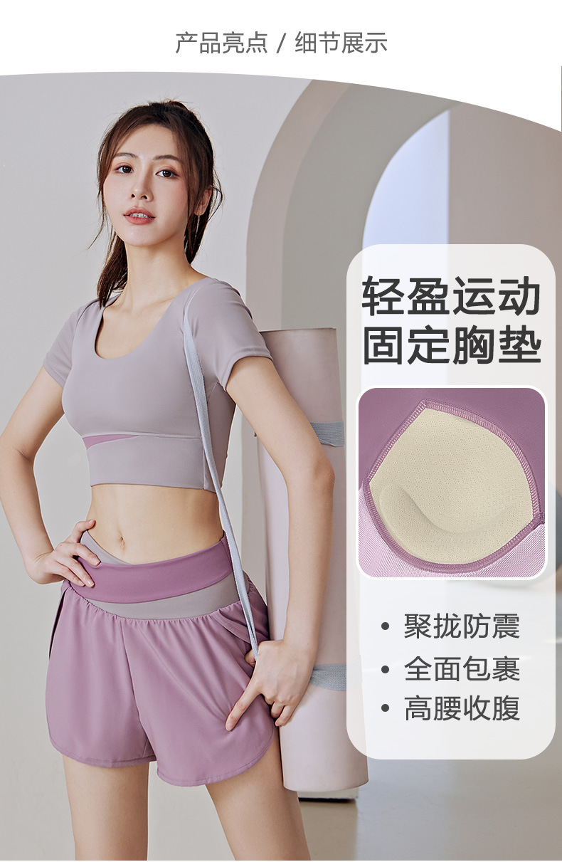 运动防走光免穿文胸,夏蜜桃拼色速干套装YH-JYMD013
