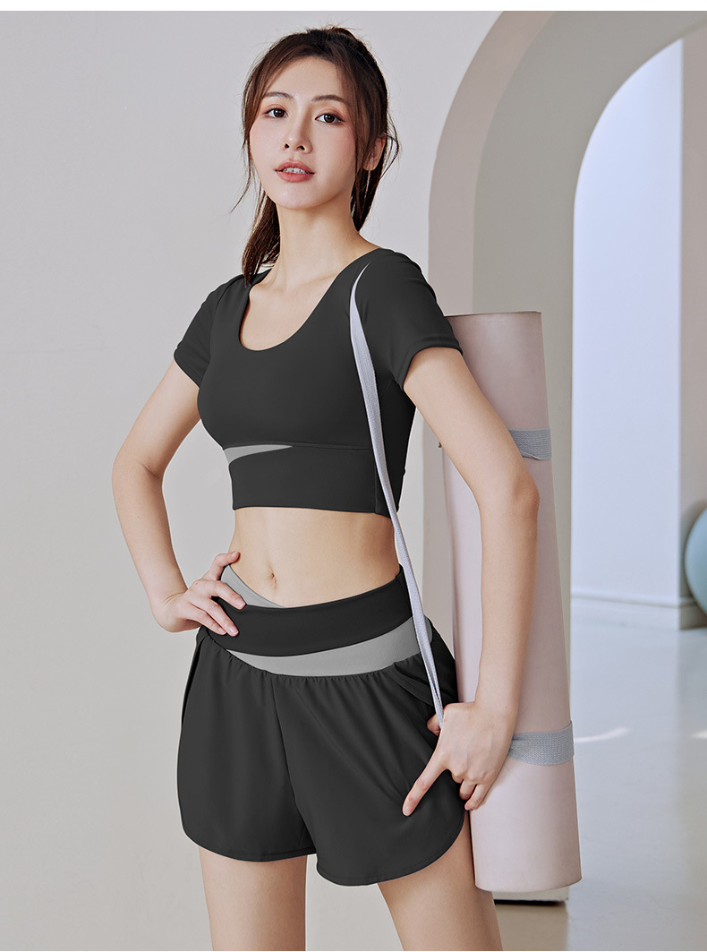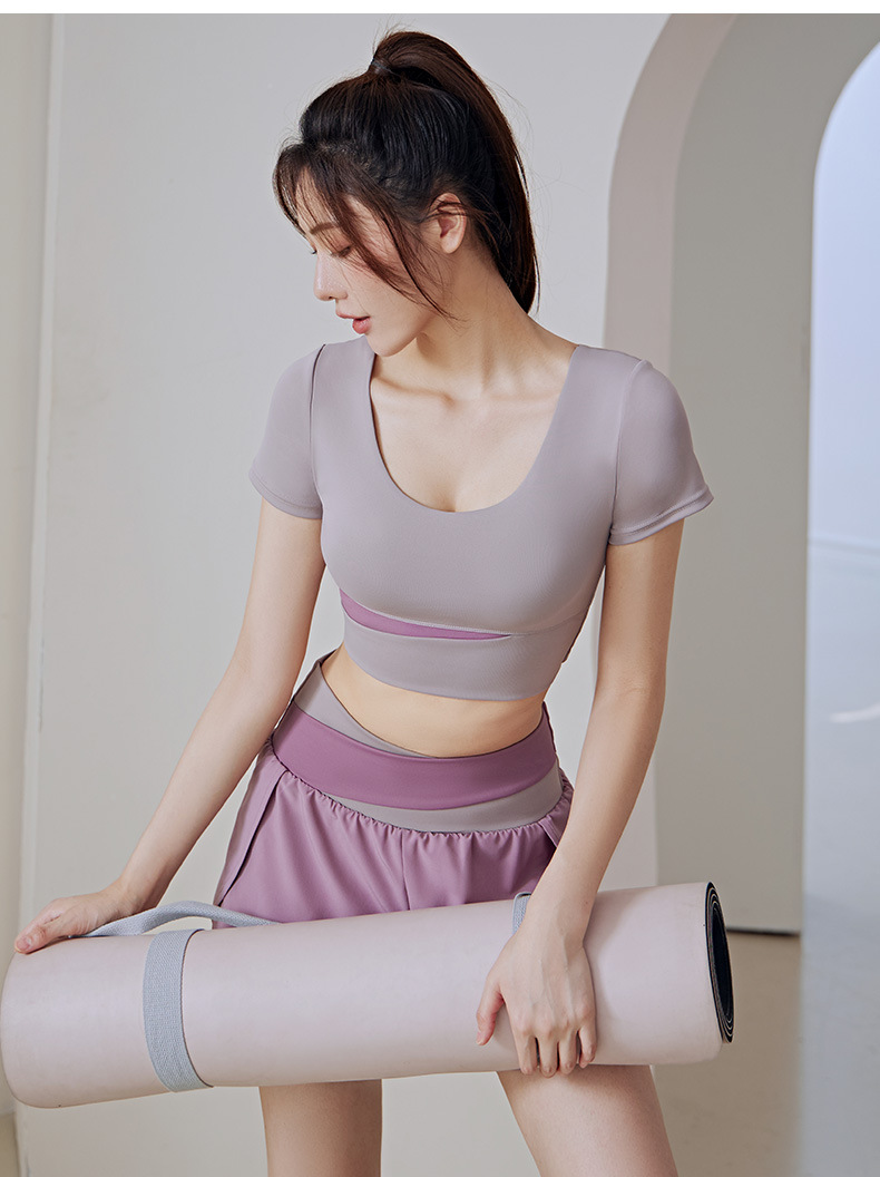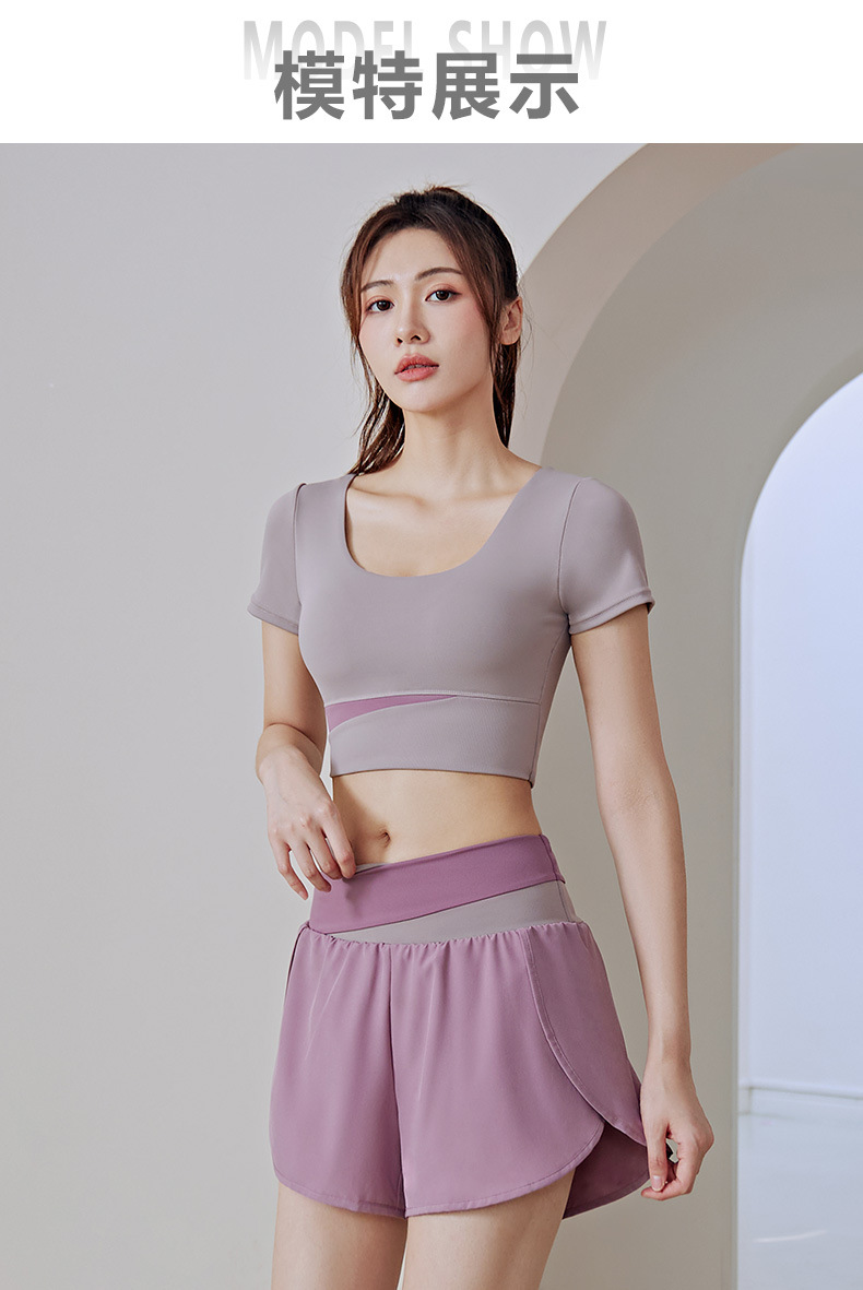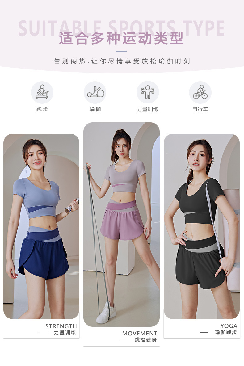 运动防走光免穿文胸,夏蜜桃拼色速干套装YH-JYMD013