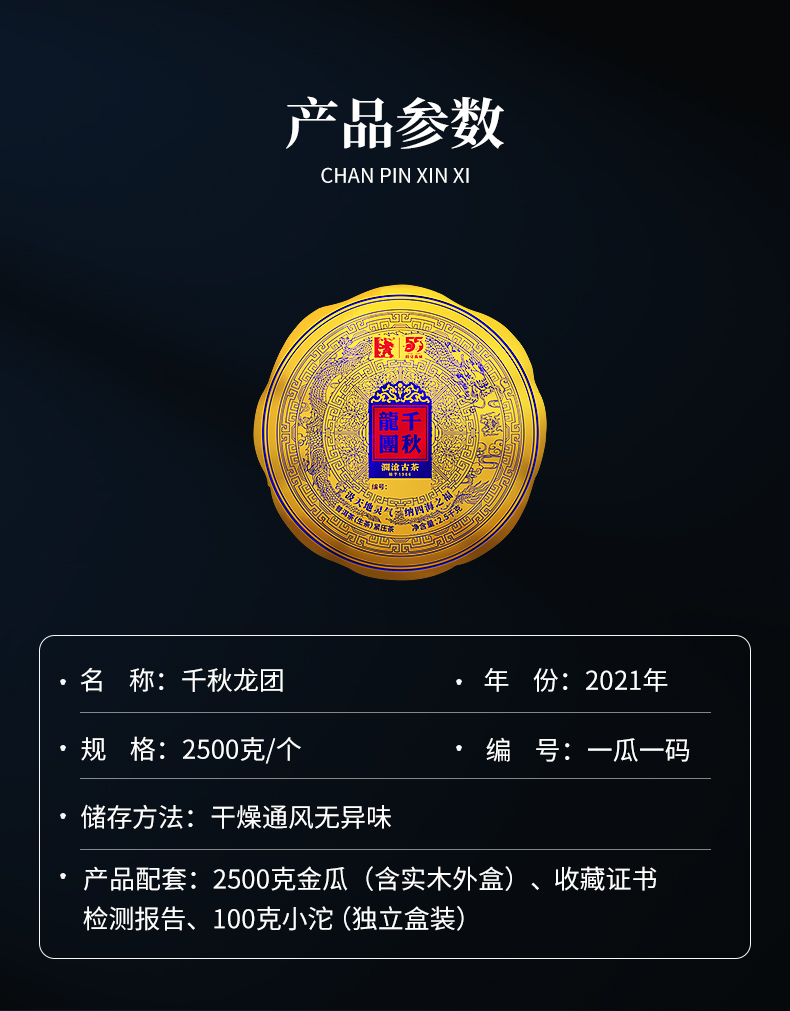 澜沧古茶2021年千秋龙团景迈古树春茶普洱生茶2500g金瓜